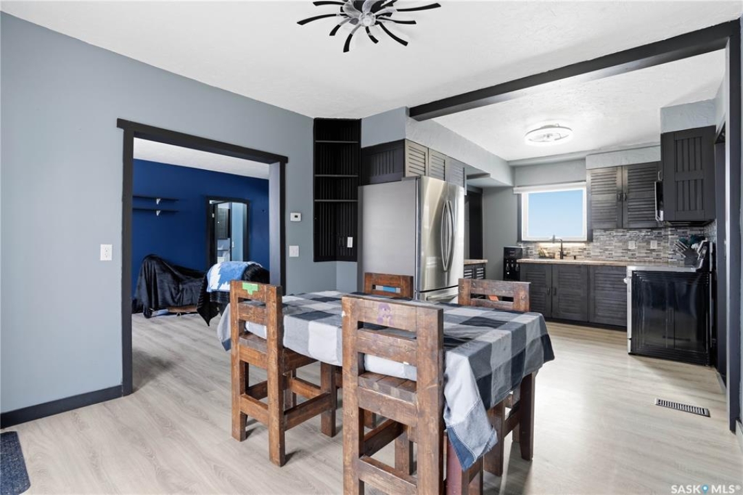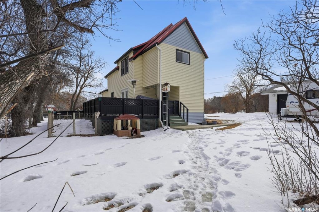 PANGMAN… heard of it yet? You have now. This welcoming small-town community offers the essentials including a grocery store, daycare, swimming pool, farmers market, and K-12 school, while being just 90 km south of Regina and 57 km west of Weyburn. This charming 106-year-old two-storey home sits proudly on three 50' x 150' lots, giving you plenty of space for a large garden, outdoor living, and even RV or trailer parking. Inside, the main floor features a spacious living room, bedroom, and a 3-piece bathroom with laundry. The rear mudroom provides convenient access to the kitchen and dining area. Upstairs you'll find three bedrooms and a 4-piece bathroom, with the primary bedroom offering two large closets—a rare bonus in homes of this era. The basement houses the utility area and additional storage. A major highlight is the insulated 28' x 44' detached garage with 220V plug, offering plenty of room for vehicles, hobbies, and toys. Enjoy summer evenings grilling on the expansive deck overlooking the spacious yard. Pangman offers potable water and public sewer, averaging about $300 quarterly. Recent updates include high-efficiency furnace, water softener, French doors, flooring throughout, updated plugs/switches, light fixtures, and an added garage window.