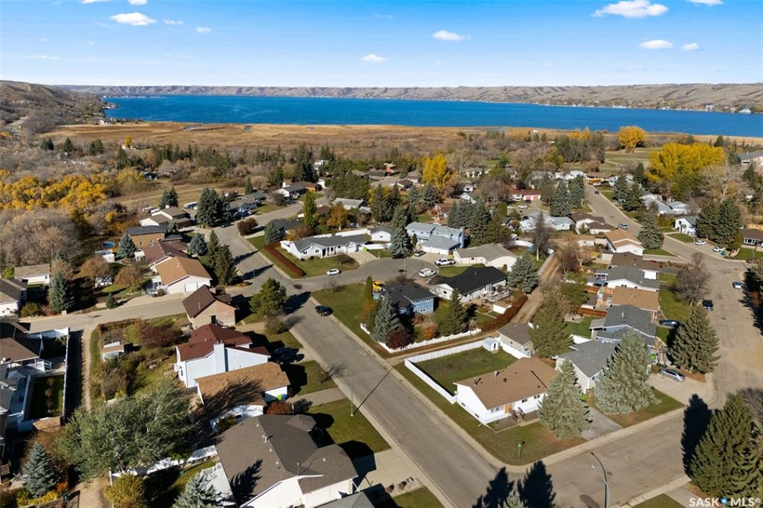Rare quiet bay location with beautiful valley hill views! Nestled on a huge fully fenced lot, this extensively updated bungalow offers over 1,700 sq. ft. on the main level plus a fully developed basement, delivering exceptional space, comfort, and modern style in one of the valley's most desirable settings. The bright open-concept main floor features a stunning renovated kitchen with custom white cabinetry, dark quartz countertops, a large island, and new stainless-steel appliances. The inviting living room is centered around a cozy gas fireplace and flows seamlessly to a large composite deck with hot tub, the perfect place to relax or entertain while taking in the peaceful valley surroundings. A spacious family room provides even more room to gather and unwind. The main floor offers a large primary bedroom with walk-in closet, two additional bedrooms, and both a four-piece and three-piece bathroom. Downstairs, the fully finished basement expands your living space with two more bedrooms, a large family room, office area, bathroom, laundry, and abundant storage, making it ideal for families, guests, or work-from-home flexibility. A roomy mudroom connects to the heated double attached garage with oversized bays (13x28 and 13x24), while an additional double detached garage provides exceptional space for vehicles, toys, a workshop, or extra storage. Outside, enjoy the beautifully landscaped yard featuring PVC fencing, underground sprinklers, and plenty of room to play or entertain. Recent updates include windows, doors, quartz countertops, flooring, paint, lighting, appliances, water heater, water softener, fencing, and composite decking, making this home truly move-in ready. Homes with this much space, parking, and a premium quiet bay location with valley views rarely come available. Book your private showing today!