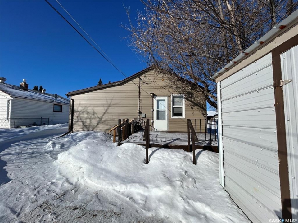 Why rent when you can own? This updated 2 bedroom home offers a great location, close to the elementary and high school, as well as shopping. New vinyl siding in 2025 gives this home a fresh update! A spacious front porch opens to the kitchen/ dining area with ample cabinetry and storage. The living room offers access to the back deck. The main floor offers two spacious bedrooms and a full bathroom. Updates include flooring throughout, updated bathroom, fresh paint and more. The basement is dry and houses the laundry area and utility room. Furnace ducts were just cleaned in 2026. This home has been modernized and is ready to move in and enjoy. The yard offers plenty of green space, garden area, deck, large storage shed and is partially fenced. This one won't last long!