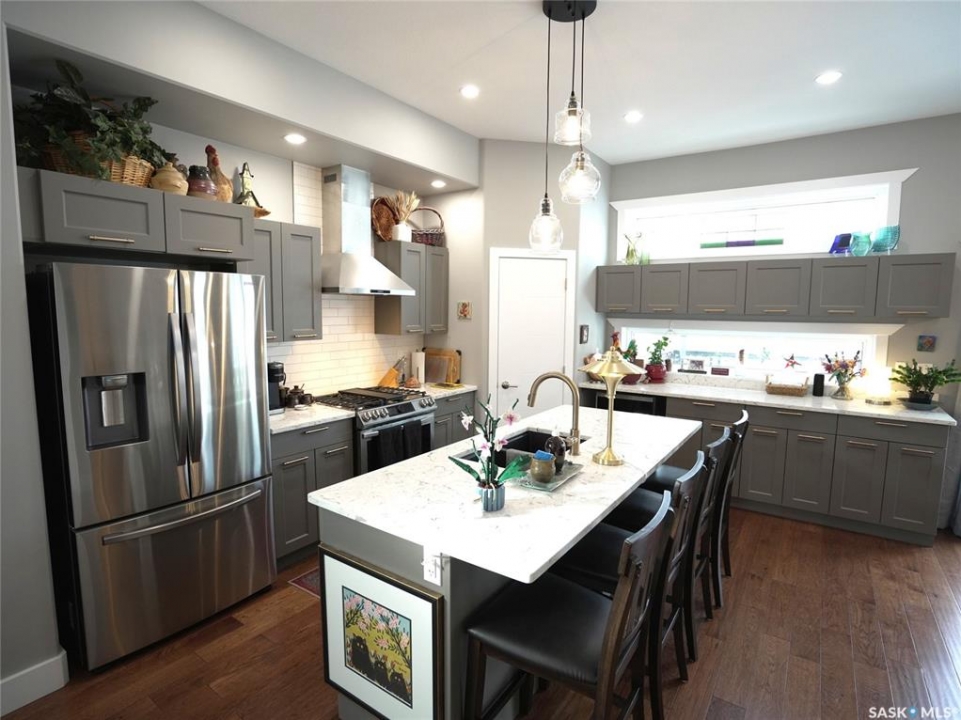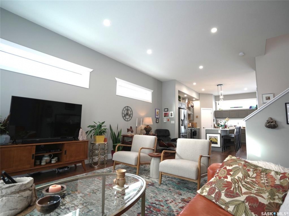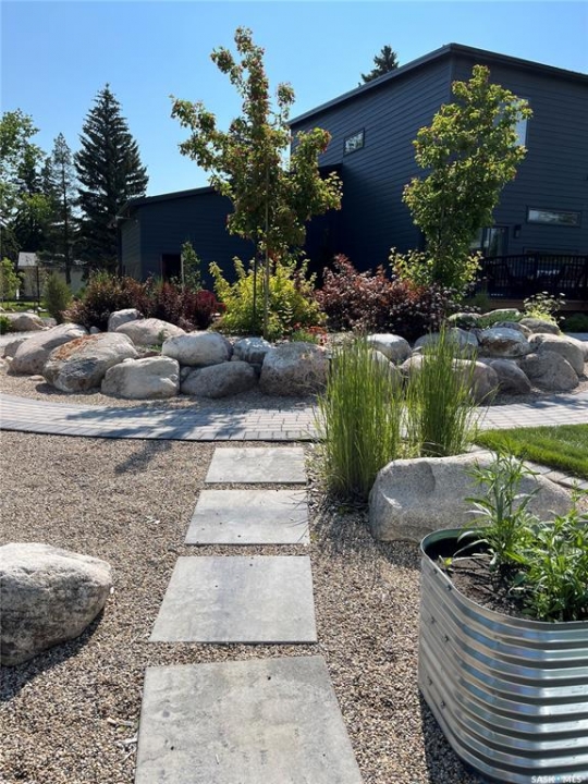 Modern Living on Three Landscaped Lots in Aberdeen, Saskatchewan – Just 20 Minutes from Saskatoon. Discover 112 Norman Avenue, a 2021 two-story home offering modern design, quality finishes, and exceptional outdoor space. Set on three professionally landscaped lots by Emerald Landscaping, this property provides a xeriscaped front yard and beautiful backyard while staying just 20 minutes from Saskatoon. The main level boasts 10-foot ceilings and privacy windows that fill the home with natural light. Engineered hardwood flows throughout the living areas, with tile at the entry and main floor bathroom. The kitchen features sleek appliances and an open layout connecting to dining and living spaces, ideal for everyday living and entertaining. A main floor bathroom adds convenience for guests. Upstairs are two bedrooms, including a primary suite with a walk-in closet and a luxurious five-piece ensuite with a soaker tub. Second-floor laundry and tile in the bathroom provide practicality, while the rest of the upper level is carpeted for comfort. The unfinished basement offers space to develop two additional bedrooms, extra living space, and has plumbing roughed in for a fourth bathroom, allowing future customization. Durable Hardie siding and a metal roof complement a heated, double attached garage, while the backyard features a gazebo and gas fire table, perfect for entertaining and included with the home. Located in a welcoming community with a K–12 school, library, convenience store, car wash, dance classes, karate club, and youth sports including hockey, baseball, and soccer, this home combines modern comfort, space to grow, and small-town charm in one exceptional package.