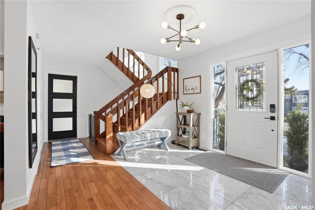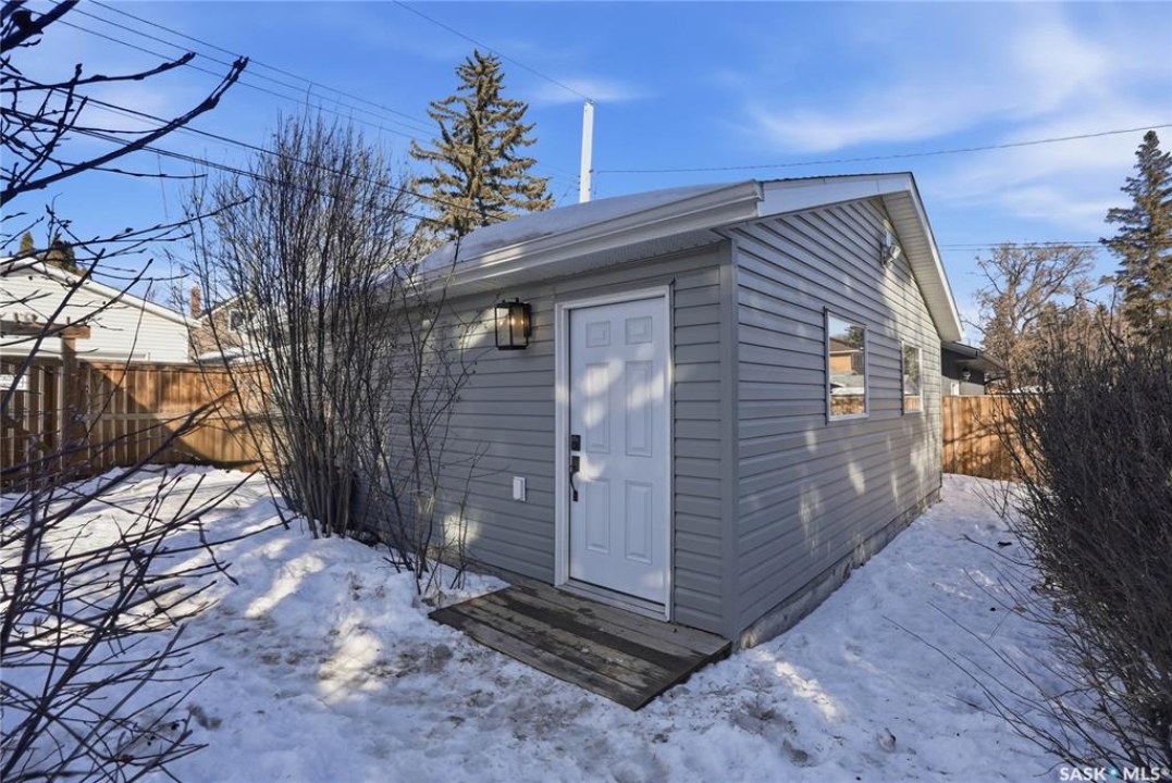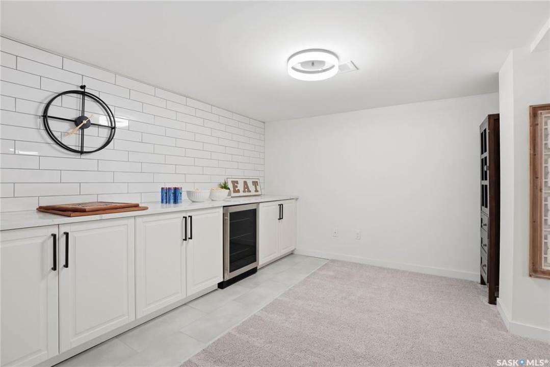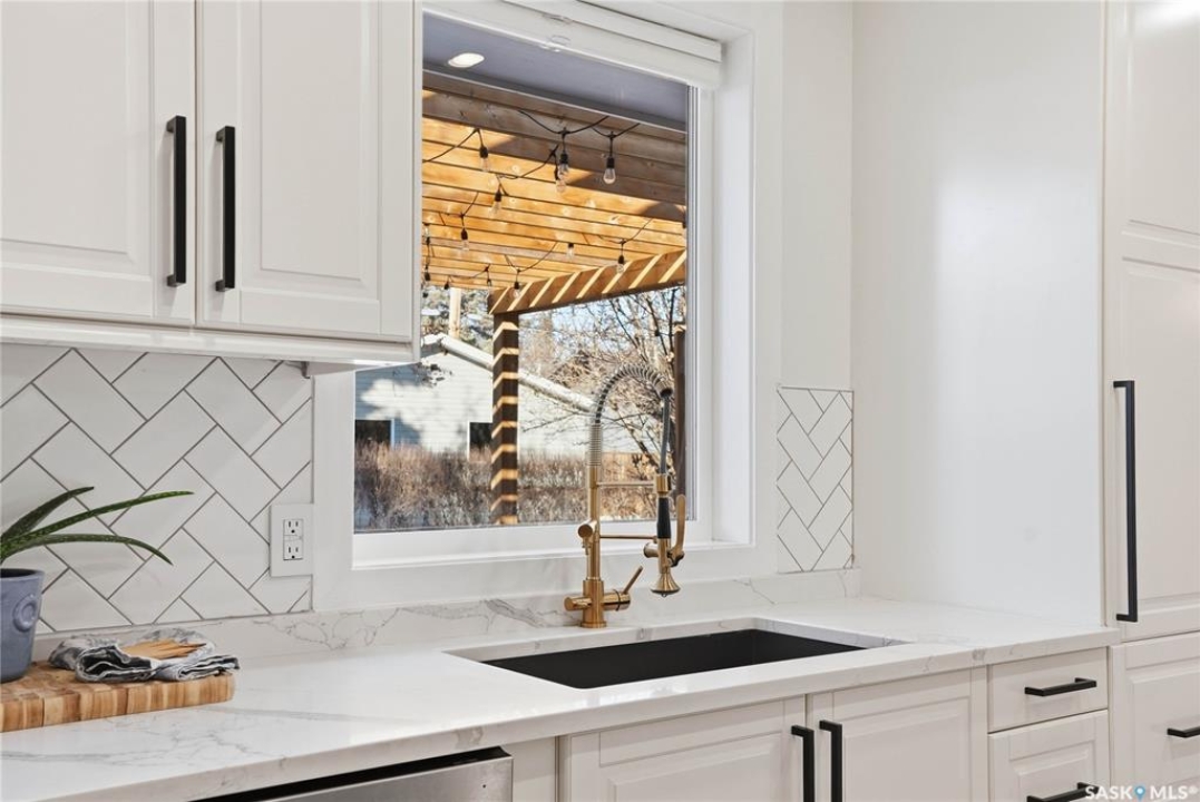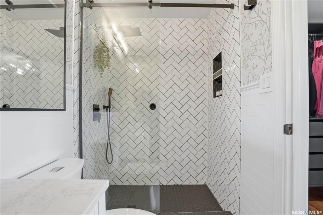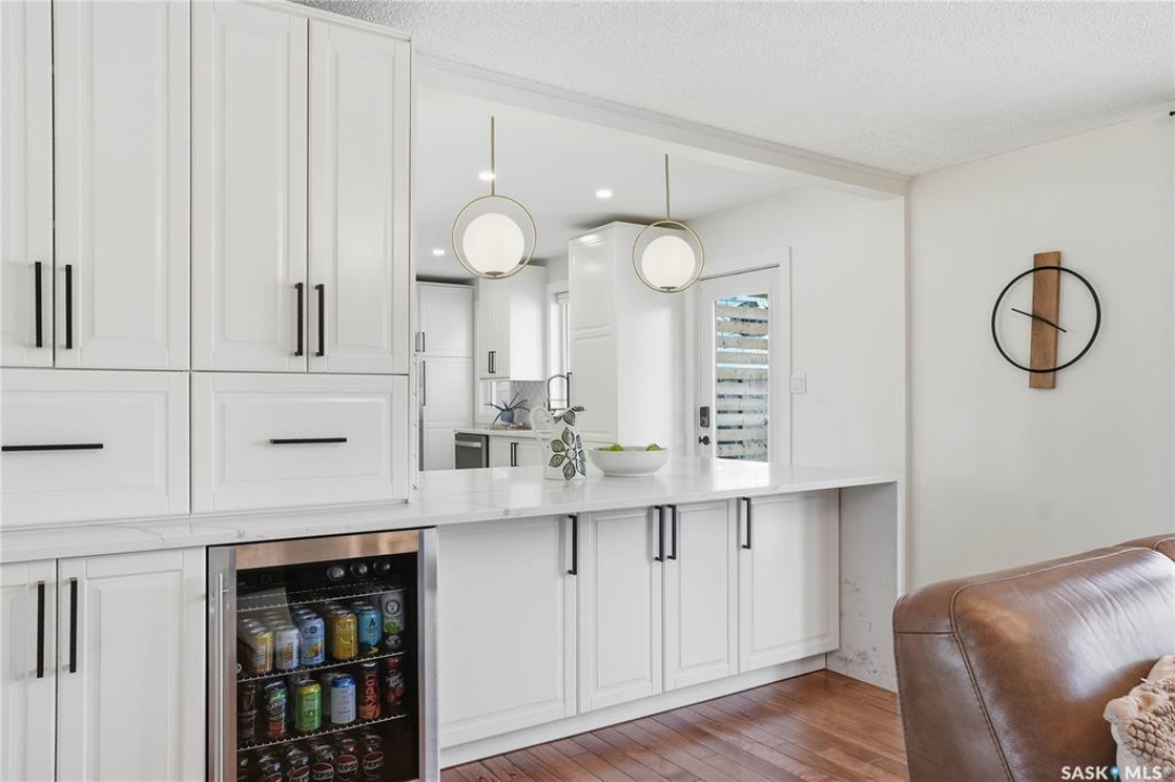 You will not want to miss this exceptional luxury home. Situated on a rare 67' x 140' lot, this fully upgraded 5 bedroom, 4 bathroom property in Varsity View truly has it all. The main floor showcases gorgeous hardwood flooring, with luxury vinyl tile in the kitchen. Designed for entertaining, the kitchen features white quartz countertops, a striking waterfall peninsula with built-in bar fridge and cabinetry, tiled backsplash, and stainless appliances. A spacious dining room with a custom fireplace feature wall and built-in cabinetry comfortably accommodates even the largest gatherings. Upstairs, the primary suite offers a true retreat with a walk-in closet and custom electric fireplace feature wall, along with a sleek 3 piece ensuite finished with tile, while the additional bedrooms are served by a beautifully appointed 4 piece bathroom. The fully developed basement adds incredible flexibility with a custom bar featuring quartz countertops and a wine fridge, a fifth bedroom, and a 4 piece bathroom. The thoughtfully designed laundry area includes quartz counters, hanging racks, and a laundry sink. Outside, the property continues to impress with a massive deck and oversized pergola, creating an ideal outdoor entertaining space overlooking the expansive yard complete with fenced garden boxes and a large storage shed the size of a single detached garage. Parking and workspace are exceptional with an attached single garage featuring epoxy floors, electric heater, and prep kitchen, along with a double detached heated garage and a double-length driveway out front. With many new windows and doors, extensive upgrades throughout, and one of the largest lots in Varsity View, this home offers a rare combination of space, design, and lifestyle.