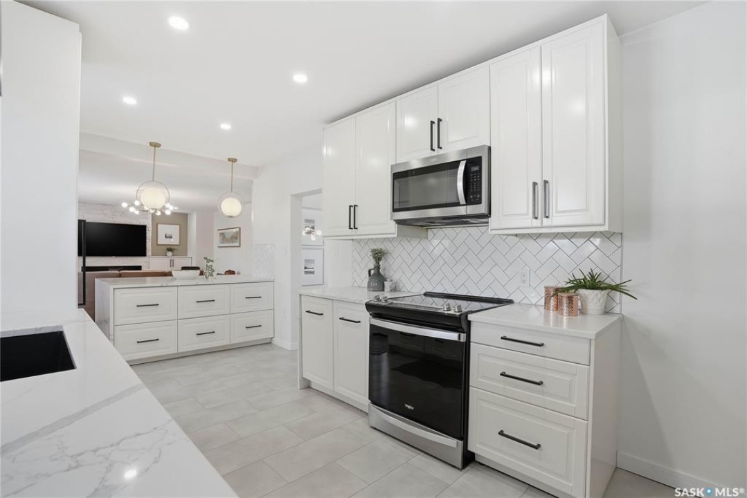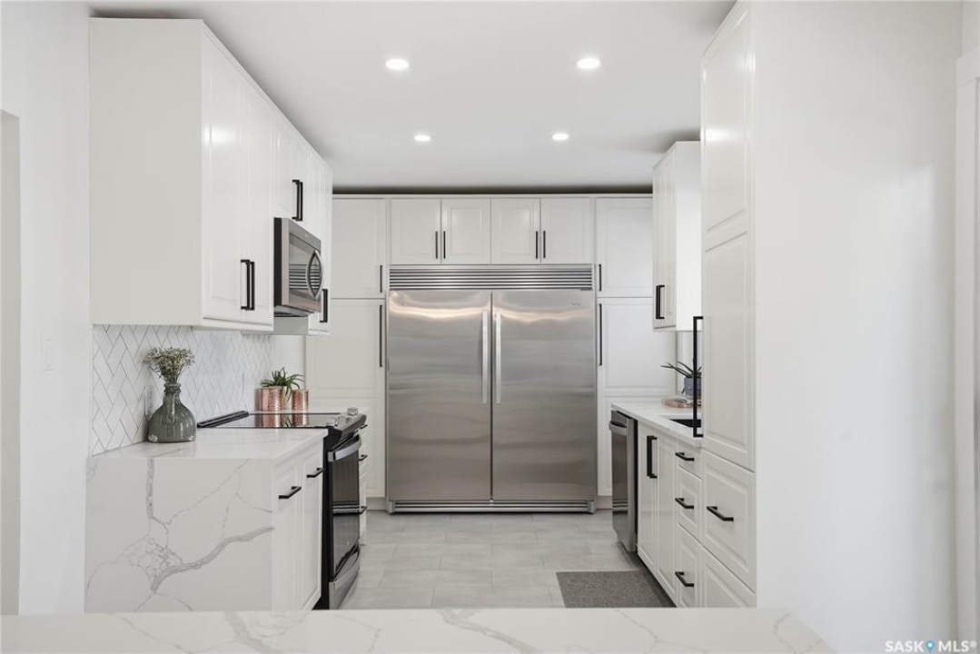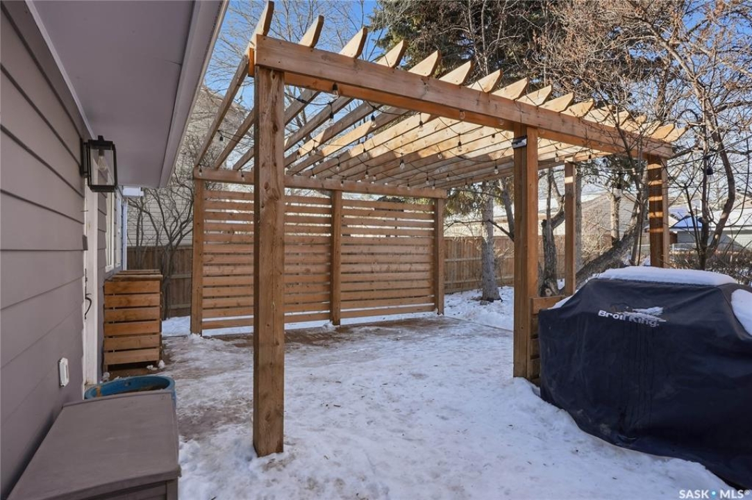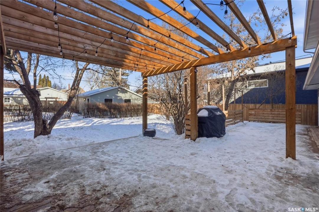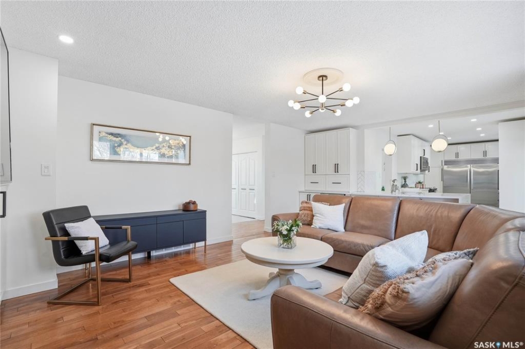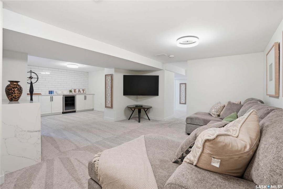 You will not want to miss this exceptional luxury home. Situated on a rare 67' x 140' lot, this fully upgraded 5 bedroom, 4 bathroom property in Varsity View truly has it all. The main floor showcases gorgeous hardwood flooring, with luxury vinyl tile in the kitchen. Designed for entertaining, the kitchen features white quartz countertops, a striking waterfall peninsula with built-in bar fridge and cabinetry, tiled backsplash, and stainless appliances. A spacious dining room with a custom fireplace feature wall and built-in cabinetry comfortably accommodates even the largest gatherings. Upstairs, the primary suite offers a true retreat with a walk-in closet and custom electric fireplace feature wall, along with a sleek 3 piece ensuite finished with tile, while the additional bedrooms are served by a beautifully appointed 4 piece bathroom. The fully developed basement adds incredible flexibility with a custom bar featuring quartz countertops and a wine fridge, a fifth bedroom, and a 4 piece bathroom. The thoughtfully designed laundry area includes quartz counters, hanging racks, and a laundry sink. Outside, the property continues to impress with a massive deck and oversized pergola, creating an ideal outdoor entertaining space overlooking the expansive yard complete with fenced garden boxes and a large storage shed the size of a single detached garage. Parking and workspace are exceptional with an attached single garage featuring epoxy floors, electric heater, and prep kitchen, along with a double detached heated garage and a double-length driveway out front. With many new windows and doors, extensive upgrades throughout, and one of the largest lots in Varsity View, this home offers a rare combination of space, design, and lifestyle.