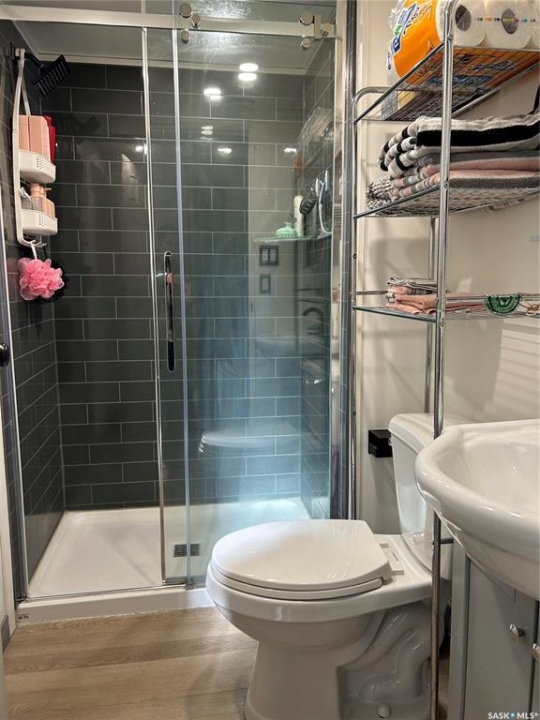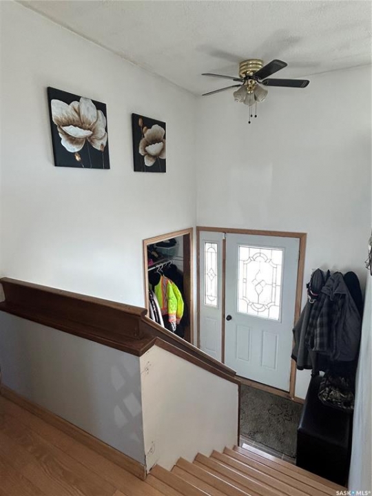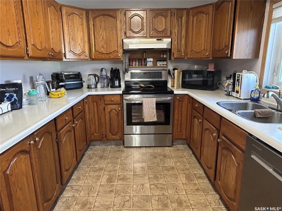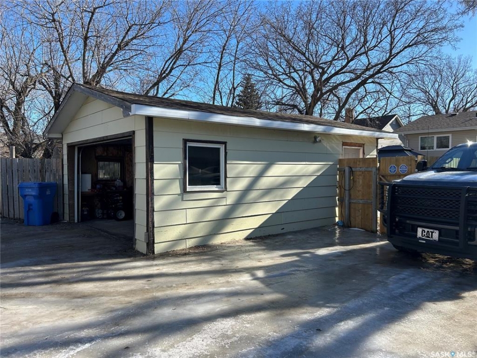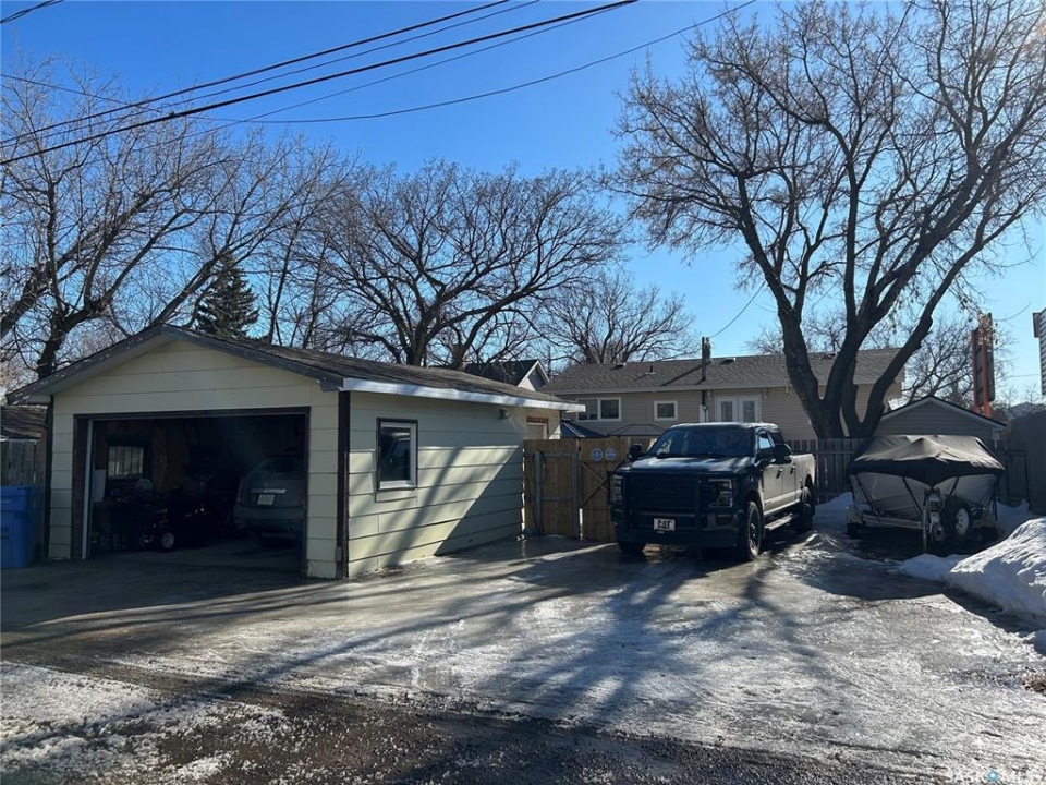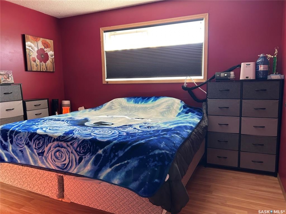 Welcome to this well-maintained bi-level home located in a quiet area of Estevan. The home welcomes you with a spacious entry foyer complete with a convenient closet for storage. The upper level features a bright and inviting living room at the front of the home, along with a kitchen offering ample cupboard and counter space. The dining area with double doors to the deck is set separately, providing a comfortable space for everyday meals. This level also includes two bedrooms and a full bathroom. The lower level offers excellent use of space with large windows that allow plenty of natural light. Here you will find a cozy family room, two additional bedrooms, and a beautifully finished three-piece bathroom. Many of the home's major updates have already been completed. Outside, the deck off the dining room extends down to a ground-level deck, and then onto a patio area with a permanent gazebo. The property also features a good-sized shed, a single garage, and parking for two vehicles from the back alley. In addition, there is a front driveway and street parking available. The furnace is approx. 4 years old, in 2025, a new central air conditioner unit was installed, as well as the water heater, and shingles on the house and garage. Windows and vinyl siding replaced in 2010 and the basement bathroom was recently updated. Newer gazebo stays.