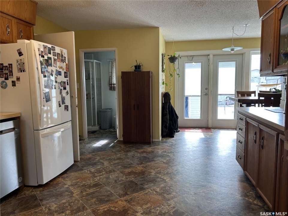 Welcome to this spacious 5-bedroom, 3-bathroom home located in the desirable Hillside area of Estevan. Upon entering the front door, you are welcomed by a bright living room with windows on two sides, allowing plenty of natural light to fill the space. The large kitchen offers a pull-out island, abundant cupboard and countertop space, and a separate dining area with double doors that lead out to the backyard—perfect for family living. This level features three bedrooms, a full four-piece bathroom, an additional three-piece bathroom, and a large back entry that serves as a convenient drop zone for coats, backpacks, and shoes. The basement provides even more living space with two additional bedrooms, another full bathroom, and a laundry area conveniently located at the bottom of the stairs. Outside, the property includes a single garage, parking available from the back alley, and a double concrete driveway, offering plenty of space for vehicles.