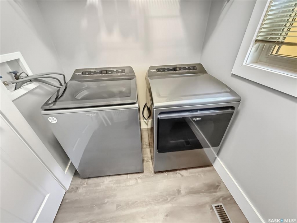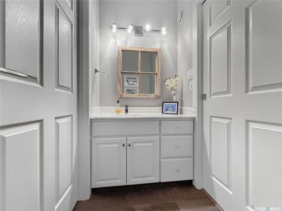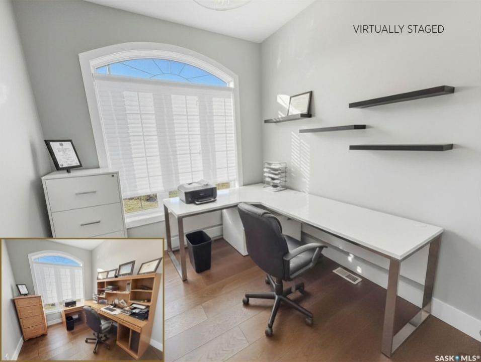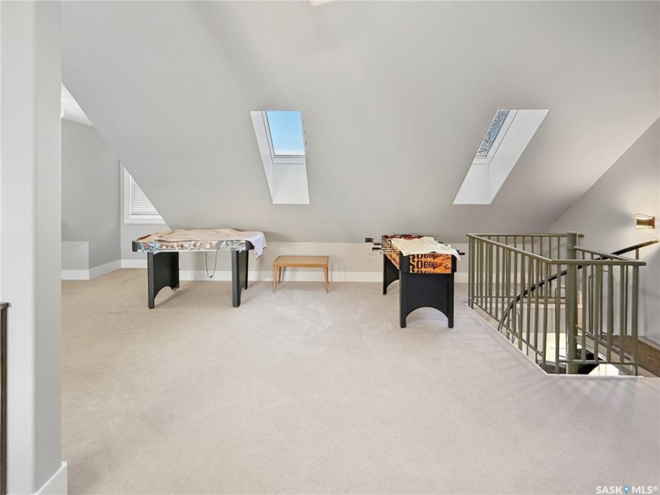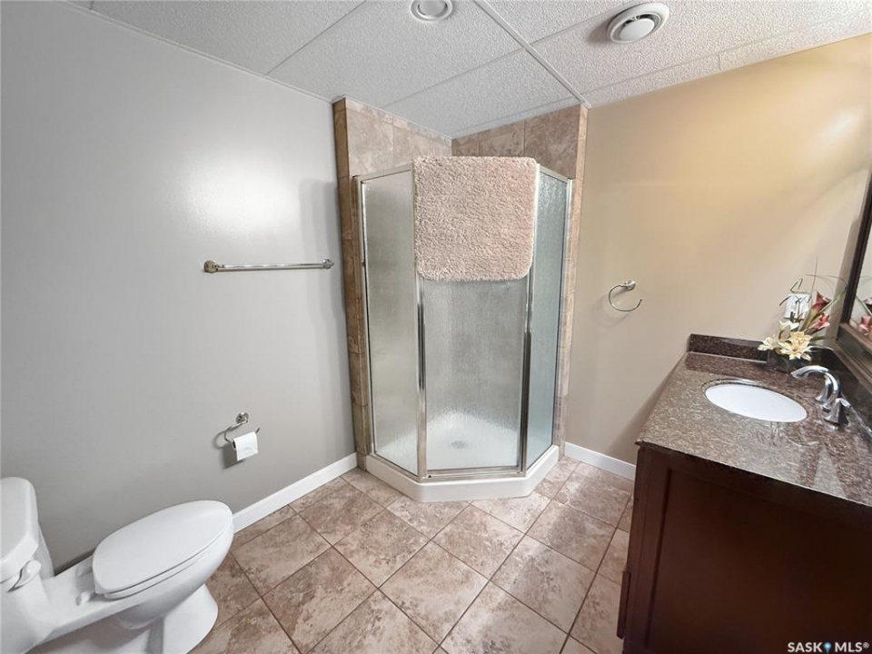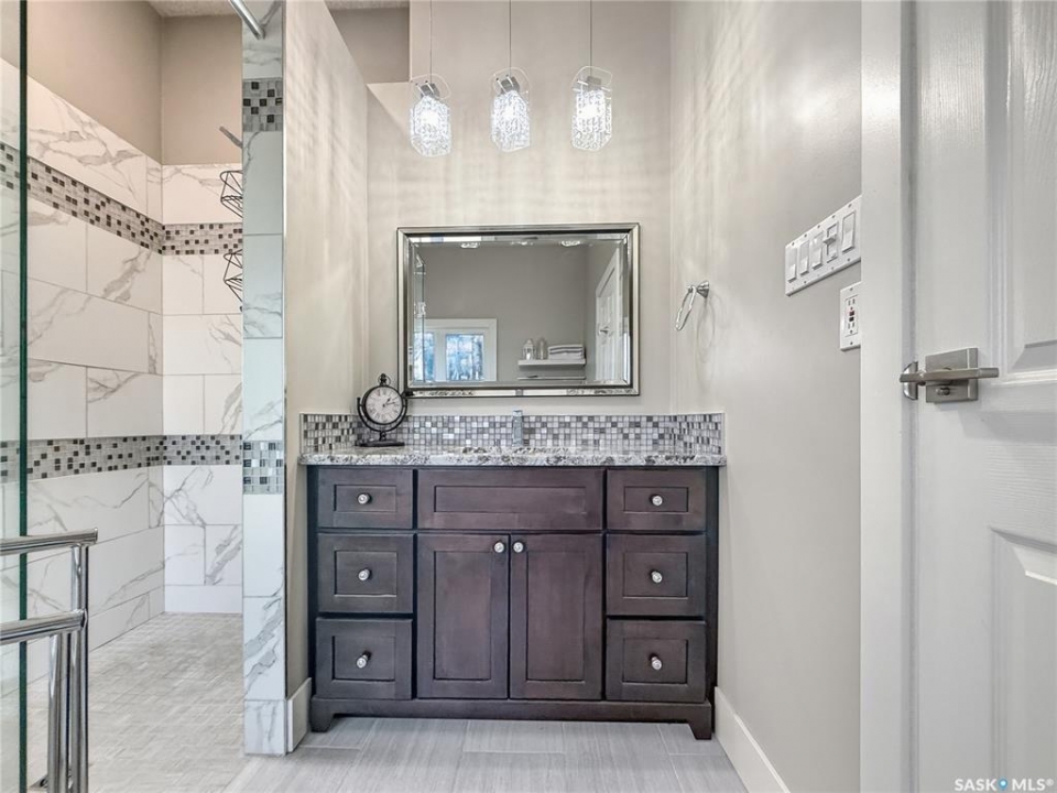 Executive two-storey home located on a quiet cul-de-sac in Swift Current's desirable North Hill neighbourhood. Situated on a mature, oversized pie-shaped lot, this beautifully maintained property offers over 2,400 sq ft above grade with a layout ideal for both everyday living and entertaining. A grand staircase welcomes you into the impressive foyer featuring 10' ceilings, crown moulding, and engineered hardwood flooring. The main floor includes a private office with French doors, a formal dining room filled with natural light, and a spacious living room with updated windows, quality blinds, silk curtains, and a cozy gas fireplace. The fully renovated kitchen (2019) showcases white cabinetry, granite countertops, tile backsplash, under-cabinet lighting, and stainless steel appliances including a double-oven slide-in range. A sit-up peninsula and bright east-facing dining nook provide access to the composite deck and backyard. Main floor laundry, a powder room, and direct entry to the attached garage add everyday convenience. The main floor primary suite offers privacy with a walk-in closet and renovated ensuite featuring granite counters, an oversized custom shower, and a corner jetted tub. Upstairs features a large family room with skylights overlooking the foyer, two spacious bedrooms with a generous Jack & Jill closet, and a full bathroom. The fully developed lower level includes a family room, two bedrooms, a three-piece bath, dance studio/flex space, storage rooms, and access to the lower-level garage. Parking and storage are exceptional with a front attached double garage plus a second garage with alley access—ideal for extra vehicles, hobbies, or workshop space. The private east-facing backyard offers mature landscaping, an oversized tiered composite deck, underground sprinklers on timers, and space to build an additional garage if desired. Close to Elmwood School, the Comprehensive High School, Elmwood Golf Course, and nearby amenities.
