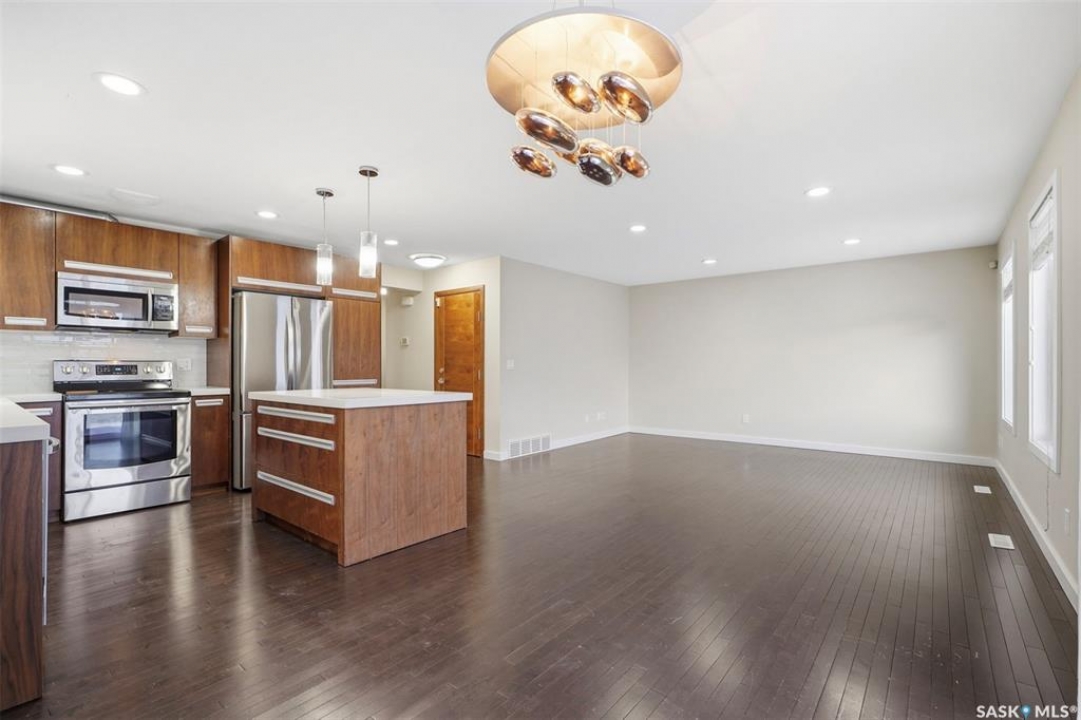 Welcome to 434 Pichler Crescent in the desirable Rosewood neighbourhood of Saskatoon. This 1,649 sq. ft. two-storey home backs directly onto green space with no neighbours behind, offering excellent backyard privacy. Built in 2015, the property features a fully self-contained legal basement suite with separate side entry and its own laundry, creating a great opportunity for additional income or multigenerational living. The main floor includes a functional layout with a convenient half bath and access to the attached double garage. Upstairs you'll find three bedrooms and two full bathrooms, including a spacious primary bedroom with ensuite. The one-bedroom basement suite was previously rented for $1,300 per month, while the upper level rented for $2,550 per month. Located close to parks, walking paths, and Rosewood's excellent elementary school, this property offers both comfortable family living and strong investment potential.