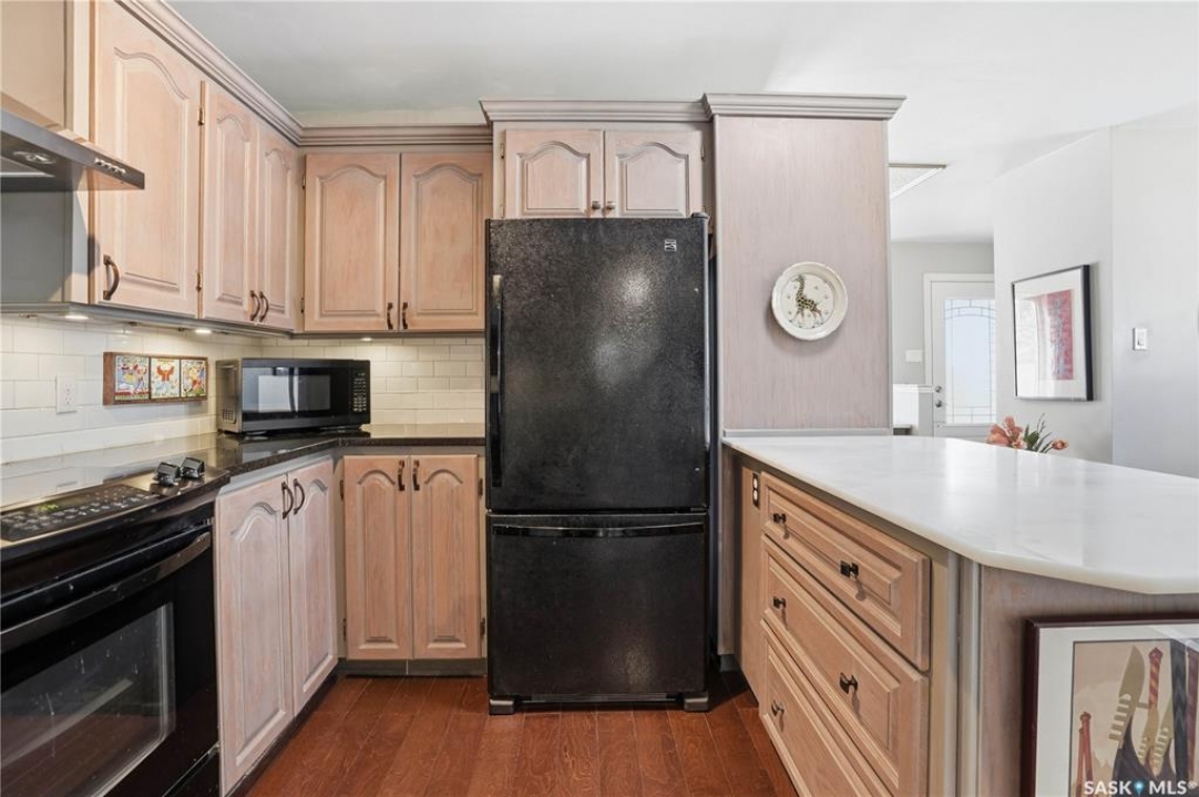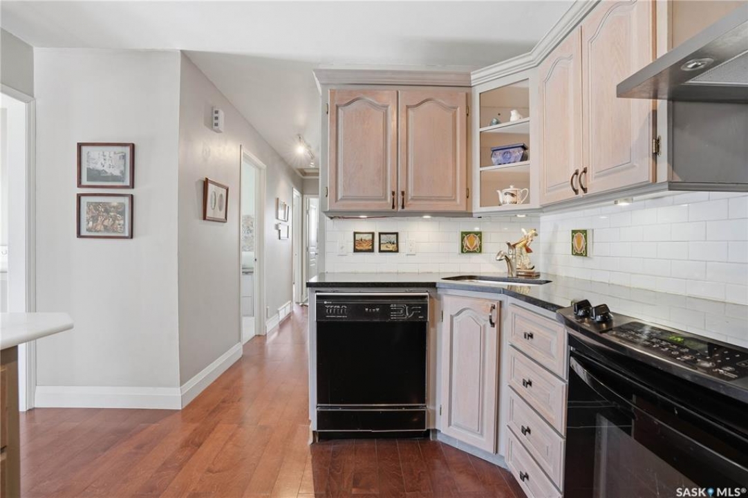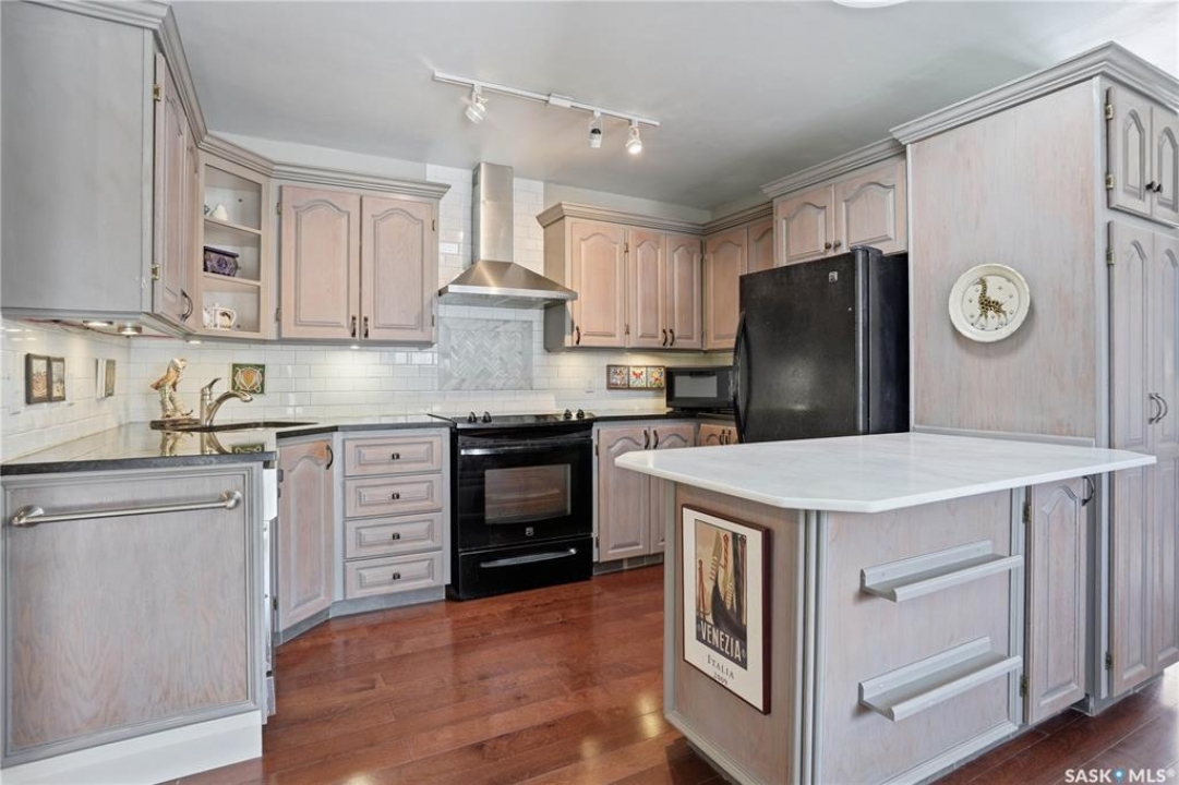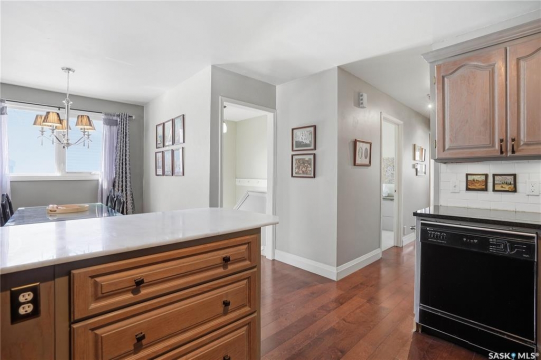 Welcome to this beautifully updated, move-in ready home filled with natural light throughout. This charming property features three comfortable bedrooms, all with good-sized closets with carpeting. The primary bedroom includes patio doors installed in 2017 and lovely built-in organizers in the closet. The home offers 4-piece bathrooms with a newer tub surround. newer interior doors and baseboards that add a fresh, modern touch to this home. The updated kitchen features attractive cabinetry with marble and granite countertops, appliances with hood fan (2014), and convenient under mount lighting. The living room, kitchen, and dining area showcase beautiful engineered birch hardwood flooring (2014). Additional upgrades include updated windows throughout. The basement offers a non-regulation suite, featuring a spacious studio layout with an egress window, cork flooring for added warmth, a 4-piece bathroom added in 2014, plus fridge and stove (2014). Exterior improvements include vinyl siding, deck, fencing, and an asphalt driveway, providing great curb appeal and functionality. Major infrastructure updates were completed by the City between 2020–2021, including new sidewalks and upgraded water and sewer lines.