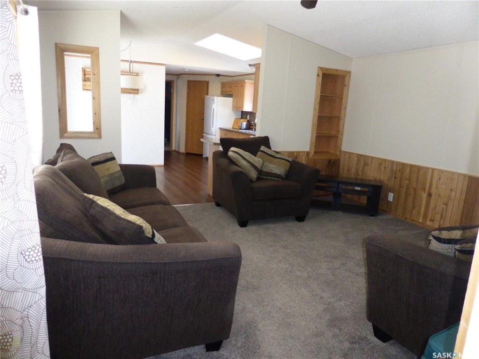 Here is your opportunity to own a great lake home in an excellent location! 8 Sunshine Place sits on a pie-shaped lot in a quiet cul-de-sac just one block from the water. The property is ideally located next to the mini golf course and right by the park where the new pickleball court is located. It's also just a short walk to a beautiful sandy beach with plenty of playground equipment where kids can build lasting lake memories. The 2006 modular home was recently moved onto the lot and thoughtfully set up with landscaping, a sand point well, and an impressive 14 x 60 deck designed for countless hours of outdoor enjoyment. Part of the deck is covered so you can relax in any weather, while the open section allows you to soak up the sunshine. A hot tub completes this fantastic outdoor space. The home has been recently re-shingled and features a maintenance-free exterior, allowing you to spend more time enjoying the lake and less time on upkeep. There is also plenty of room on the lot to build a future garage if desired. Built with 2 x 6 construction, the home offers a functional and comfortable layout. The spacious foyer welcomes you in and leads to two bedrooms and a 4-piece bathroom at the back of the home. The large living room flows into the kitchen and dining area, creating a bright and open living space. The primary bedroom features a walk-in closet and a 4-piece ensuite with a large soaker tub. Skylights in both bathrooms and an additional skylight above the kitchen cooking area bring in plenty of natural light. Call your favourite REALTOR � today to schedule a viewing of this great lake property.