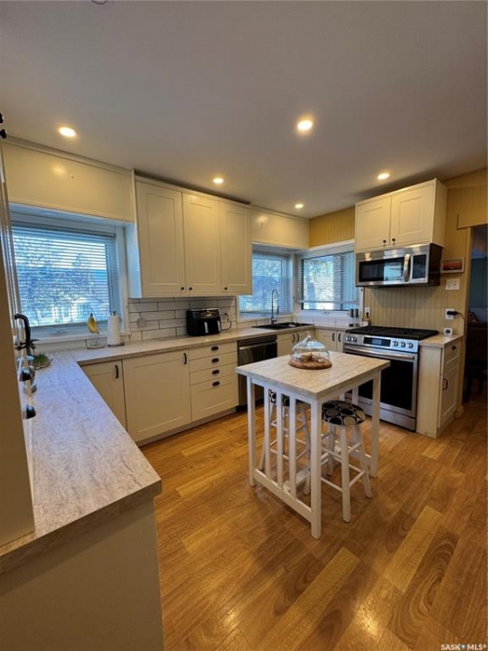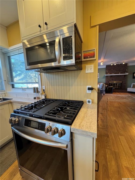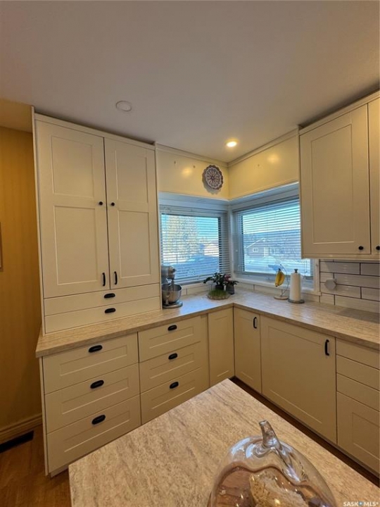 Timeless Character Meets Modern Luxury! Step into a home where character, comfort, & thoughtful design come together beautifully. This stunning 3-bedroom, 2-bath residence offers inviting spaces, quality updates, & unique architectural charm throughout. The beautifully renovated kitchen is the heart of the home, featuring stylish cabinetry, elegant countertops, a spacious island, & a custom built-in coffee bar. A cozy breakfast nook creates the perfect spot for morning coffee while natural light fills the space. Included appliances feature a natural gas stove, refrigerator, microwave fan, and dishwasher. Designed for both everyday living and entertaining, the open-concept dining and living area showcases a charming built-in china cabinet, creating a warm and welcoming atmosphere for gatherings with family and friends. A dramatic recreational room with vaulted ceilings and expansive windows floods the home with natural light and offers an impressive space for relaxing or entertaining. The spiral staircase leads to a charming sitting area or private office retreat—an ideal place to unwind while enjoying breathtaking views of the Northern Lights dancing across the night sky.The finished basement provides exceptional versatility with a spacious bedroom, a stylish three-piece bath, and a large rumpus room perfect for family activities or hosting guests. A rare and highly desirable feature is the attached triple-car garage (13'x34' +19'x42'),complete with in-floor heating, a private bathroom, and a workbench with sink-perfect for hobbyists, car enthusiasts, or additional workspace. Outdoors, the property continues to impress with a beautiful front-yard fountain, raised garden beds, and a backyard oasis that includes a greenhouse and workshop, offering endless possibilities for gardening, creativity, and relaxation.This exceptional home offers space, charm, & distinctive features rarely found in one property. Experience it for yourself—schedule your private viewing today.