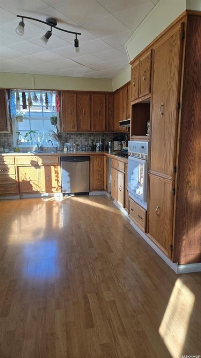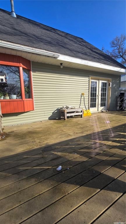 This home is ready for the next person to move in and love it. This three bedroom home is on a mature lot that includes a completely fenced back yard with lots of privacy. Enter the front door and the uniqueness of this home is immediately apparent in the welcoming porch that opens to a large living room and dining room. Lots of natural light in these areas that extend to the large back deck that is perfect for entertaining in this quiet neighborhood. The kitchen also maintains this natural lighting and goes one step further with a large bay window. There is tons of cupboard space and a bonus walk in pantry. The main bedroom and bathroom complete with jetted tub finish the main floor. Upstairs are two more spacious bedrooms perfect for families or extra guests. The partially finished basement contains an oversized family room, utility room, laundry, and more storage. 2026 furnace. On demand water heater. This is a great starter home. Priced to sell!