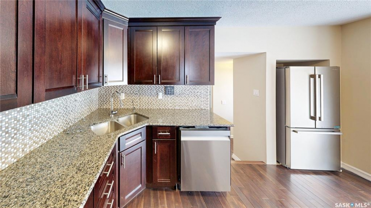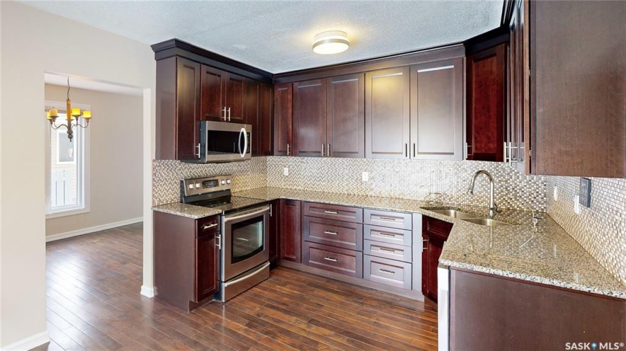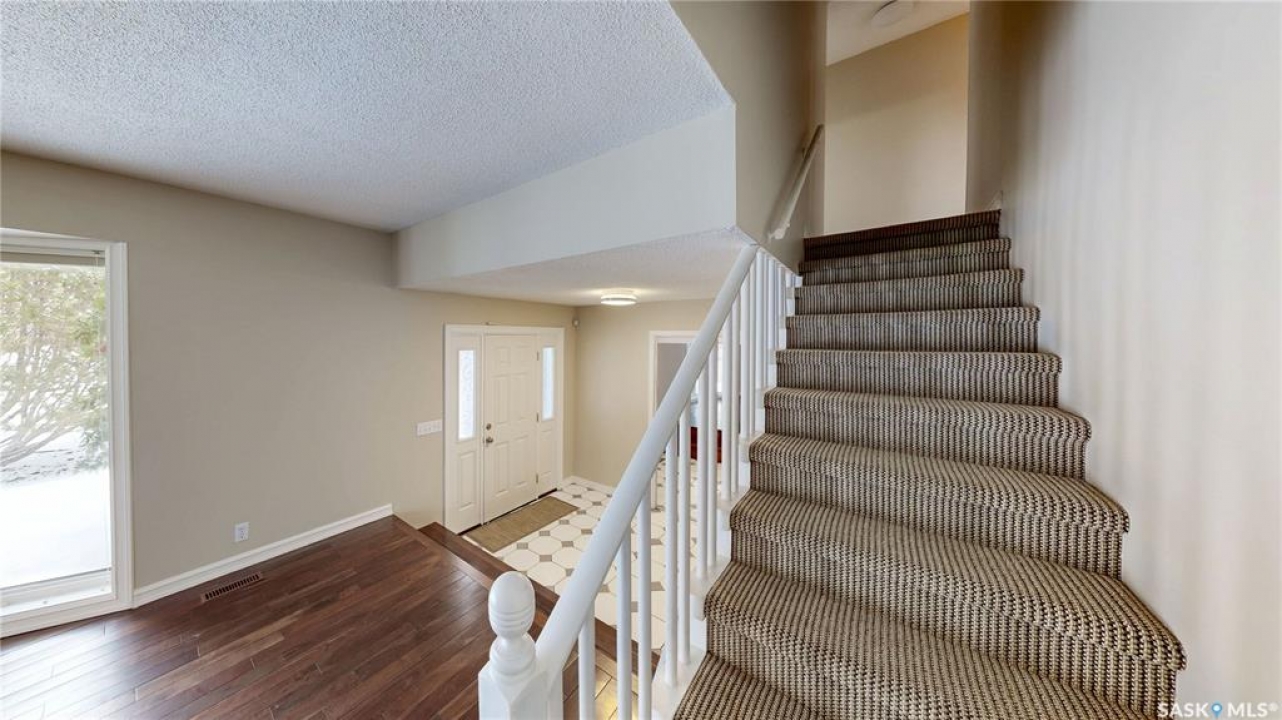 Welcome to 50 Lowry Place on a quiet cul-de-sac in the Albert Park neighbourhood. This 1973 built, 1729 square foot, 4 bedroom 3 bathroom, 2 storey split sits on a generous 7312 square foot, rectangular lot. The front yard has a lawn, professional landscaping with mature trees and a double driveway leading to the fully insulated, double, attached garage. The backyard is fully fenced and features a covered deck with a vaulted roof, eavestroughs, and sunshades, along with a sprawling lawn, mature trees, plenty of greenery and a back alley for easy access. You enter this home into the foyer with tile flooring, a coat closet and room for a bench. The entire interior has been freshly painted in 2025 giving it a fresh new feel. The living room has beautiful floor to ceiling bay windows and hardwood flooring. It flows seamlessly into the dining room with ample space for a large table and chairs. The kitchen was renovated in 2018 with custom cabinetry, granite countertops, tile backsplash and stainless-steel fridge, stove, microwave hood fan and dishwasher that were purchased in 2023 are all included. Next is a handy 2 piece bathroom. The cozy family room has a brick fireplace with built-in shelving and cabinets. Upstairs is the primary bedroom with a walk-in closet and a massive 4 piece en-suite bathroom featuring a large jet tub, separate shower, and a built-in vanity. Next is a good sized bedroom followed by the updated 4 piece bathroom and another bedroom. Downstairs in the fully finished basement is a large rec room with a unique workshop area. The laundry room has storage space and the included washer, dryer and freezer! Finishing off the home is one more bedroom. The home has also seen many upgrades including new central air conditioning, a stucco finish with 2” insulation, triple-pane windows, new shingles, soffits, and garage door, dual high-efficiency furnaces, new entry doors, sump pumps, updated plumbing fixtures, and an owned water heater.