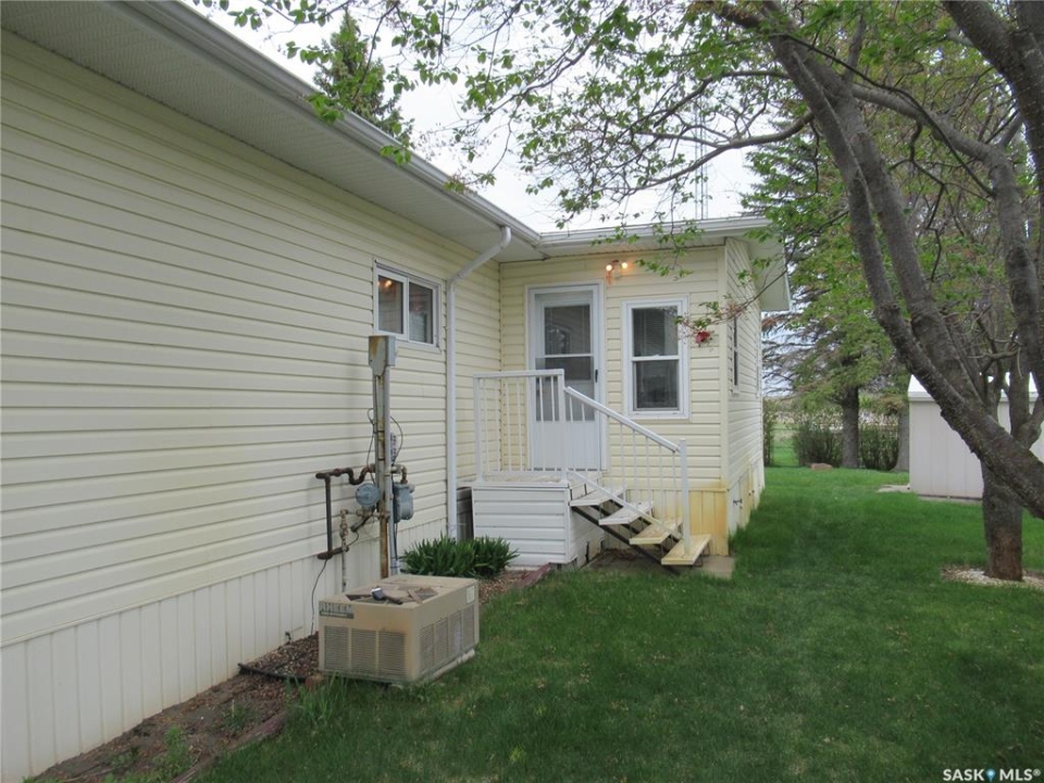 Welcome to a home filled with care, pride, and wonderful memories. Lovingly owned and enjoyed for decades, this original owner property in the community of Coppersands offers a warm and inviting place to call home. Situated on a spacious, fully fenced lot, the outdoor space is truly special. Fully landscaped yard has been beautifully maintained with underground sprinklers, a maintenance free PVC deck and two garden sheds for storage. Front yard offers an abundance of perennials returning year after year. Garden doors from the kitchen lead to an interlocking brick patio area—perfect for relaxing or enjoying time outdoors. A PVC front entry deck welcomes you at the front door, while an asphalt double driveway provides convenient off-street parking for two and easy access to the home. Inside, the home has been thoughtfully expanded with three additions over the years, creating comfortable and functional living spaces. The bright family room addition provides welcoming front entry access, while the second added a storage room plus expanded the bathroom to include a relaxing jetted tub and second vanity alongside the original tub and shower. The third, a large den along the back of the home and features built-in cabinetry and direct access to the PVC landing leading to the side yard and patio. The kitchen offers beautiful oak cabinetry, including a built-in china cabinet and plenty of cupboard space. The living room provides a cozy atmosphere with a corner gas fireplace complete with mantle, while the spacious primary bedroom offers a comfortable retreat at the end of the day. Updates over the years include peaked roof, vinyl windows, drywall interior finishing, updated kitchen cupboards and counters, newer flooring, central vacuum, and shingles. Pad rental is $675/month and includes water, garbage pickup, and street snow removal. Come experience the warmth and pride of ownership this home offers—you may just find it feels like home the moment you arrive.