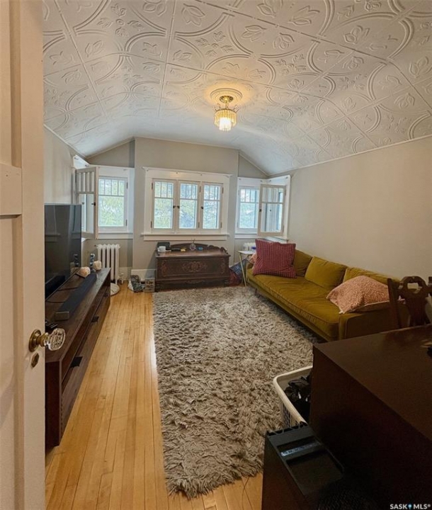 One-of-a-Kind Character Home in Yorkton, Saskatchewan. Located on historic Third Avenue North, this stunning character home is overflowing with curb appeal and timeless charm. The home showcases beautiful original details throughout, including leaded glass windows, hardwood flooring, original trim, vintage doors. These classic features are thoughtfully blended with modern upgrades to kitchen & bathrooms. Set on a large newly fenced lot, the property offers both privacy and space. The welcoming entrance features a natural gas fireplace & leaded windows with natural light. A spacious, separate living room connects to dining room through elegant French doors, creating a perfect space for entertaining. The updated kitchen complements the home's character while offering ample counter space, cabinetry, pantry, and direct access to back deck. Main floor washroom has been updated and includes a renovated laundry area. A solid oak staircase filled with natural light leads to the second level to an updated 4-piece bathroom, three large bedrooms, each featuring large windows for natural light and walk-in closets. Additional features include European chandeliers, exposed beamed ceilings, crystal door knobs and many unique architectural details that must be seen to be appreciated. Basement level offers even more possibilities. It has a newly updated interior entrance from the main level as well as separate private exterior entrance, making it ideal for extended family or potential revenue generation. Basement also includes a large family room with space for a kitchen/dining area, living room area, spacious bedroom, an updated 4-piece bathroom and utility/storage room. The oversized lot also boasts a heated and insulated double garage, a single detached garage, and a newly fenced back yard, providing great privacy with deck and fire pit to enjoy outdoors . Truly one-of-a-kind property blends historic charm with modern comfort and offers exceptional space both inside and out.