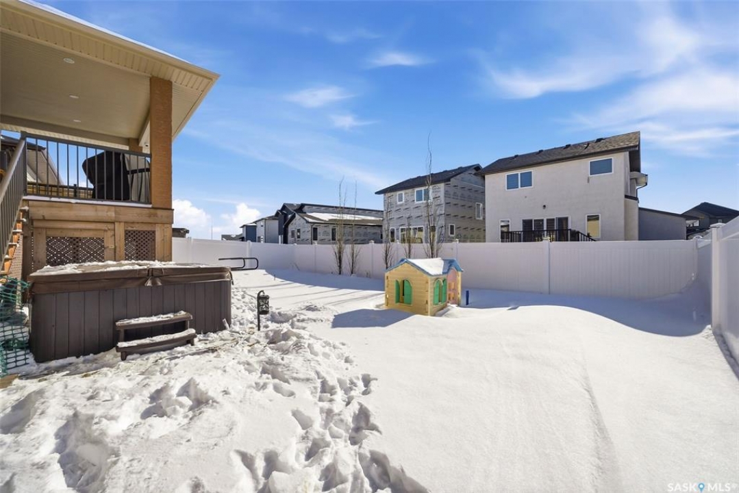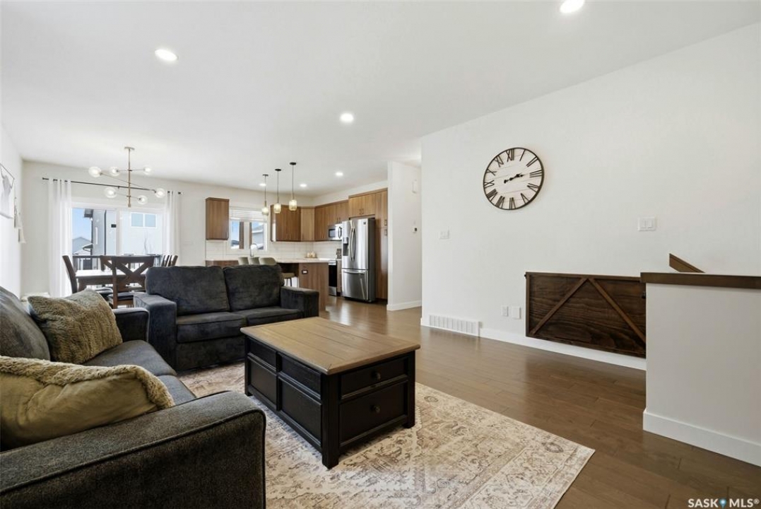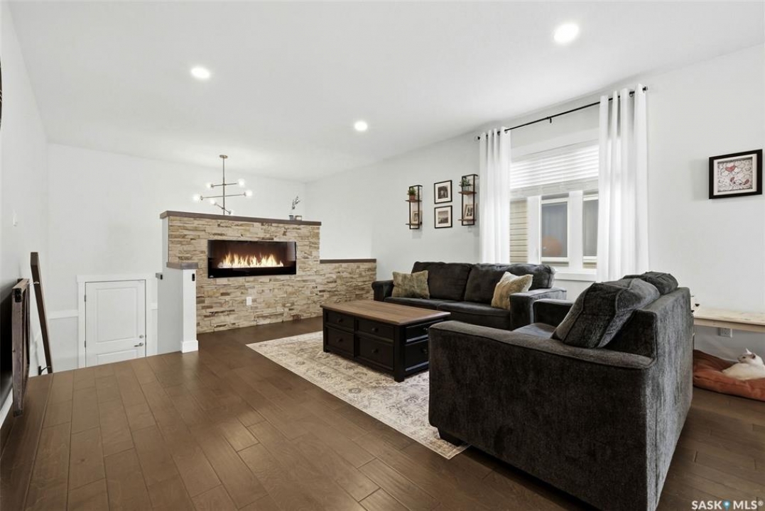 Welcome to this beautiful 2020-built house in the highly sought after family neighbourhood of Discovery Ridge in Pilot Butte, offering modern design, quality finishes, and a spacious layout perfect for families. This 1,480 sq. ft. home with a fully finished basement provides plenty of room to live and entertain. The main floor features a bright open-concept living area highlighted by engineered hardwood floors and a stunning feature fireplace wall, creating a warm and inviting space. The stylish kitchen offers modern cabinetry, stainless steel appliances, and a large island, ideal for cooking and gathering with family and friends. The main level includes three bedrooms, including a spacious primary suite with a 3-piece ensuite, plus an additional full bathroom. Downstairs, the fully finished basement adds even more living space with a large recreation room, two additional bedrooms, and a 4-piece bathroom, perfect for guests or growing families. Step outside to enjoy the fully fenced backyard featuring a covered deck and hot tub, creating the perfect setting for relaxing or entertaining year-round. The property also includes a heated triple attached garage (30' x 24') providing plenty of parking and storage space. Located in the welcoming community of Pilot Butte, this home offers small-town living just minutes from Regina with easy access to parks, schools, and amenities. A fantastic opportunity to own a modern, move-in-ready home with space, style, and comfort.