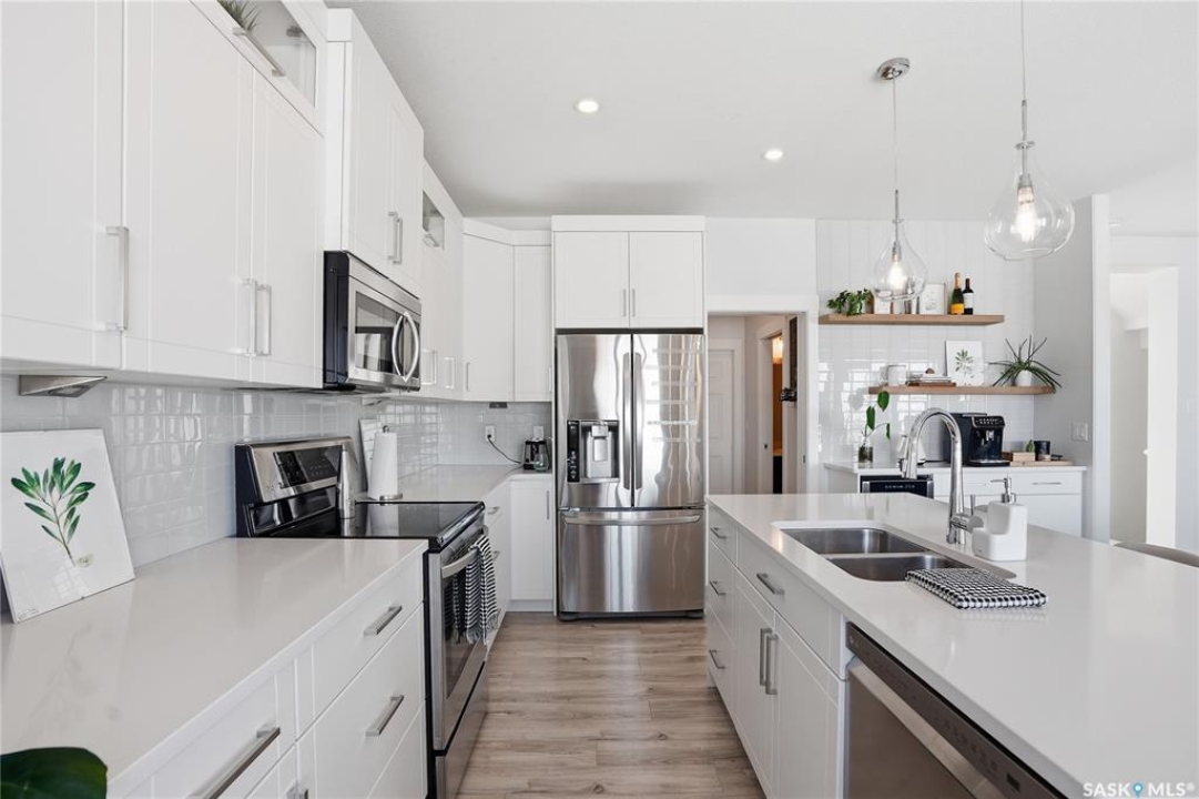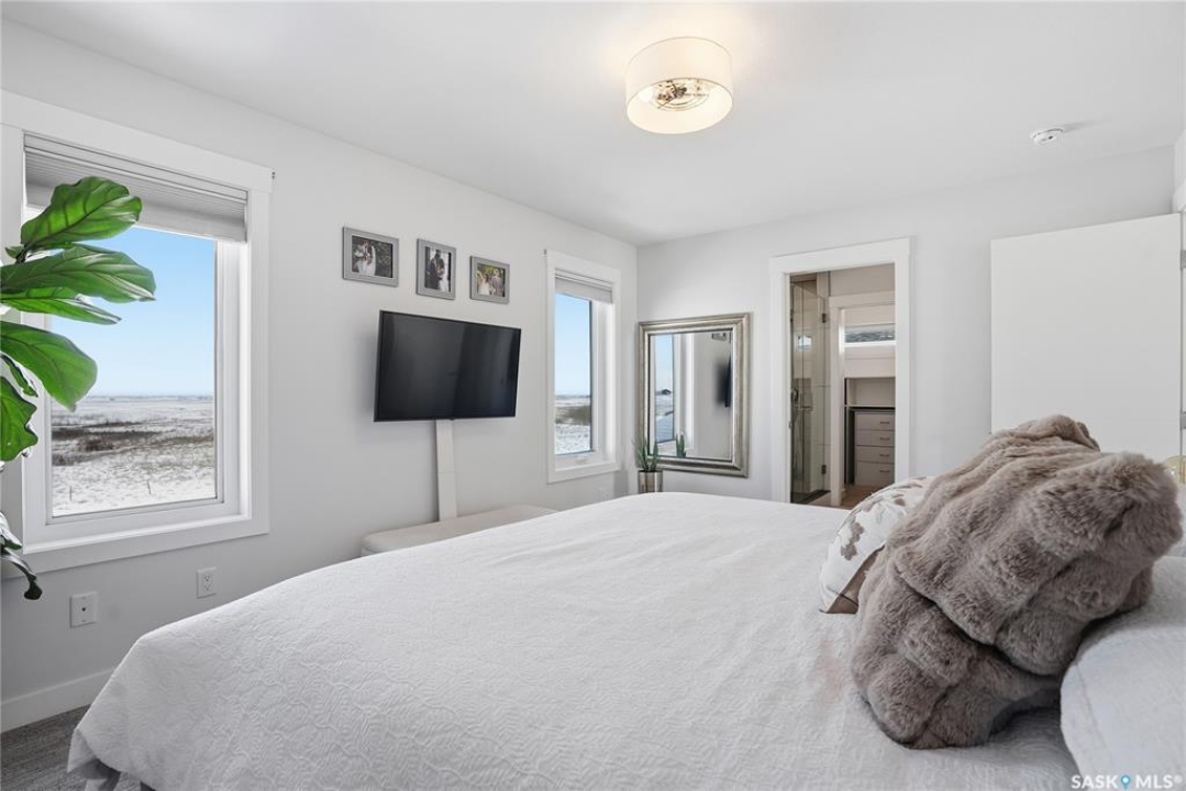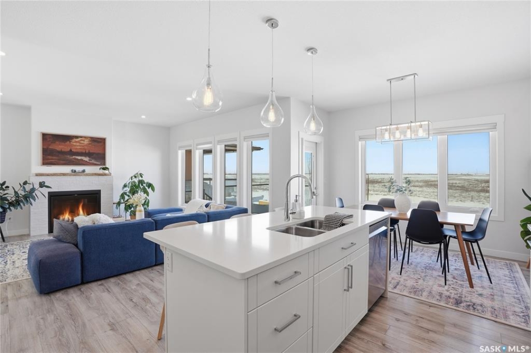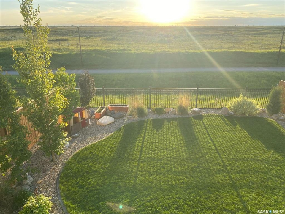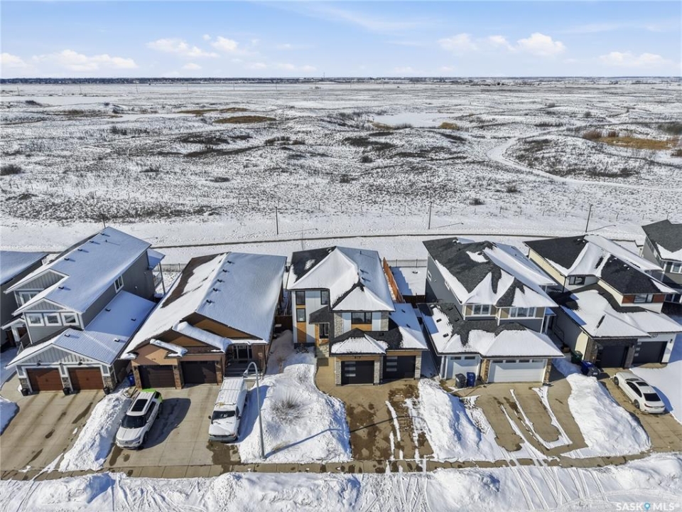 No neighbors behind and million dollar sunset views. Welcome to 619 Fast Crescent in Aspen Ridge - a fully developed 4 bedroom, 4 bathroom walkout backing directly onto the Northeast Swale, one of Saskatoon's most remarkable natural landscapes. From the street the home immediately stands out with clean curb appeal, thoughtful landscaping, and a custom build designed with both style and function in mind. Step inside to a bright east-facing entry with soaring ceilings that create an open and welcoming feel. Durable laminate flooring runs throughout the main floor and leads you into a comfortable living room centered around a gas fireplace. The kitchen checks every box with quartz countertops, modern cabinetry, and a large island that flows seamlessly into the dining area where oversized windows capture the stunning view behind the home. Patio doors lead to the upper deck with stairs down to the yard, making it perfect for enjoying the scenery. The main floor also offers a 2-piece powder room, pantry, and mudroom off the oversized garage. Upstairs you'll find three generously sized bedrooms including a primary suite with double sinks, a custom tiled shower, and a spacious walk-in closet, along with another 4-piece bathroom and convenient second-floor laundry. The fully developed walkout basement adds even more living space with a fourth bedroom, 4-piece bathroom, and a large family room that opens directly onto the covered patio and west-facing backyard. What truly sets this home apart is the setting. The backyard backs directly onto the Northeast Swale, one of the most biodiverse landscapes in the Saskatoon area, offering wide open prairie views, native grasses, wildlife, and incredible sunsets right outside your door. Added value includes all appliances, window treatments, central air conditioning, custom storage, extensive concrete work, and professional landscaping. If you've been waiting for a walkout backing the Swale, this is it!
