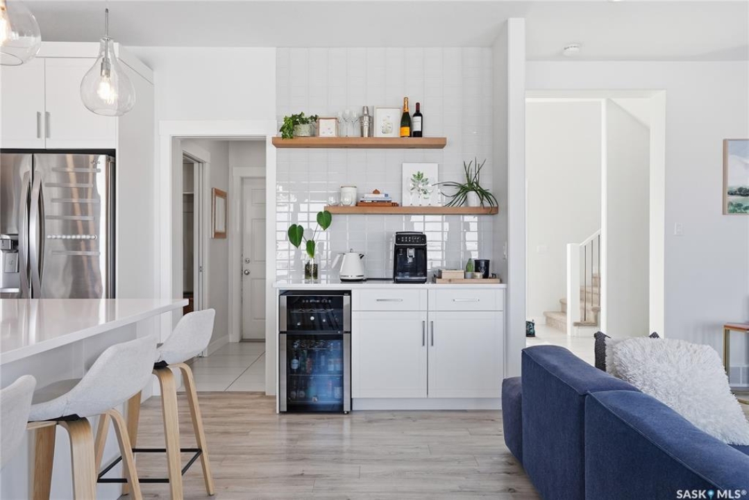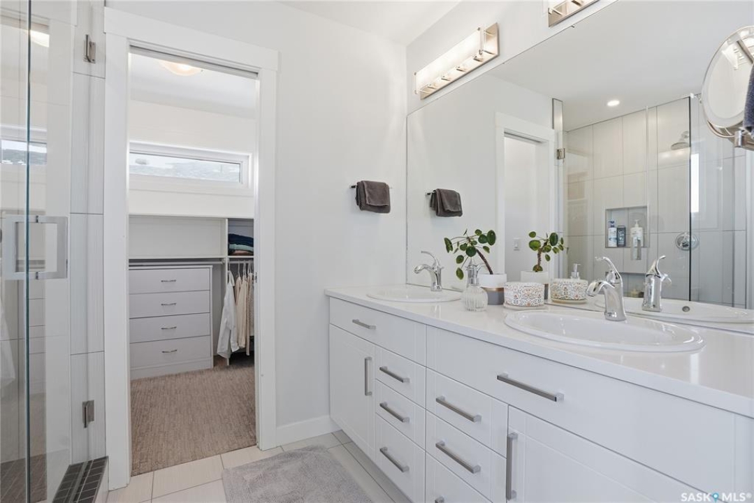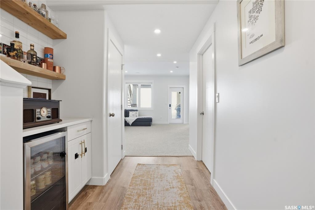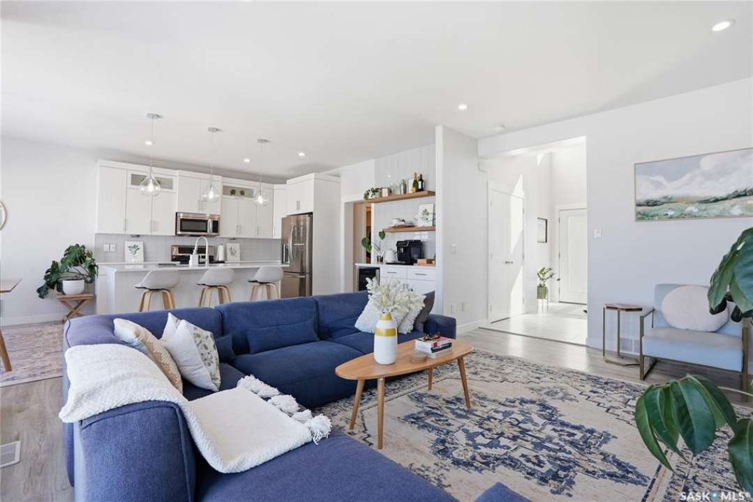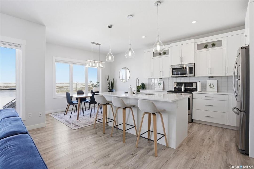 No neighbors behind and million dollar sunset views. Welcome to 619 Fast Crescent in Aspen Ridge - a fully developed 4 bedroom, 4 bathroom walkout backing directly onto the Northeast Swale, one of Saskatoon's most remarkable natural landscapes. From the street the home immediately stands out with clean curb appeal, thoughtful landscaping, and a custom build designed with both style and function in mind. Step inside to a bright east-facing entry with soaring ceilings that create an open and welcoming feel. Durable laminate flooring runs throughout the main floor and leads you into a comfortable living room centered around a gas fireplace. The kitchen checks every box with quartz countertops, modern cabinetry, and a large island that flows seamlessly into the dining area where oversized windows capture the stunning view behind the home. Patio doors lead to the upper deck with stairs down to the yard, making it perfect for enjoying the scenery. The main floor also offers a 2-piece powder room, pantry, and mudroom off the oversized garage. Upstairs you'll find three generously sized bedrooms including a primary suite with double sinks, a custom tiled shower, and a spacious walk-in closet, along with another 4-piece bathroom and convenient second-floor laundry. The fully developed walkout basement adds even more living space with a fourth bedroom, 4-piece bathroom, and a large family room that opens directly onto the covered patio and west-facing backyard. What truly sets this home apart is the setting. The backyard backs directly onto the Northeast Swale, one of the most biodiverse landscapes in the Saskatoon area, offering wide open prairie views, native grasses, wildlife, and incredible sunsets right outside your door. Added value includes all appliances, window treatments, central air conditioning, custom storage, extensive concrete work, and professional landscaping. If you've been waiting for a walkout backing the Swale, this is it!