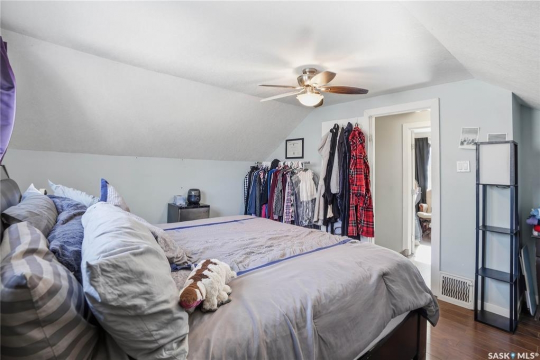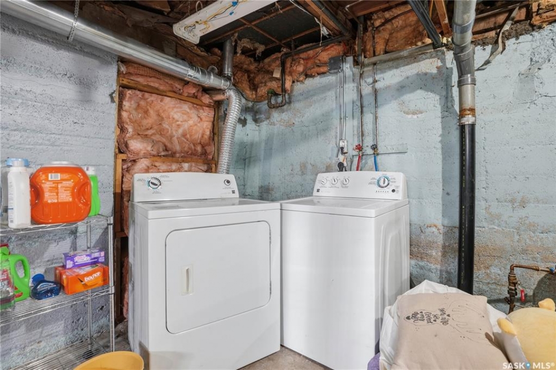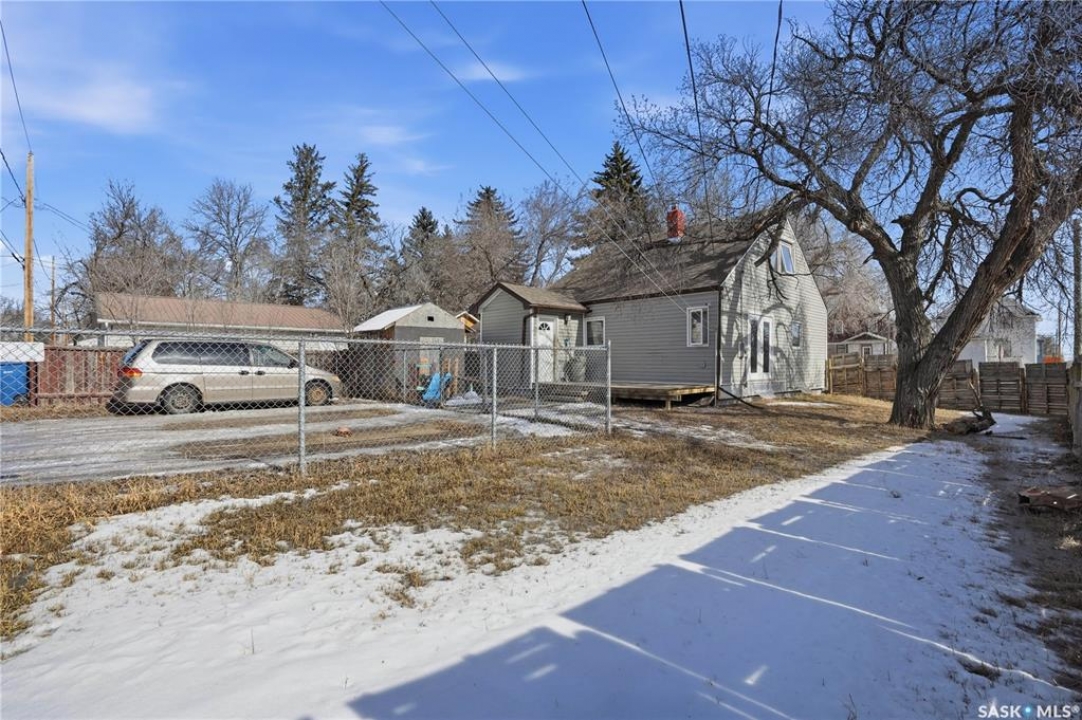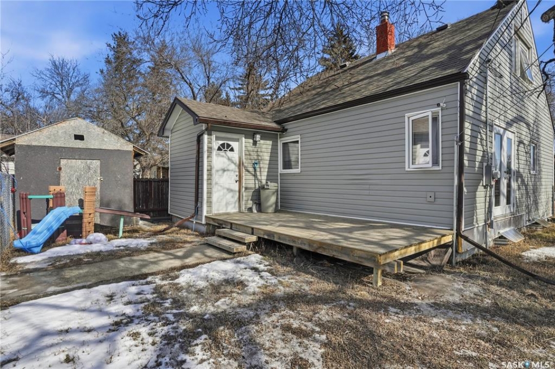 Are you looking for an excellent starter home? This affordable home checks a lot of boxes! This 3 bed and 1 bath home boasts almost 1,200 sq.ft over 2 floors! Sitting on a nice corner lot in a great neighborhood - just a couple blocks from Saskpoly. Excellent curb appeal as you arrive with newer vinyl siding and roof. Heading inside you are greeted by a foyer off the front providing a nice entrance. Next you find a good size living room with a large window. Heading back we find an open concept U-shaped kitchen and dining space. There is also a 4 piece bathroom and a good size bedroom on this level. Off the back of the home we find a large mudroom - making coming home easy with parking in the rear. With an extra wide set of stairs leading to the second floor we find 2 more bedrooms on this floor with a large primary bedroom here. The basement is open for development but hosts your laundry and your utility spaces as well as lots of space for a future family room or more bedrooms. This is a great home to start your home ownership journey! Excellent value here! Reach out today to book your showing!