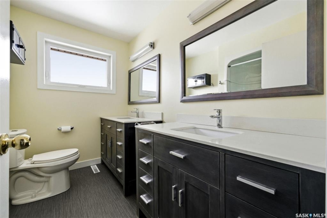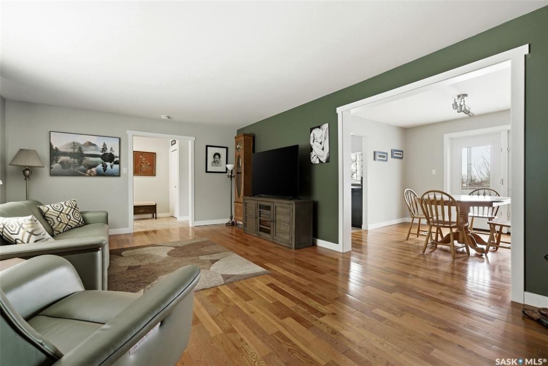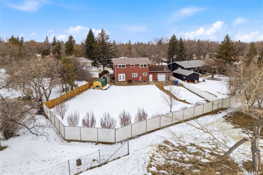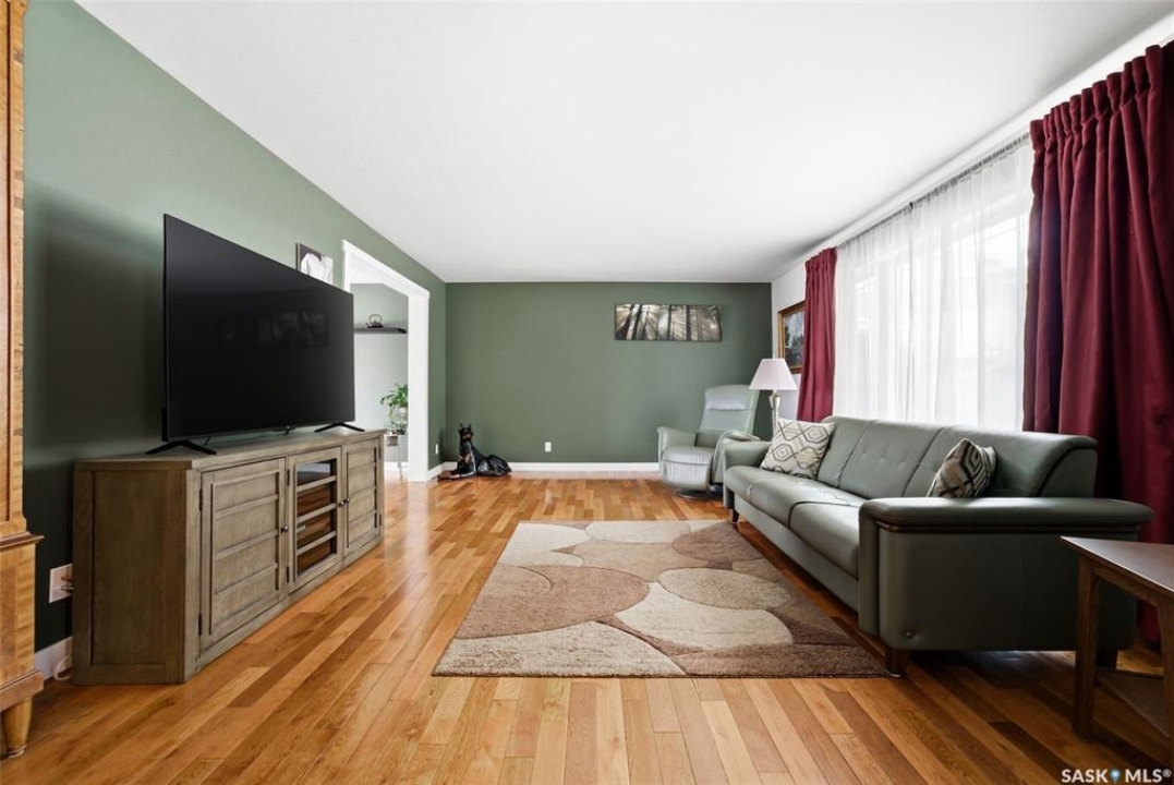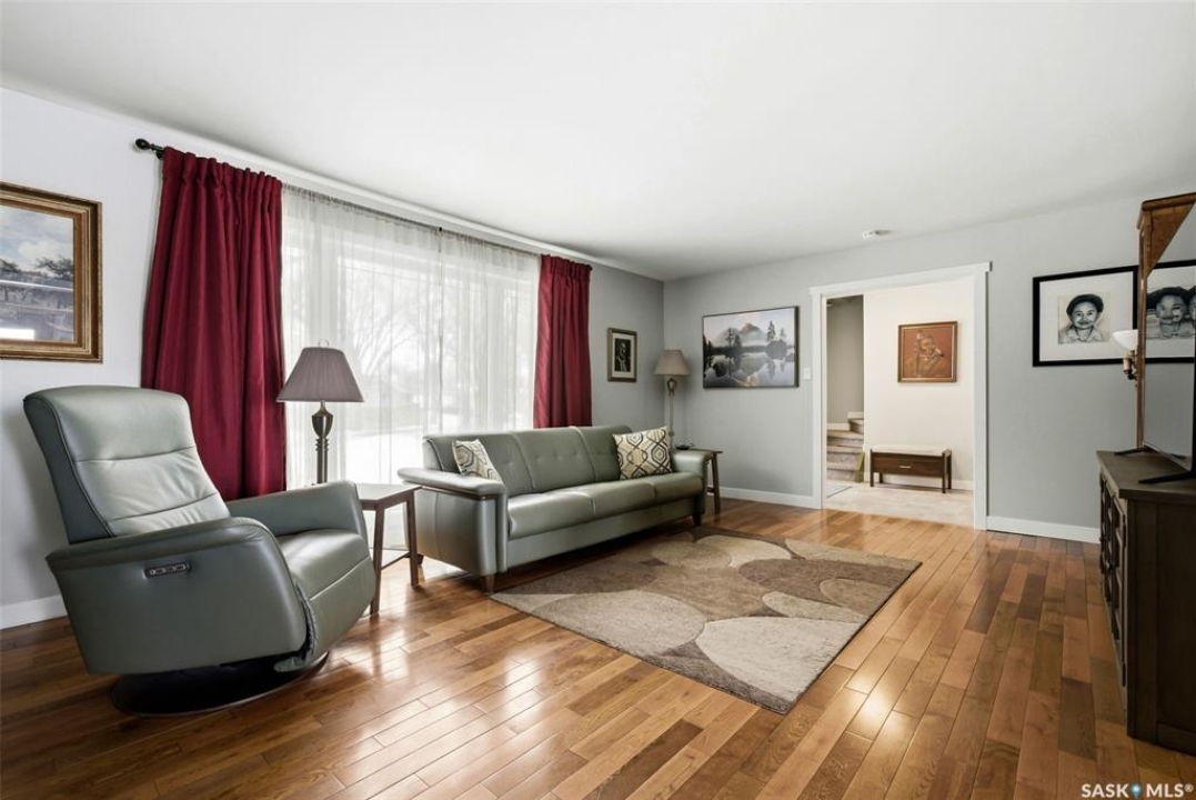 Welcome to this spacious 2-storey home located in Whitmore Park, offering over 1,500 sq ft of above-grade living space and a functional layout perfect for families. The main floor features a bright living room with beautiful hardwood flooring, large windows, and plenty of natural light. The adjoining dining area provides a great space for family meals and includes patio doors leading to the backyard. The kitchen offers ample cabinet and counter space along with a large window overlooking the yard. A convenient main floor laundry and bathroom combination adds practicality to the main level. Upstairs you'll find four well-sized bedrooms and a 5-piece bathroom, making this home ideal for growing families. The finished basement includes a recreation room, an additional bedroom, and a 3-piece bathroom, providing extra space for guests, hobbies, or a home office. The home sits on a large 12,793 sq ft lot with mature trees and garden space, perfect for outdoor enjoyment. The property also offers a fully insulated attached double garage, concrete driveway, and parking for multiple vehicles. Conveniently located close to schools, parks, and south Regina amenities, this home offers excellent space, comfort, and location. List of updates available.