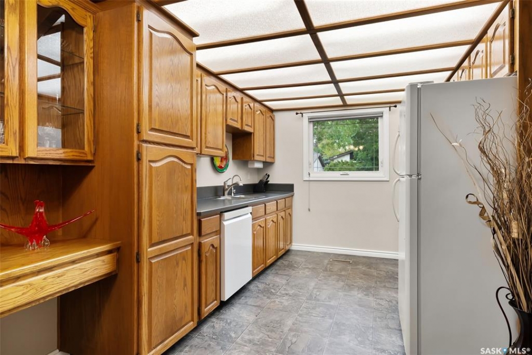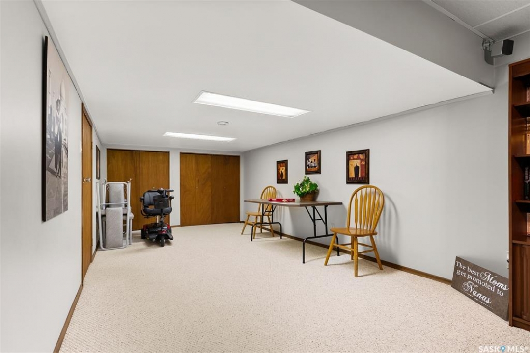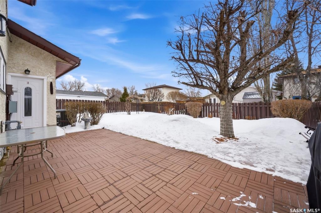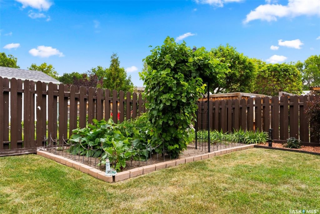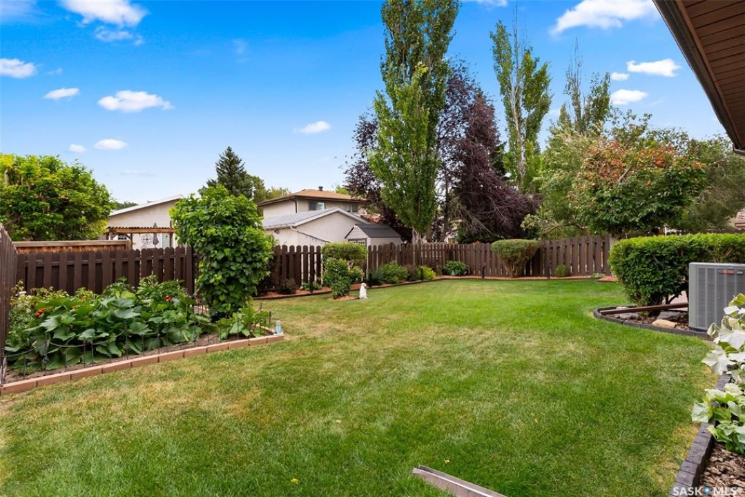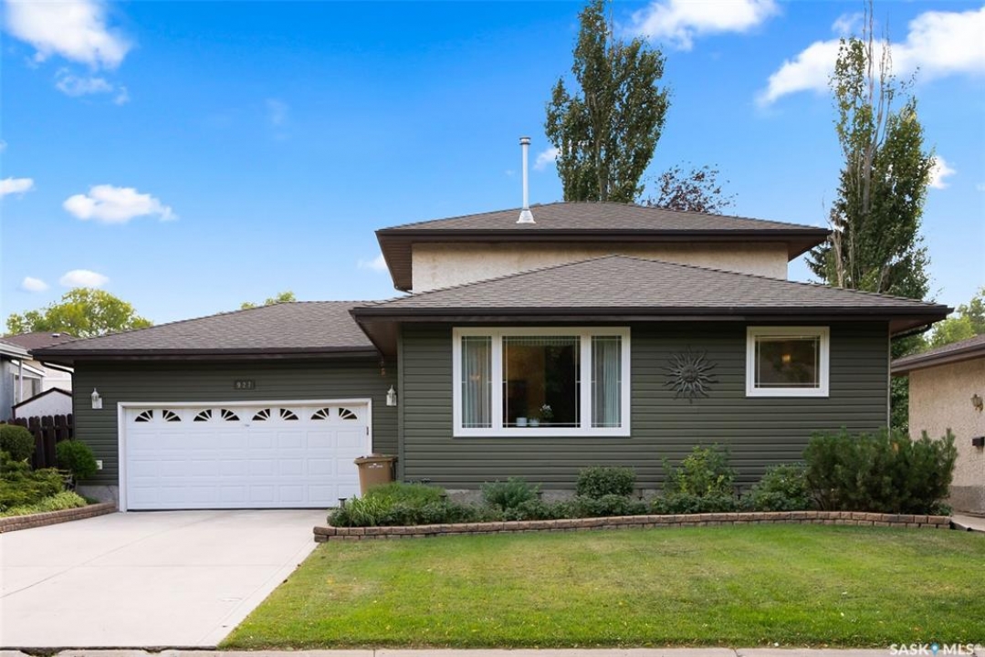 Welcome to 927 Cole Street N, located in the desirable McCarthy Park neighbourhood in Regina's northwest. This well maintained 1,440 sq. ft. two storey split home offers 3 bedrooms and 2 bathrooms and sits on a 6,050 sq. ft. lot with a beautifully established yard. The main floor features a bright living room, perfect sized kitchen, designated family dining area, and a cozy family room with French doors leading to the backyard. The main floor also has the first of three bedrooms, a convenient 2 piece bathroom, and direct access to the double attached insulated garage. Heading upstairs you'll find the spacious primary bedroom with double closets, an additional bedroom, and a 4 piece main bathroom. The lower level offers a great sized family room, wet bar area, den, laundry, and plenty of storage in the utility room. Outside, enjoy the fully fenced yard with mature trees, shrubs, patio, garden space, shed, and underground sprinklers in both the front and back. The home also features newer shingles, vinyl siding, and PVC windows, along with a beautifully landscaped front yard filled with established perennials.