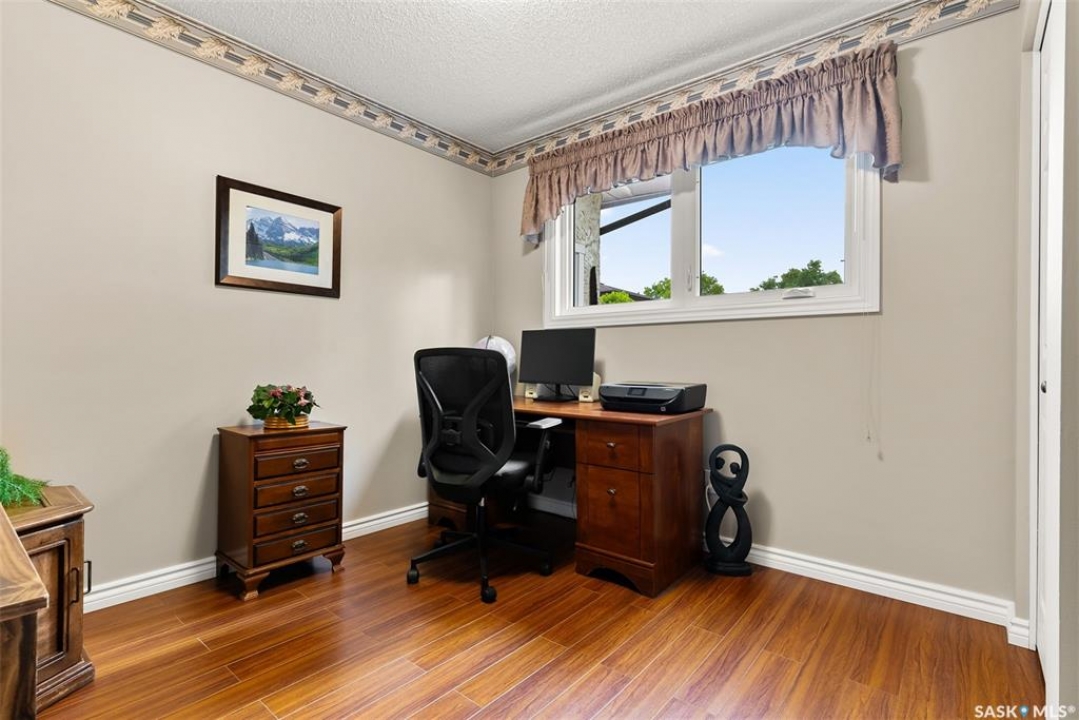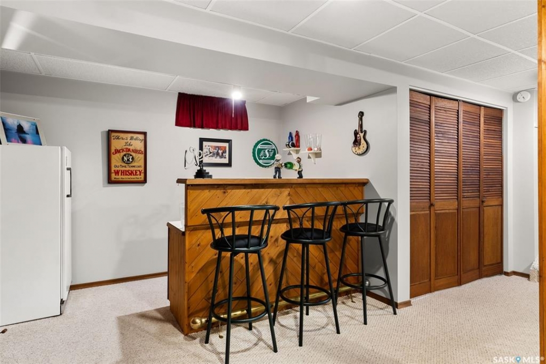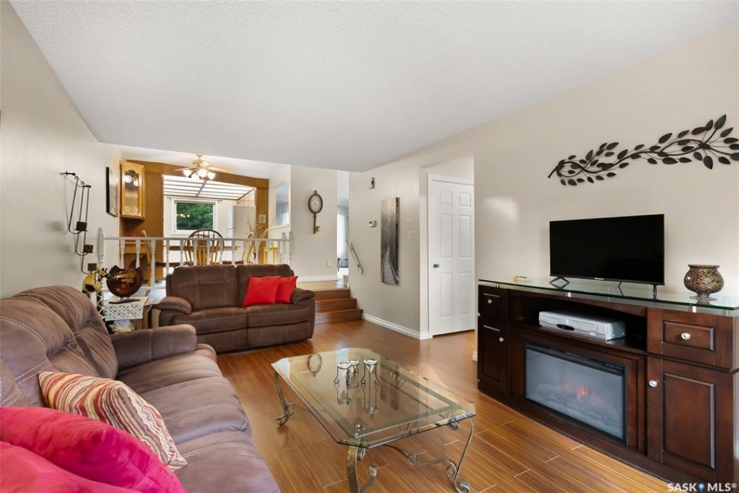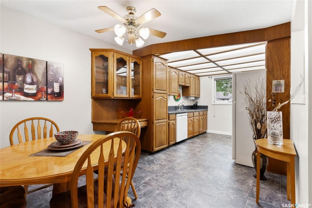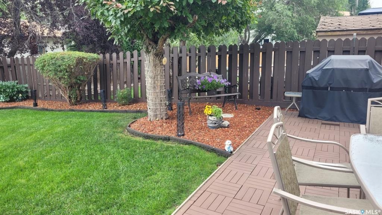 Welcome to 927 Cole Street N, located in the desirable McCarthy Park neighbourhood in Regina's northwest. This well maintained 1,440 sq. ft. two storey split home offers 3 bedrooms and 2 bathrooms and sits on a 6,050 sq. ft. lot with a beautifully established yard. The main floor features a bright living room, perfect sized kitchen, designated family dining area, and a cozy family room with French doors leading to the backyard. The main floor also has the first of three bedrooms, a convenient 2 piece bathroom, and direct access to the double attached insulated garage. Heading upstairs you'll find the spacious primary bedroom with double closets, an additional bedroom, and a 4 piece main bathroom. The lower level offers a great sized family room, wet bar area, den, laundry, and plenty of storage in the utility room. Outside, enjoy the fully fenced yard with mature trees, shrubs, patio, garden space, shed, and underground sprinklers in both the front and back. The home also features newer shingles, vinyl siding, and PVC windows, along with a beautifully landscaped front yard filled with established perennials.