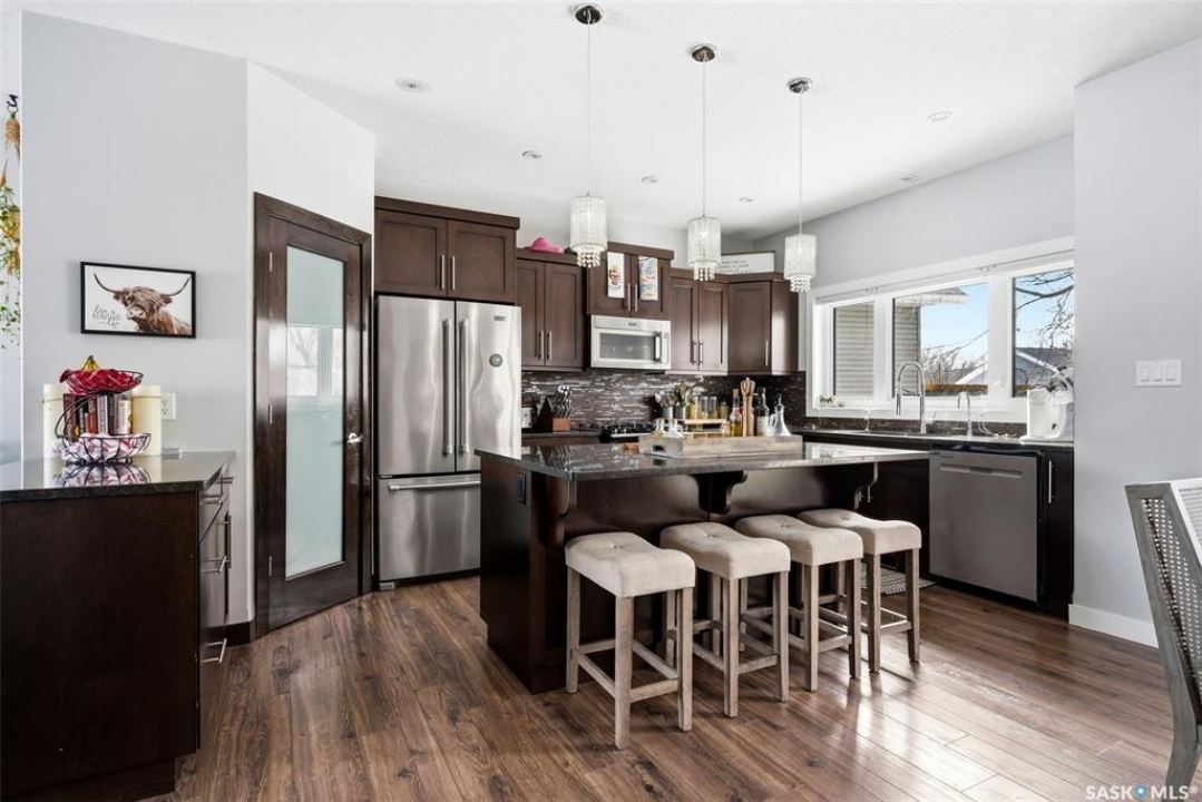 Stunning 2-storey lakefront home in the desirable Maples area of Katepwa Lake offering 4 bedrooms, 3 bathrooms and 2,524 sq ft of living space on a beautifully landscaped lot with 86 feet of waterfront. The main floor features a bright open-concept layout with 9 ft ceilings, oversized windows, a spacious foyer, upgraded lighting, a 2-piece bath, and a bedroom with lake views. The kitchen includes stainless steel appliances, wood cabinetry, pantry, granite countertops, glass-tiled backsplash, and a large sit-up island open to the dining area. The living room offers stunning lake views and a cozy fireplace. Upstairs you'll find a large recreation room with balcony access, two additional bedrooms, a 4-piece bath, convenient second-floor laundry, and a spacious primary suite with walk-in closet and 3-piece ensuite. Enjoy outdoor living on the huge covered deck overlooking the park-like yard and lake. Built in 2015, the home features Trex and DuraDeck decking, Regal railings, built-in sound system, on-demand hot water, underground sprinklers, and a fully landscaped yard. The property also includes an insulated double detached garage with plenty of additional parking. 2023 upgrades include a state-of-the-art stereo system, asphalt driveway, garage heater, fencing, Orbit irrigation system, reverse osmosis water system, water softener, and front deck extension. Located just steps from Breeze Park with playground, pickleball, tennis and basketball courts, ball diamond and sand volleyball. Minutes from Katepwa Provincial Park, golf course, trails, store, gas and dining, and only 15 minutes to Indian Head with K–12 schools, hospital, grocery, restaurants and shopping. Lot dimensions as per ISC. Contact the listing agent to schedule your private showing.