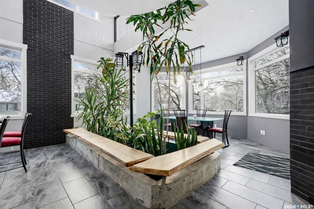 Welcome to an extraordinary architectural statement in the heart of Lakeview. This one of a kind home is a private sanctuary surrounded by mature trees and natural beauty rarely found in the city. Thoughtfully designed to bring the outdoors in, the home offers a sense of calm, space, privacy, and quiet luxury from the moment you arrive. Inside, a dramatic custom curved staircase rises through the centre of the home, creating a striking visual connection between levels. At its heart lies a breathtaking indoor garden sanctuary flooded with sunlight and visible from multiple living spaces, offering a daily connection to nature in every season. Expansive windows frame the surrounding greenery, filling the home with warmth and natural light. The chef's kitchen is both refined and functional, featuring custom cabinetry, quartz countertops, stainless steel appliances, and a concealed walk-in pantry. Designed for effortless entertaining, the main living areas flow seamlessly into a screened sunroom overlooking the serene backyard. The upper level is a retreat of its own, offering a theatre room overlooking the indoor garden, an office loft, bonus room, an additional bedroom and bathroom, laundry room, and an exceptional primary suite. The primary retreat features abundant natural sunlight, a sitting area, built-in closet, and a spa-inspired ensuite with a custom steam shower and standalone tub. The lower level provides three independent living areas, offering flexibility for multi-generational living or income opportunities. An oversized heated double garage with epoxy flooring and floor drain adds everyday convenience, while a backup generator ensures uninterrupted comfort year round. Outside, the south facing yard unfolds as a secluded urban oasis with a central courtyard, tiered landscaping, retaining walls, and mature greenery creating total privacy. Built on an extensive pile foundation, this home is a rare blend of architectural distinction and lifestyle value.