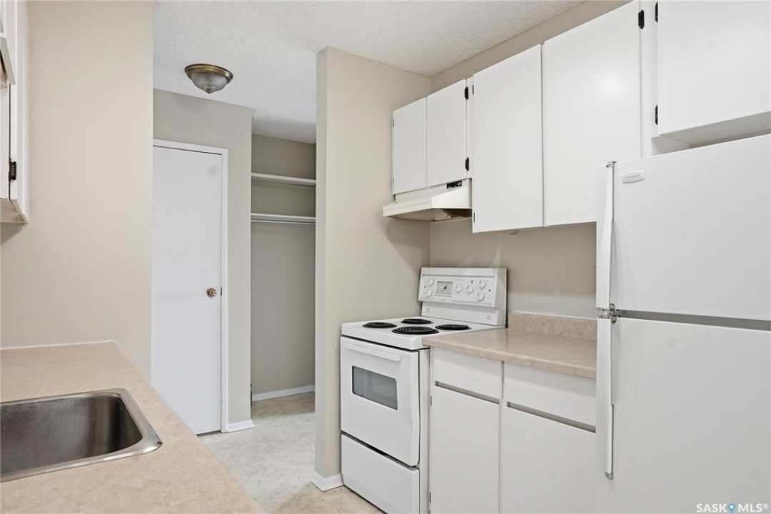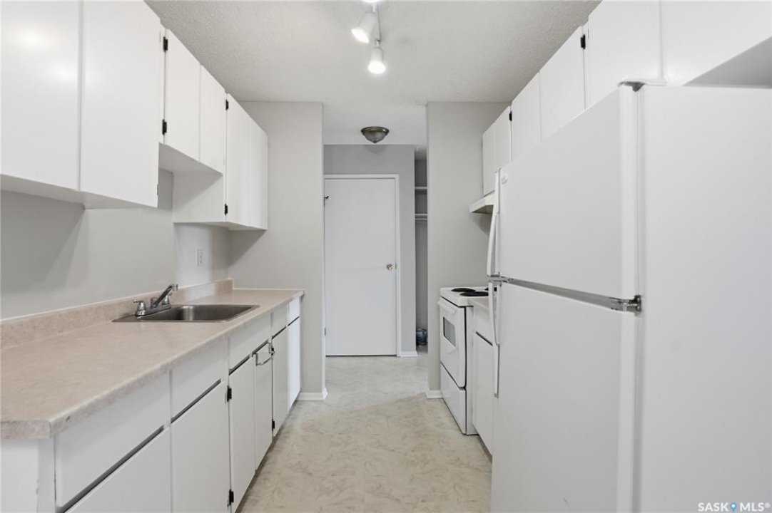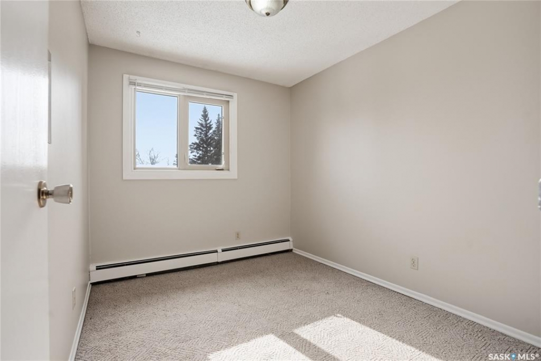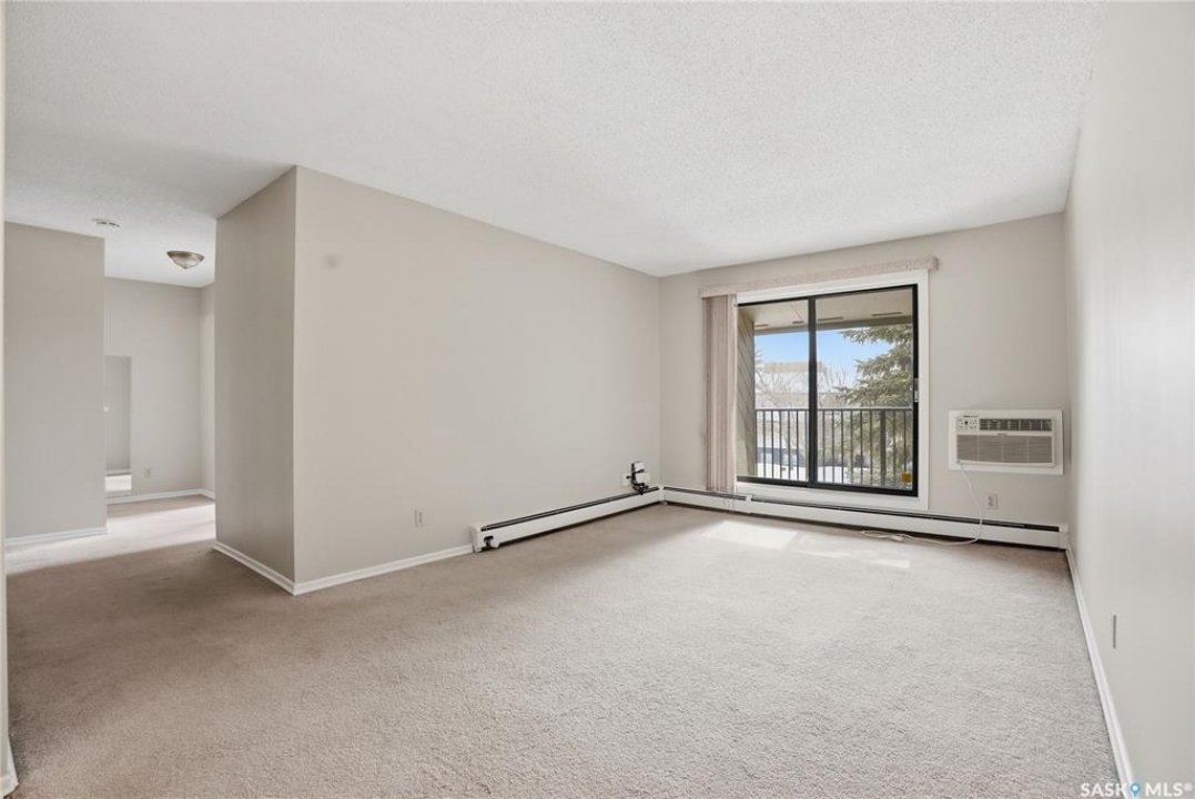 This is a bright & well-kept 2-bedroom, 1 bath, a large storage room, a white galley kitchen with a dinette area. The Open living room is filled with sunshine, patio doors to a south-facing balcony with a beautiful spruce tree for privacy. Wall-mounted AC to keep your area cool. Located in East College, a desirable area close to shopping & U of S, with an excellent bus route. Make your appointment today.