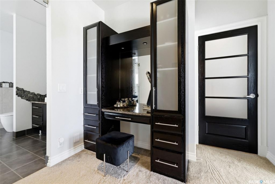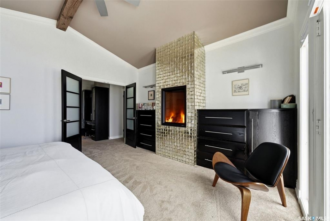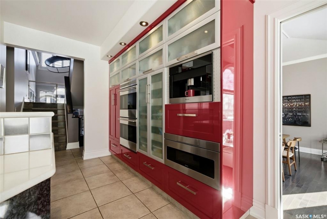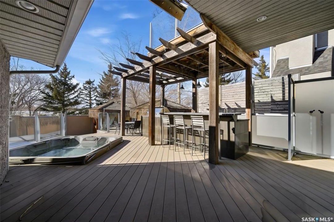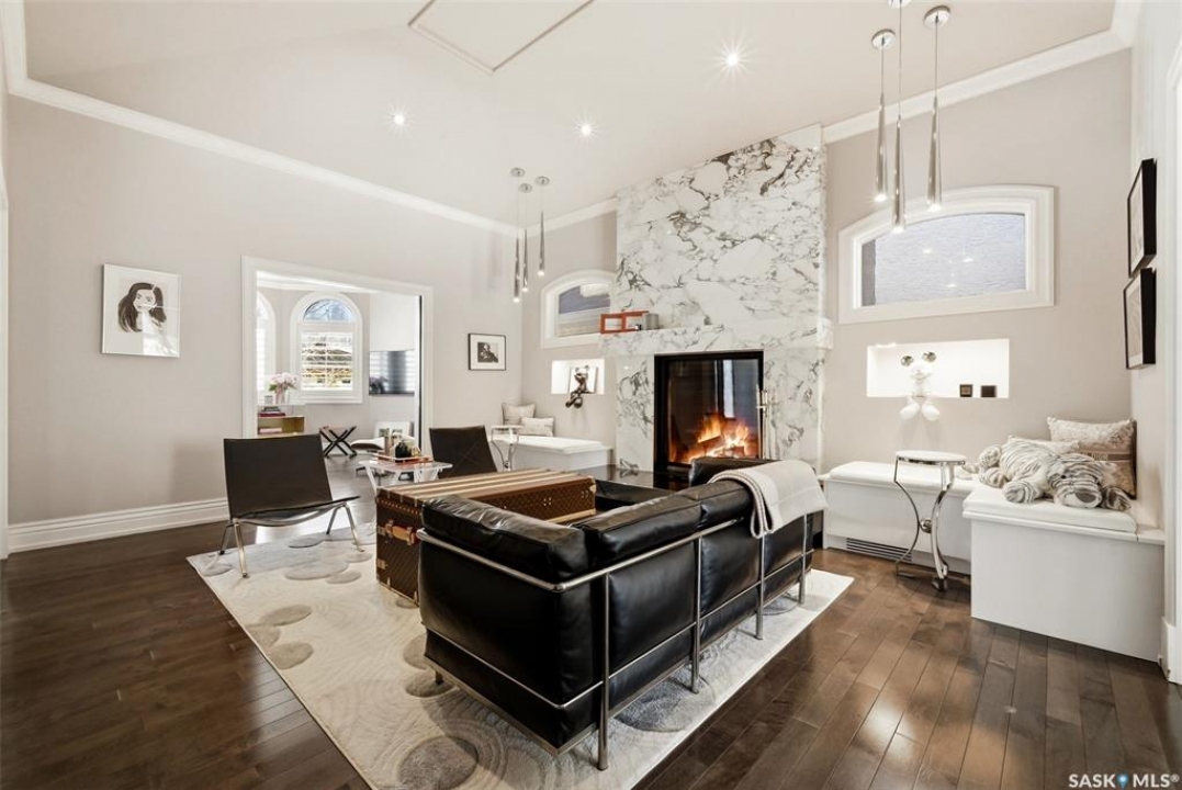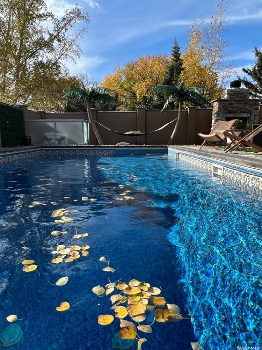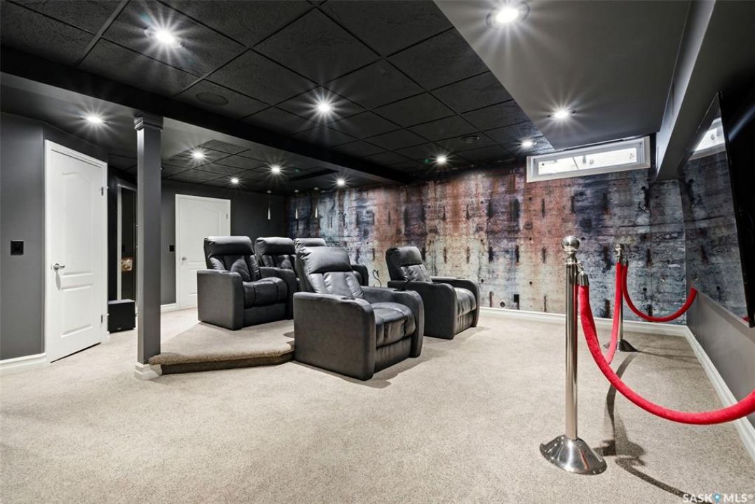 This extraordinary executive residence, masterfully crafted by Sunwest Homes, offers 3,487 sq. ft. of refined living with breathtaking unobstructed views. A striking Tyndall stone façade welcomes you into a grand foyer and elegant living room anchored by a Renaissance Rumford wood-burning fireplace adorned with exquisite Italian marble from Florence. The main level features a sophisticated private office with wet-bar rough-in, a formal dining room highlighted by a dramatic 12-foot reverse tapered ceiling overlooking the resort-style backyard, and a spectacular custom kitchen by Pilandri Bros. showcasing bold Ferrari-red cabinetry and premium appliances including Sub-Zero refrigeration, dual Wolf built-in ovens, a Fisher & Paykel gas range, dual dishwashers, and a built-in Miele espresso system. The inviting family room with gas fireplace opens through impressive Nano doors to a private outdoor sanctuary complete with a fully equipped kitchen, tiki bar, gas BBQ, hot tub, outdoor fireplace, and a sparkling salt-water in-ground pool (approx. 16×32) has waterfall features and with potential to reinstall elegant laminar jets, heated by natural gas. Additional conveniences include main floor laundry, a practical boot room, and direct access to a heated 24×23 garage with a dog wash station. The 2 floor has 4-bedrooms including a luxurious primary retreat with a private deck overlooking the manicured yard, park, and environmental reserve, along with a spa-inspired ensuite featuring a deep soaker tub, steam shower, and recently replaced Grohe toilet and faucets.The fully finished lower level enhances the home with a private theatre room, expansive craft studio, fifth bedroom, full bath, fitness room with ballet bar, relaxing infrared sauna, and ample storage. Completing this remarkable residence is a whole-home audio/visual system and a reliable standby generator by Cummins—an exceptional and rare offering designed for luxurious living and unforgettable entertaining.