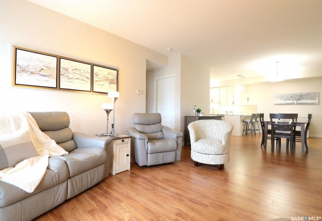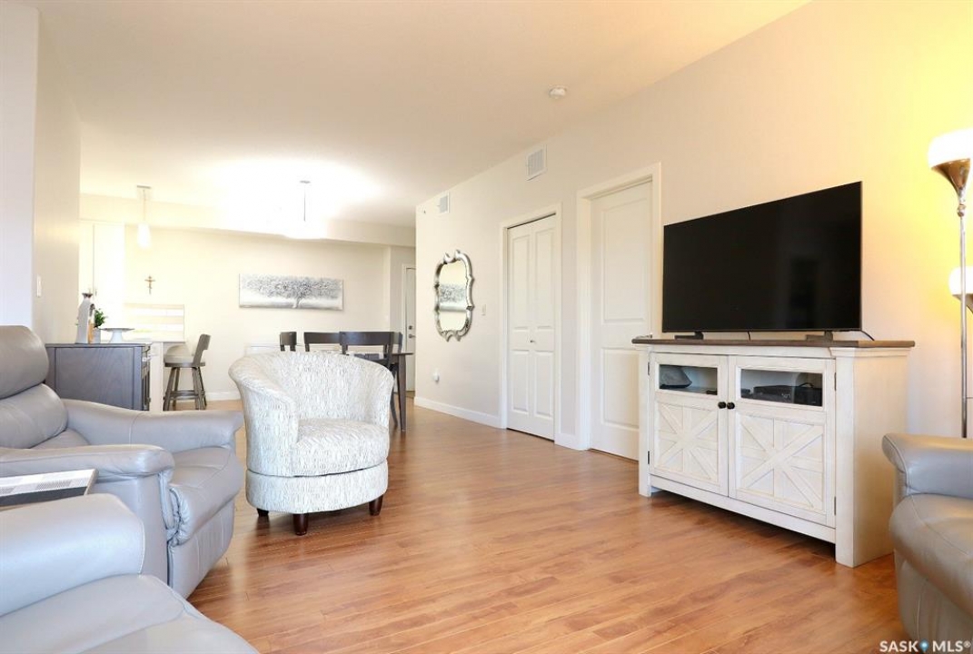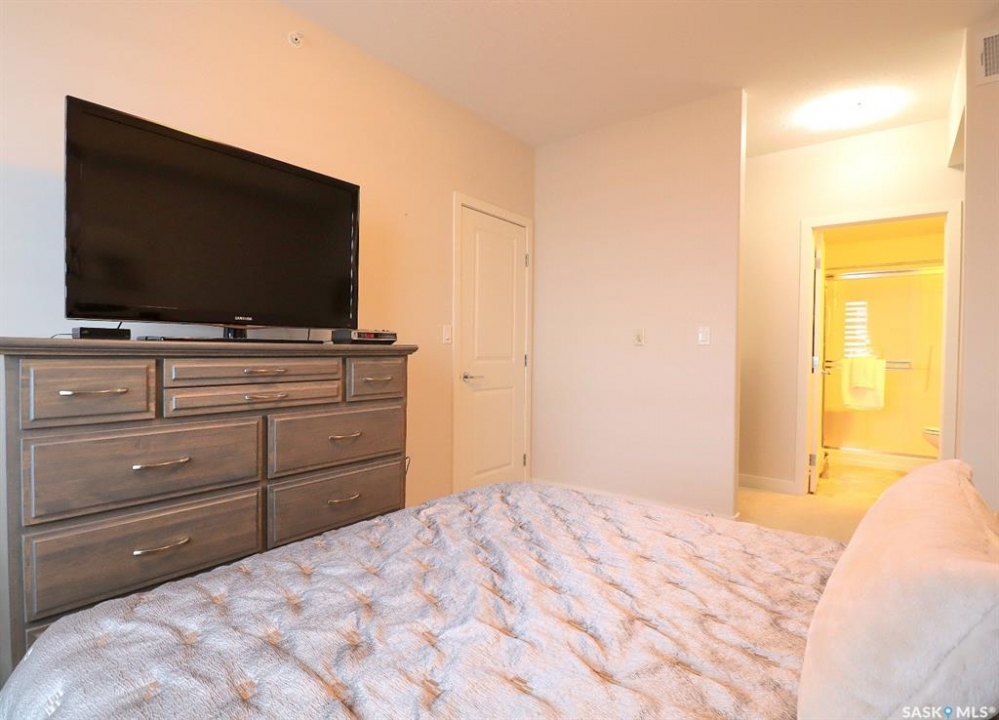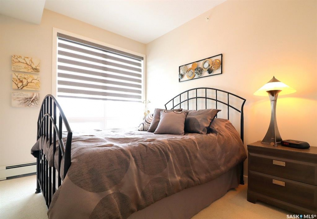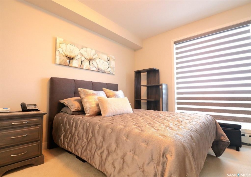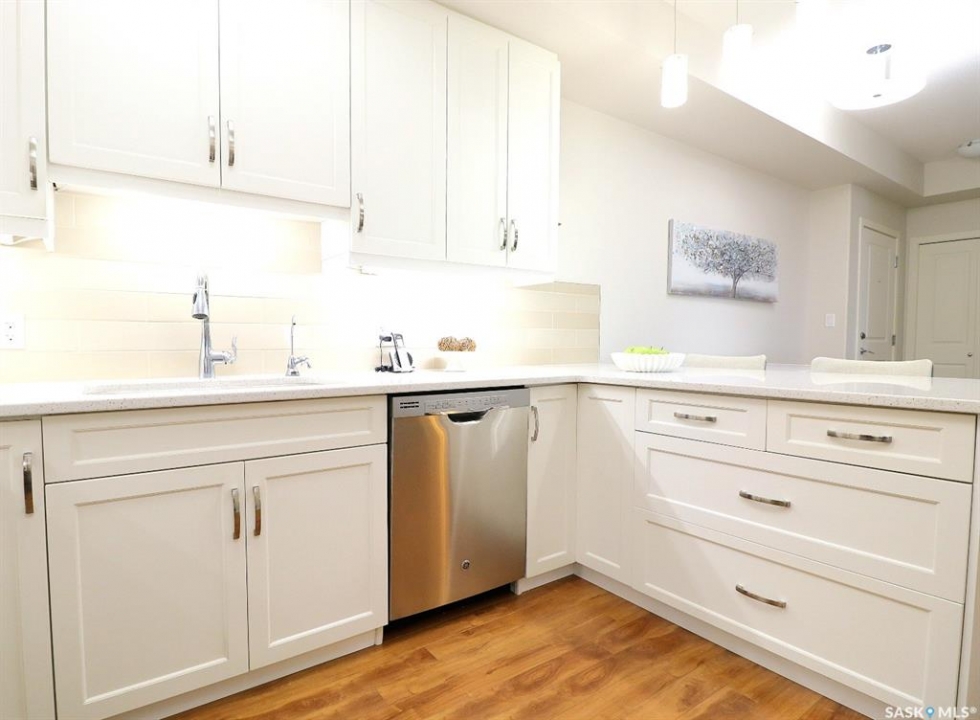 Welcome to refined, low-maintenance living in one of Yorkton's most desirable and modern condominium developments. Built in 2015 and ideally located in the city's newest residential area, this beautifully maintained 987 sq. ft. residence offers 2 bedrooms and 2 full bathrooms, thoughtfully designed for both comfort and style. Inside, the home features an inviting open-concept layout enhanced by elegant white cabinetry, designer window treatments, and bright, contemporary finishes that create a space that feels both modern and timeless. The kitchen offers excellent functionality with a built-in dishwasher and generous workspace, making everyday living and entertaining effortless. Step outside and enjoy the convenience of a natural gas BBQ connection on the balcony, eliminating the need for propane tanks and making outdoor cooking simple and enjoyable. An additional stand-alone freezer provides extra storage flexibility, while the reverse osmosis (RO) water system adds another layer of comfort and quality to the home. Residents of this well-appointed building enjoy a range of desirable amenities, including an elevator, fitness area, and welcoming amenity room—perfect for gatherings and social events. The building is also wheelchair accessible, offering ease and accessibility for all lifestyles. One of the standout features is the underground-style parking (above ground but fully enclosed), providing a protected space for your vehicle—a welcome luxury during Yorkton's long, cold winters. Condo fees offer exceptional value and peace of mind, covering common area maintenance, exterior building upkeep, garbage service, heat, common insurance, lawn care, reserve fund contributions, sewer, snow removal, and water. Whether you are looking to downsize in style, simplify your lifestyle, or invest in a quality property, this elegant condominium offers comfort, convenience, and modern living in an exceptional location!