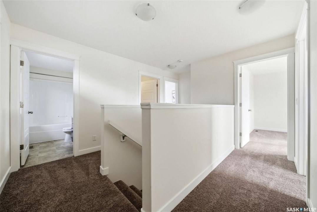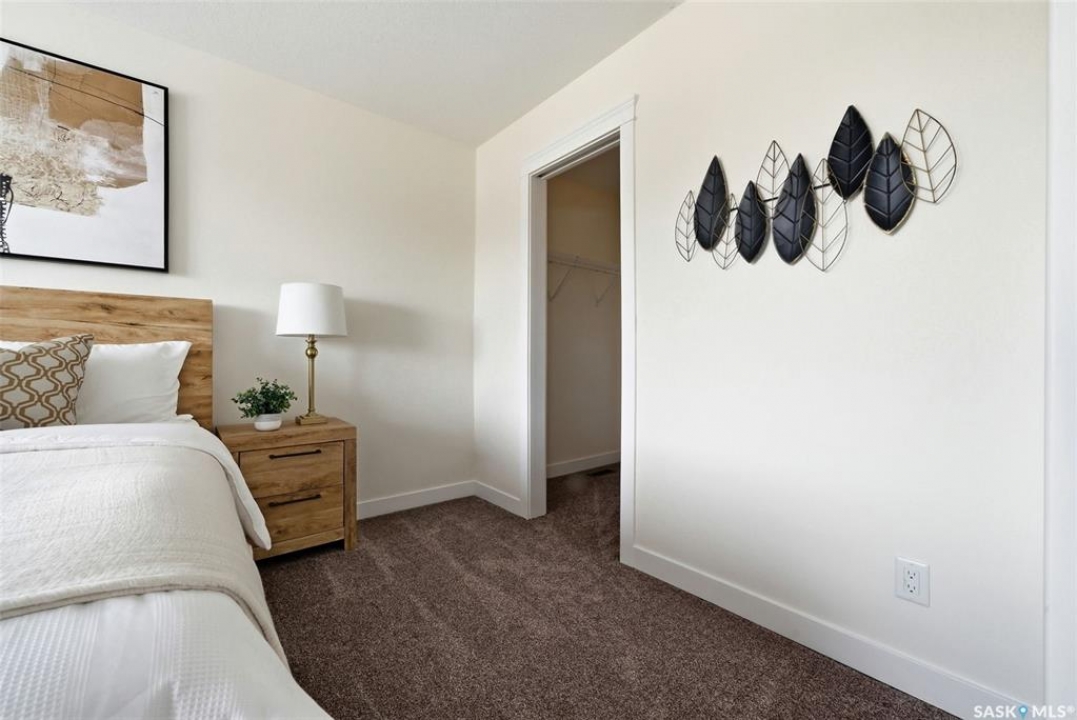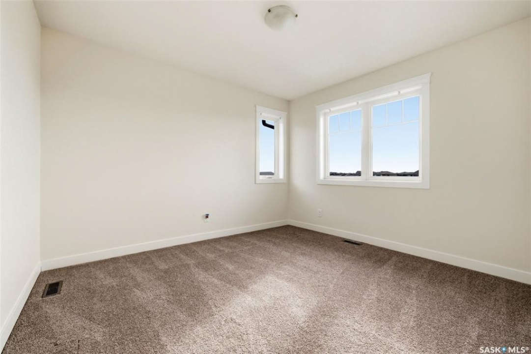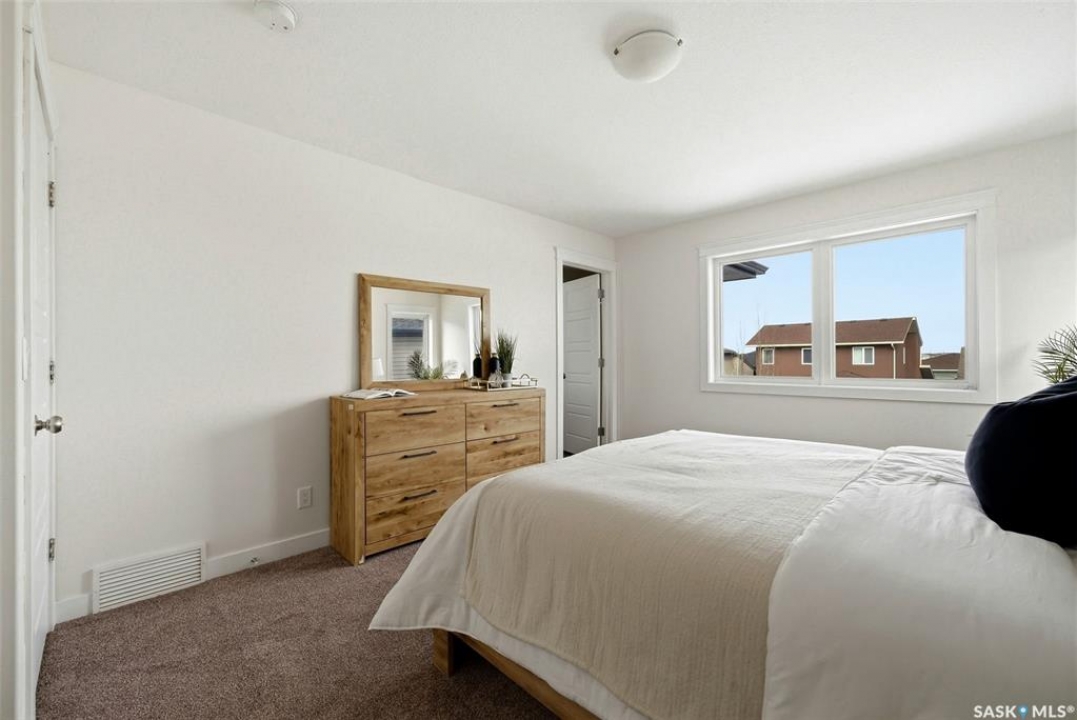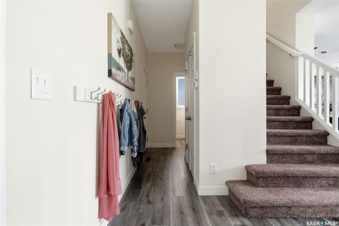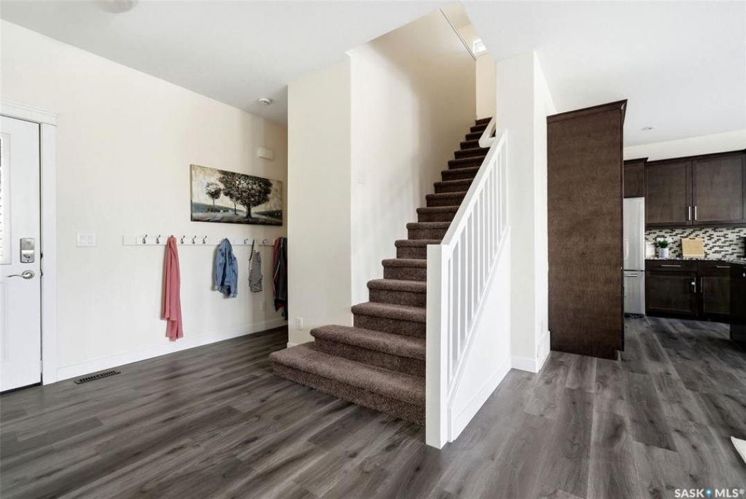 Welcome to 4830 Green Apple Drive, located in the heart of the desirable Greens on Gardiner neighbourhood. This custom-built two-storey offers over 1,730 sq. ft. of well-designed living space, featuring 4 bedrooms and 4 bathrooms, plus a fully developed basement with separate side entrance. Open-concept main floor features 9-foot ceilings and newer vinyl plank flooring throughout, creating a bright and modern living space. A convenient mudroom area leads to the double attached garage, adding functionality for everyday living. The spacious living room is filled with natural light thanks to large windows overlooking the backyard. The kitchen is beautifully finished with espresso-toned maple cabinetry, a built-in pantry, granite countertops, tile backsplash, soft-close drawers, and a large island perfect for meal prep or casual dining. The adjoining dining area provides plenty of space for family gatherings and features a garden door leading to the back deck with gas BBQ hookup. The deck overlooks the fully fenced backyard with lawn, offering great space for outdoor enjoyment. A two-piece powder room is conveniently located near the front closet and garage entrance. Upstairs, the second level offers three good-sized bedrooms, including a spacious primary suite featuring a large walk-in closet and a five-piece ensuite with jetted tub, double vanity with granite countertops, and separate shower. The second level also includes a full four-piece main bathroom and convenient second-floor laundry. New carpet throughout the second level adds a fresh feel. Fully developed basement, with separate side entrance, features a large recreation room with wet bar area, an additional spacious bedroom, and a four-piece bathroom with granite vanity, offering great extra living space. This home is ideally located within walking distance to École Wascana Plains School and École St. Elizabeth, as well as parks, walking paths, and all east-end amenities.