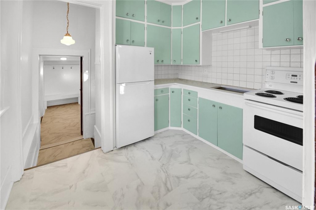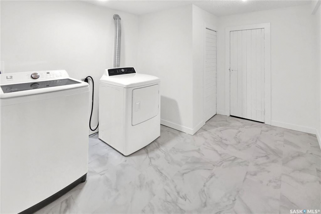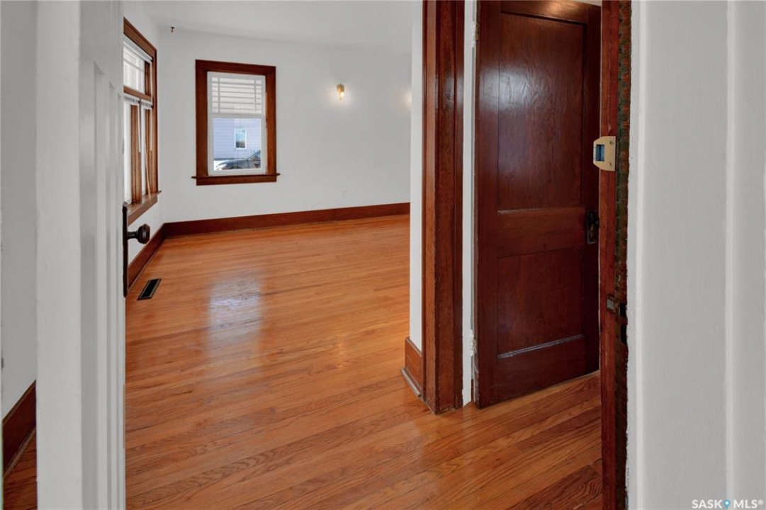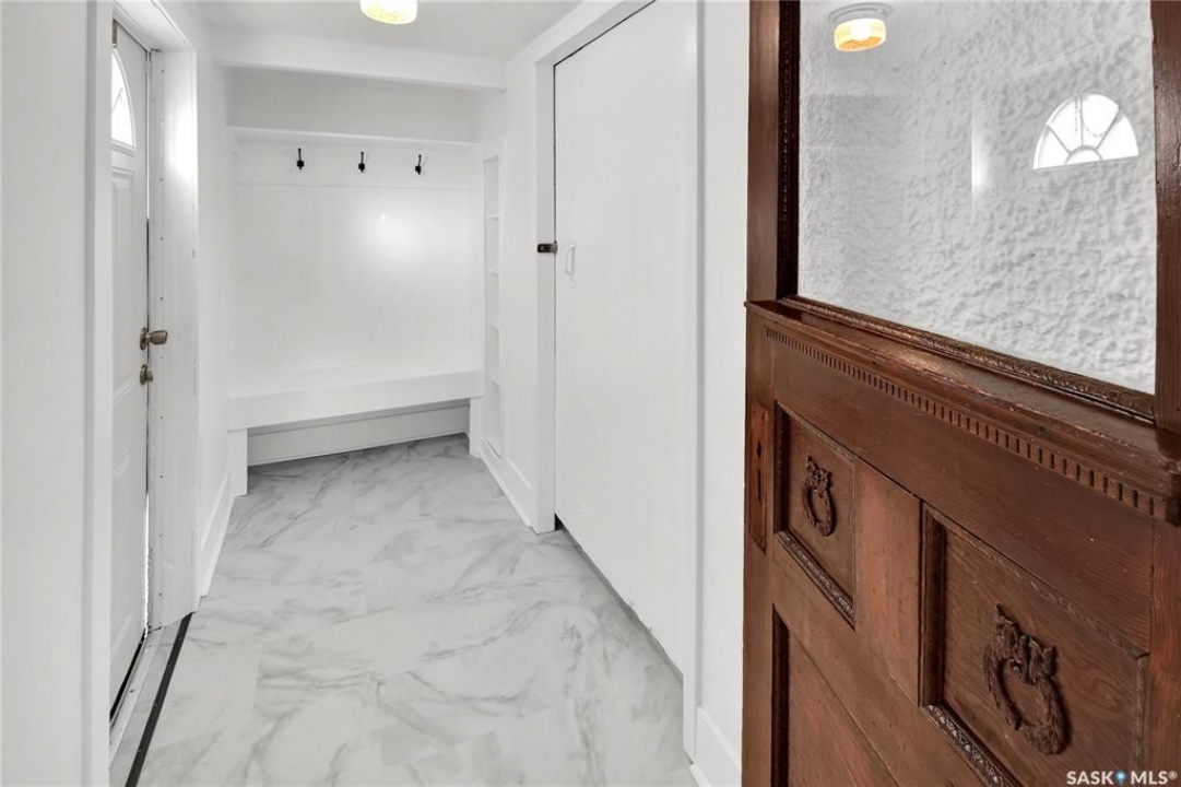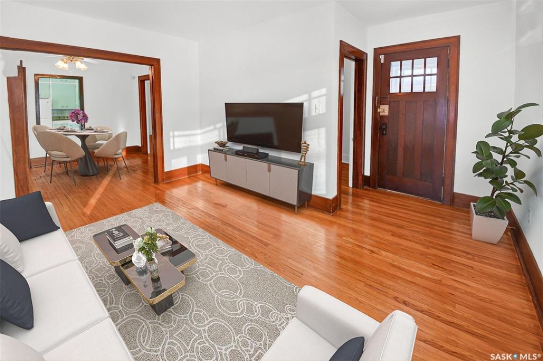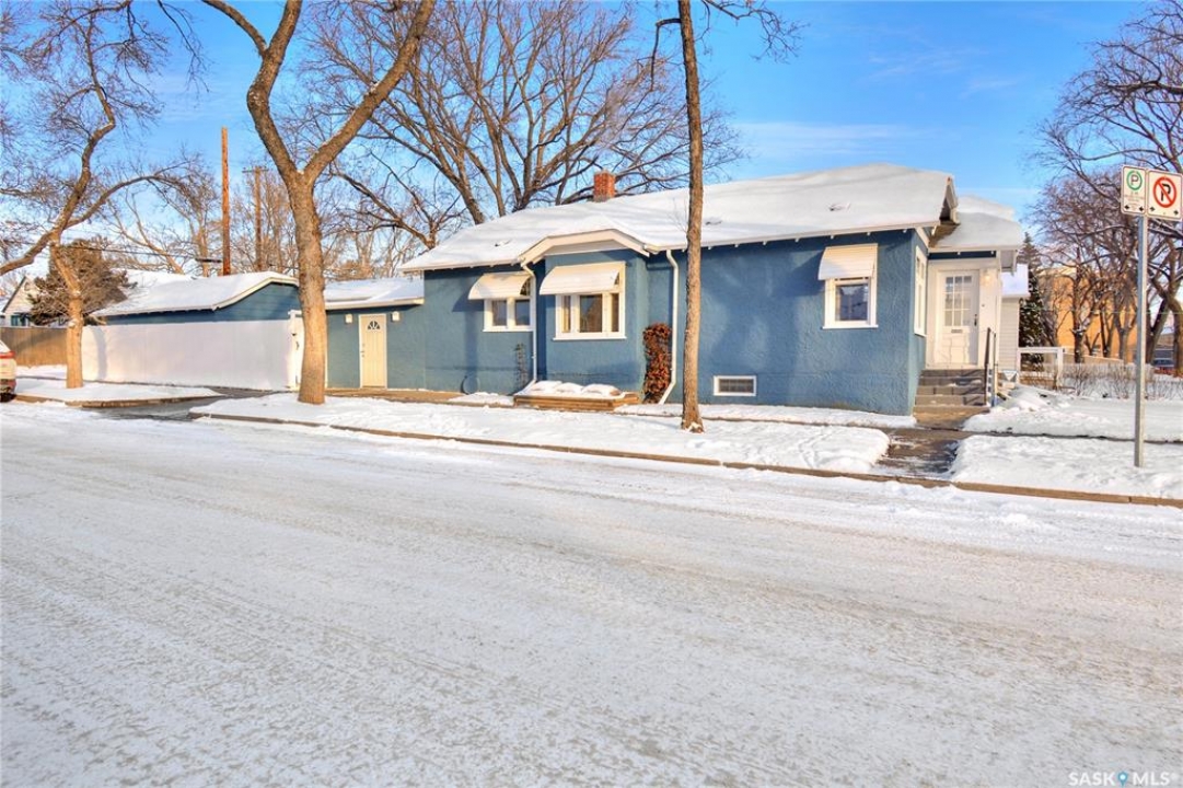 Welcome to this bright & charming character home in Caswell Hill. Ideally located near two elementary schools, a high school, Sask Polytechnic, & Ashworth Holmes Park—featuring a new playground, paddling pool, & lawn bowling—this home is also within walking distance to a grocery store, bakeries, churches, the library, & many local shops. The home welcomes you with a large enclosed front porch. Inside, original hardwood floors run through the front entry, living room, dining room, hallway, & bedrooms. The main floor showcases beautiful original woodwork, with a mix of stained & painted finishes, along with many original light fixtures & doors that highlight the home's character. The living & dining rooms are filled with natural light thanks to large picture windows. The kitchen features freshly painted cabinets, a new quartz countertop, new sink & faucet, a new refrigerator, & updated vinyl flooring. The fully renovated bathroom has been updated from top to bottom. The primary bedroom includes two closets, while the second bedroom features a unique walk-through design that adds charm & flexibility. Through the side entrance, you'll find a mudroom with new vinyl flooring & access to an additional space that could easily be converted into another living area, office, or bedroom. The renovated basement offers a family room, den, bedroom, laundry room with new washer & dryer, & plenty of storage closets. Updates include new paint, flooring, & light fixtures throughout. Additional upgrades include interior & exterior paint, upgraded shingles, some newer windows and window screens, landscaping, a custom brick patio, & a new fence. The large insulated & sheeted single garage provides off-street parking, while the corner lot offers additional parking options. Furnace & vents, & eaves, have all been cleaned for a worry-free possession. All updates have been thoughtfully completed to preserve & complement the character of this beautiful home.