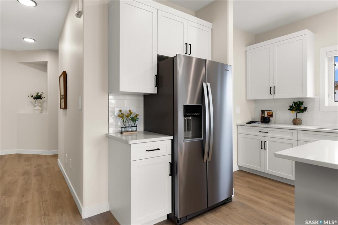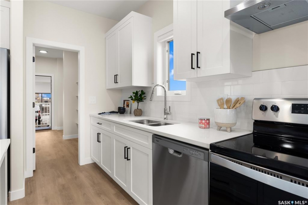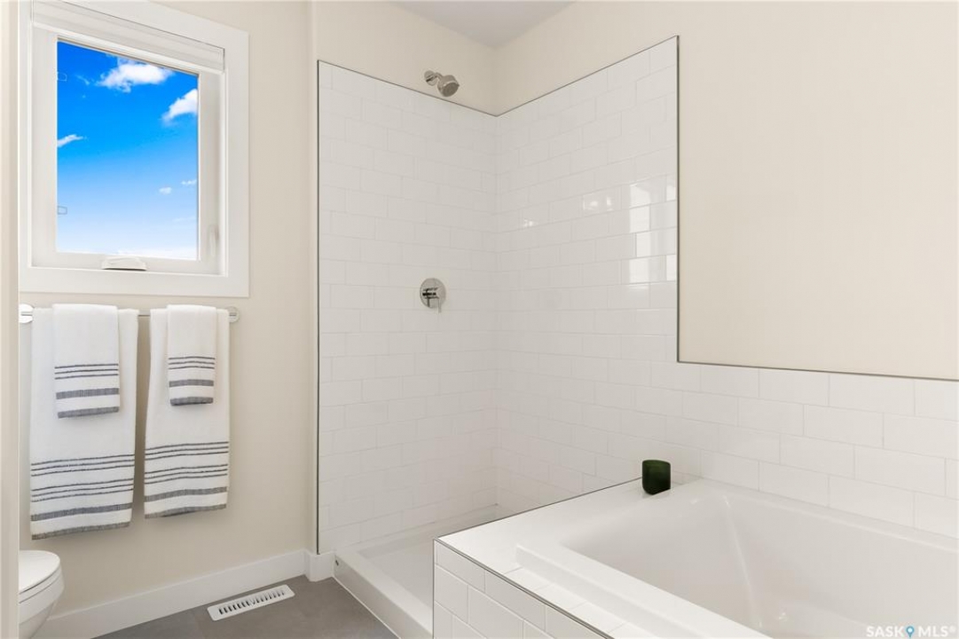 Discover this stunning 2,213 sq ft two-story brand-new build in Pilot Butte. This elegant home features a triple front-attached garage and a separate side entrance, offering both convenience and curb appeal. As you step inside, you're welcomed by an open and spacious floor plan, perfect for modern family living. The front entry welcomes you with a defined foyer and coat storage, leading to a versatile den/bedroom—ideal for a home office, guest room, or main-floor bedroom. The heart of the home features an open-concept kitchen, dining, and living area. The kitchen is centrally located with a large island, ample cabinetry, and a walk-in pantry, providing excellent workspace and storage. It flows seamlessly into the dining area and spacious living room, which is anchored by an electric fireplace. A conveniently located main-floor bathroom includes a tub/shower combo, making it ideal for guests or family use. The mudroom off the entry offers built-in storage and functionality for busy households. Upstairs, the primary bedroom is generously sized and features a walk-in closet and a private ensuite with dual sinks and a walk-in acrylic shower, creating a true retreat. Three additional bedrooms are well proportioned and thoughtfully placed, offering flexibility for family, guests, or home office use. Two bedrooms are located at the front of the home, while another is set toward the rear, providing excellent separation and privacy. A centrally located family room offers a perfect secondary living space for relaxing, homework, or movie nights. The upper-level laundry is conveniently positioned near the bedrooms. A full four-piece bathroom serves the secondary bedrooms, and linen storage is neatly incorporated for added practicality. (PST/GST are included within purchase price). Note: Interior photos are from a previous build of the same model; finishes and colours may vary.