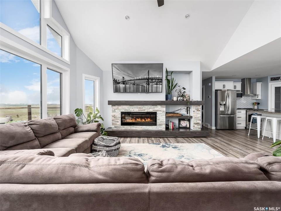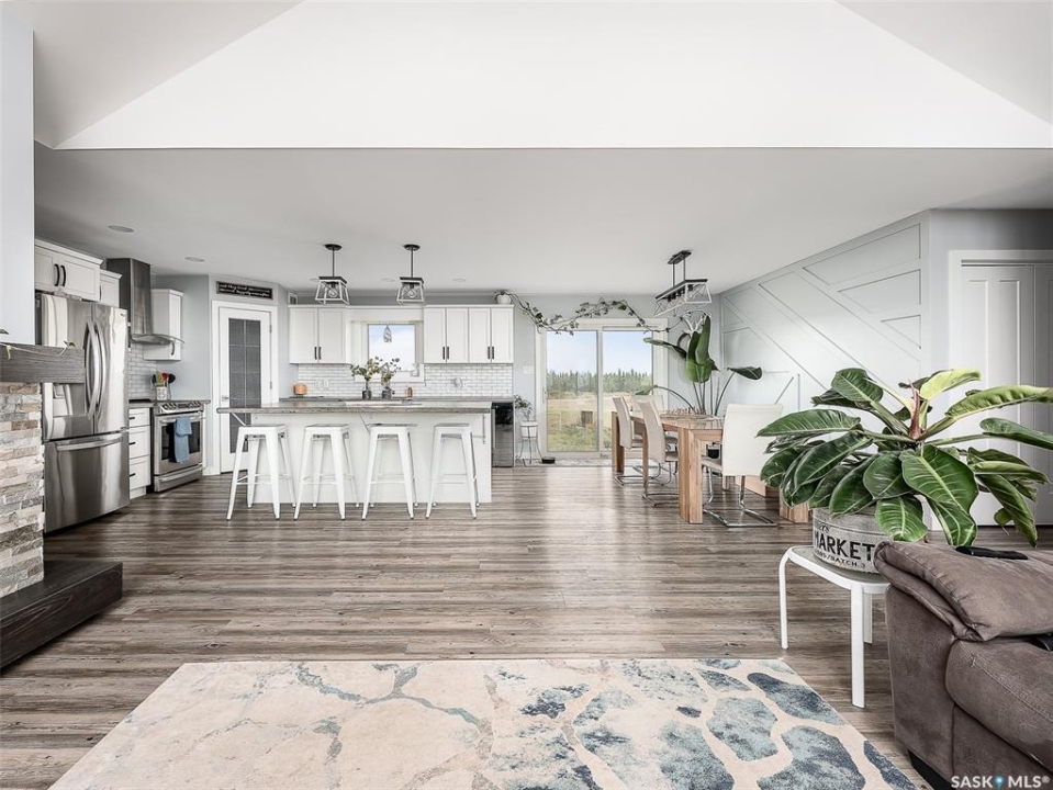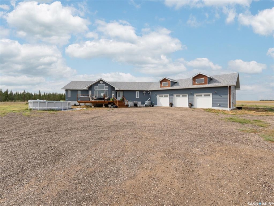 Dreaming of life in the country just minutes from the city?? Stargazing on your deck away from the city lights? Dreams do come true! This 10 acre parcel boasts a 1,600+ square foot home that is built with the best view in mind & the front deck will be your favourite place to soak up the sunrise! Inside, this home feels warm & welcoming with a modern farmhouse vibe! The view from the Living Room is stunning with huge south facing windows taking full advantage or the vaulted ceiling & is set off with a sleek Fireplace flanked by rustic built-ins. The open concept main floor is perfect for gathering with family & friends with the Kitchen boasting custom concrete countertops, deep farmhouse sink, corner pantry, stylish lighting & island with the Dining Room finished with feature wall & patio doors opening on to a new back deck. To one side of the home, you will find 2 spacious Bedrooms & full Bath with the Primary Suite (walk-in closet & 4pc Ensuite) on the opposite side of the house allowing for privacy. MAIN FLOOR LAUNDRY is adjacent to the MASSIVE HEATED GARAGE with soaring ceilings & dormers (future mezzanine??). The lower level is ready for your ideas with r/in plumbing for additional Bath & framing is set to begin to develop a Family Room, Bath & 2 Bedrooms (state of completion will depend on purchase timeline & is negotiable). Start planning your move to the country now & enjoy the peace & tranquility this change of address will bring! Directions: From MJ - Highway 1 East to Weyburn turn off. North on 301 to Twp Rd 172. East approximately 3kms to sign.