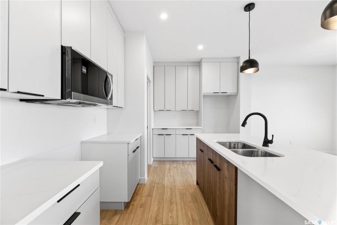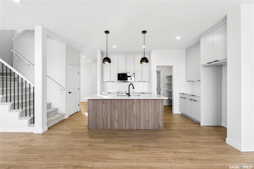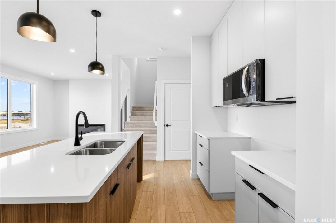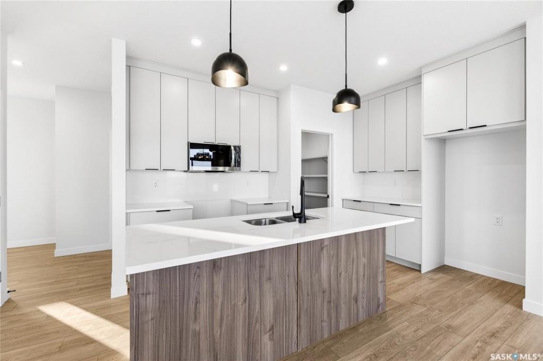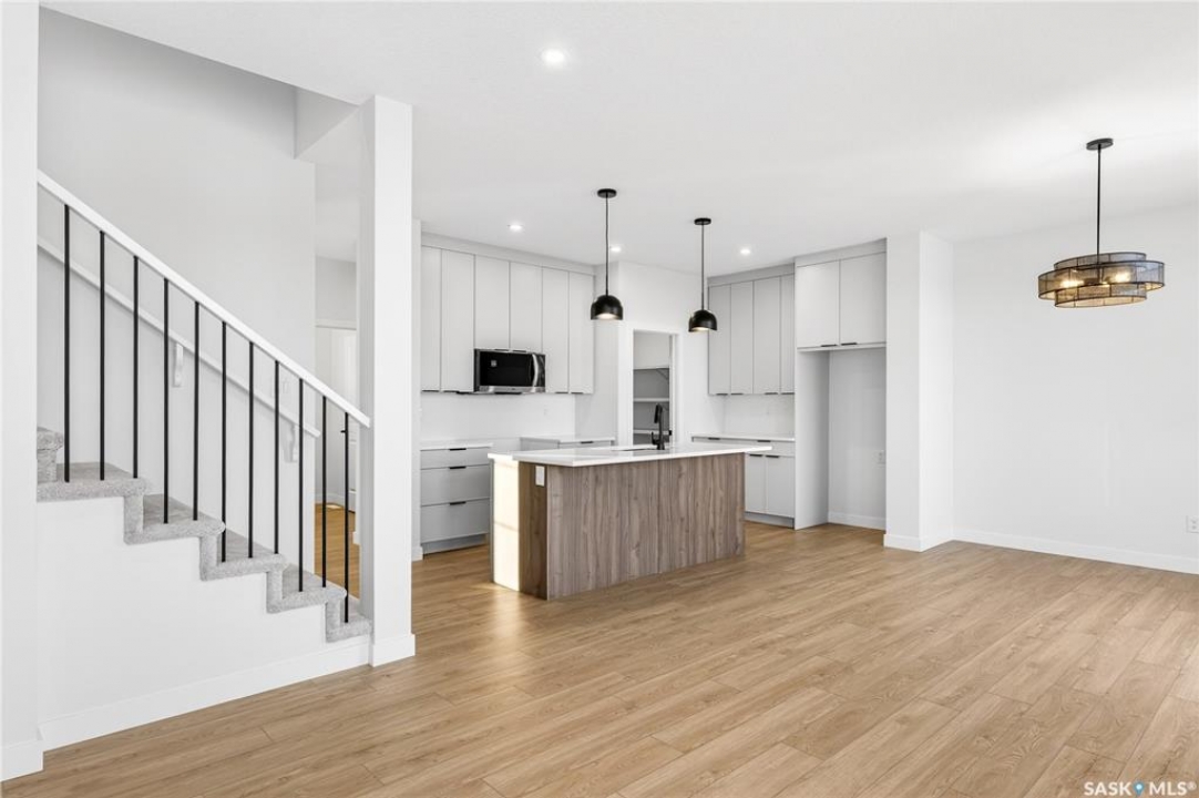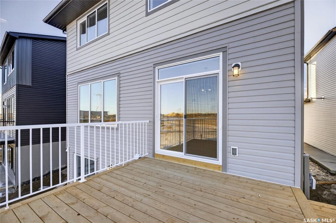 Welcome to the "Richland" model by North Ridge Development Corporation. This 1947 square foot partial walk out 2-Storey home has a main floor consisting of a large kitchen with walk thru pantry and island, a good sized dining and living area, mudroom and 2-pce bath. This floorplan also has a second floor with 3 bedrooms, a bonus room, a 4-piece main bathroom, 4-piece ensuite and laundry. Some unique features, providing a fresh and modern look, include high quality shelving in all closets, quartz countertops, vinyl plank flooring, and an upgraded trim package. This home includes a heat recovery ventilation system, high efficient furnace. As well, an oversized double attached garage, front driveway, front landscaping, and rear deck with aluminum railing. Saskatchewan New Home Warranty. GST/PST included in purchase price with any rebates to builder. Saskatchewan Home Warranty Premium Coverage. *Home is now complete and ready for possession* Call to View!