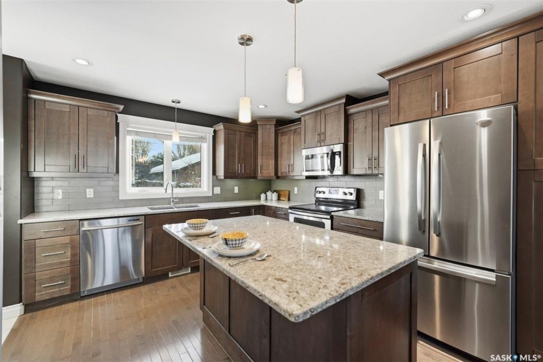 Welcome to 2129 Coy Avenue—located in the sought-after Exhibition neighbourhood, this stylish infill offers the advantages of a newer build while keeping you close to the river, downtown, and major commuter routes. Inside, the open-concept layout is ideal for family living and entertaining. The spacious living room flows seamlessly into the dining area, offering plenty of room for gatherings. The kitchen is beautifully appointed with high-quality cabinetry, quartz countertops, a tile backsplash, and a functional island with seating. Just off the back entry, you'll find a convenient two-piece bathroom and a dedicated laundry room. Upstairs, the generous primary bedroom provides a comfortable retreat, complete with a walk-in closet and a private three-piece ensuite featuring a large tiled shower. Two additional well-sized bedrooms and a four-piece bathroom complete the upper level. The basement is ready for your vision, with a private side entrance that offers excellent potential for a future income suite or home-based business space. Outside, enjoy evening sunsets from the welcoming front porch, or relax and entertain in the backyard with its spacious deck, plenty of green space for gardening or play, and room to build a garage if desired. Don't miss this fantastic opportunity—schedule your personal showing today! Call your Realtor to view.