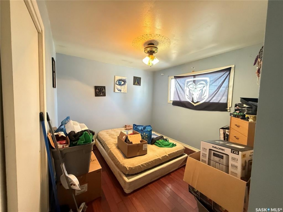 Welcome to this east-end home offering convenient access to shopping, schools, and Ring Road. The main floor features 2 good-sized bedrooms and a full bathroom. The basement includes a spacious rec room and a half bathroom, with potential for further development. With the addition of a wall and door, a third bedroom could easily be created, and there is space to add a full bathroom. Located in a quiet neighbourhood with friendly neighbours, this property presents a great opportunity for investors or buyers looking to build equity. Property is sold as is, where is and requires TLC. Great investment potential!