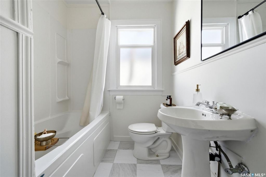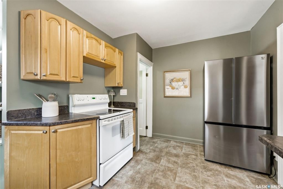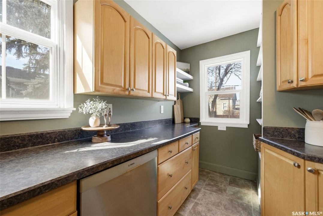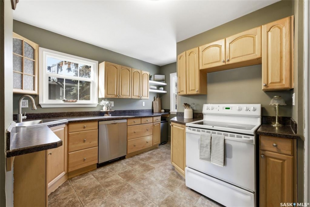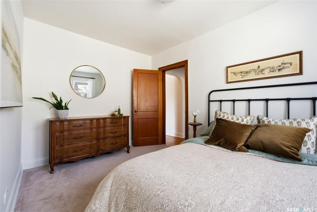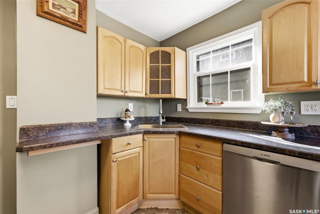 Welcome to this fantastic newly renovated bungalow in the desirable neighbourhood of Arnheim Place. Blending charming character with thoughtful modern updates, this home offers a bright and functional layout. Main floor features a welcoming front foyer that opens into a spacious, sun-filled living room, seamlessly connecting to a generous dining area—perfect for everyday meals or entertaining. Original butler door from the dining room into the kitchen adds a touch of character and charm. Renovated kitchen is well appointed with an abundance of maple cabinetry and ample counter space, and has been recently repainted in a beautiful historic green tone. Kitchen also features a brand new sink and taps (2026), along with newer appliances including a fridge and Bosch dishwasher (2025). 2 generously sized bedrooms, including a primary bedroom with closet organizers and newer carpet, and an additional bedroom featuring original hardwood flooring. Main floor is completed by a beautifully updated 4-piece bathroom featuring a newer soaker tub with surround, pedestal sink, updated toilet, and new vinyl tile flooring (2025). The majority of the main floor was freshly repainted in 2026, giving the home a clean, refreshed feel. Basement has been recently developed and offers a large rec room, an additional bedroom, upgraded flooring, and a newly renovated 3-piece bathroom—providing excellent additional living space. Home is mechanically sound with a high-efficiency furnace (2019), newer sump pump, updated electrical, and a new sewer line from the house to the street. Additional updates include newer shingles (2024), eavestroughs, and the majority of windows have been replaced. Situated on a massive, fully fenced lot with a rear deck and convenient alley access, there is plenty of room for a future garage. Ideally located close to Wascana Park, schools, shopping, restaurants, and all east-end amenities. All appliances are included. Quick possession available. Call today!