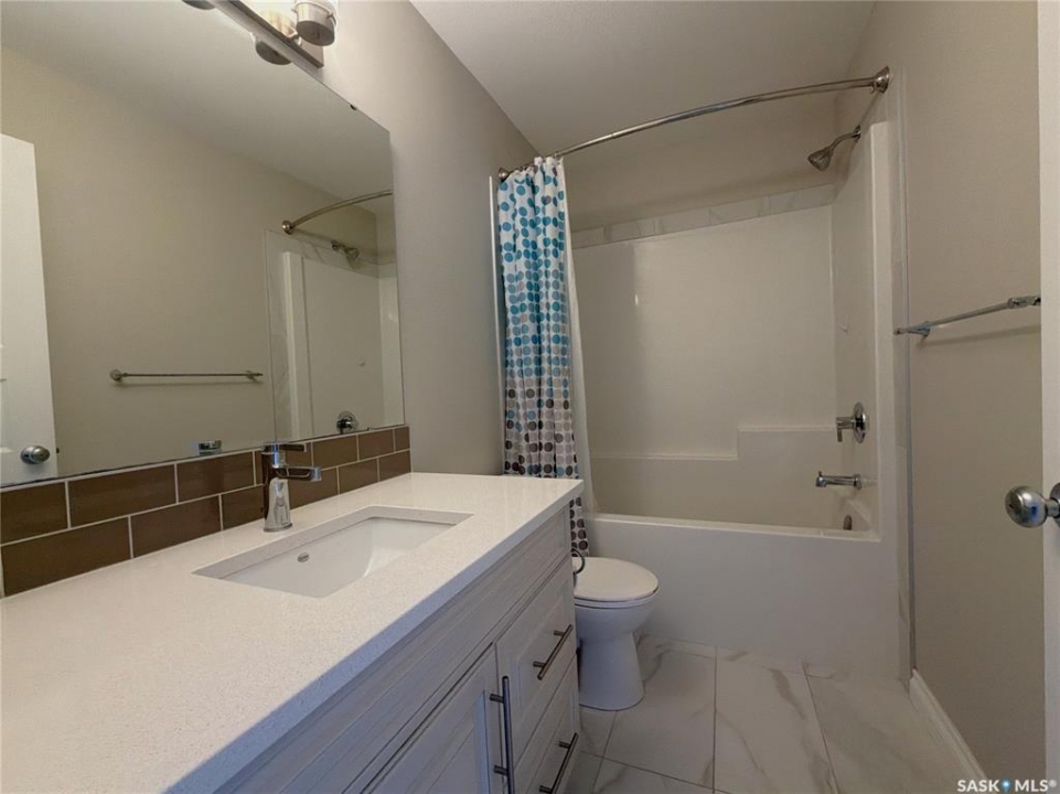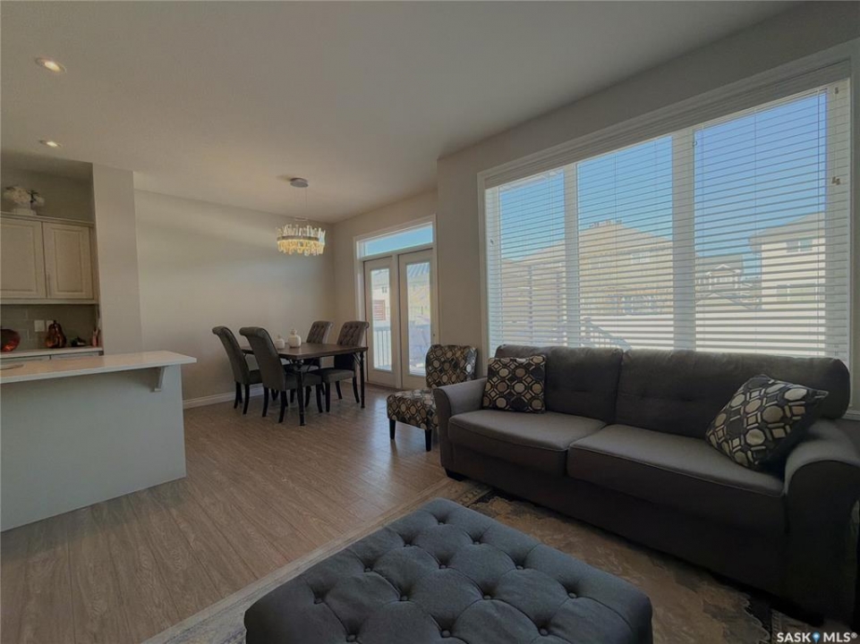 Welcome to this stunning two-storey home situated in Regina's highly desirable Greens on Gardiner. Built in 2017 by Homes by Dream, this move-in-ready property offers an exceptional blend of style and everyday function. The main floor boasts a bright, open-concept layout with high-end finishes, seamlessly connecting the spacious living room, dining area, and modern kitchen. Upstairs, you will find three bedrooms, including a generous primary suite complete with a walk-in closet and private ensuite. The basement is a wide-open blank canvas, ready for you to design and develop to suit your exact needs with frost walls insulated and poly installed. Step outside to your private backyard oasis, featuring a deck that is perfect for summer barbecues and plenty of wide-open green space for kids to play. Value-added upgrades include a double attached garage, high-efficiency triple-pane windows, and an owned water heater. Perfectly located just steps from local schools, Green Meadow Park, and major East-end amenities, this home truly checks all the boxes.