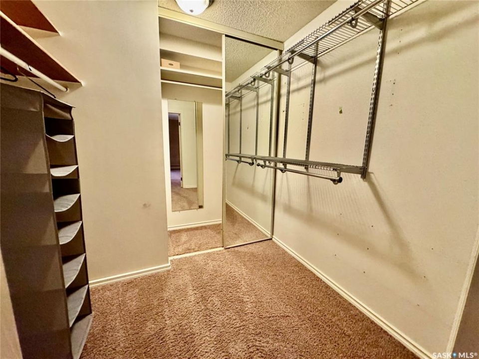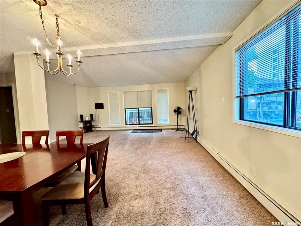 Ideal condo on 5th Avenue — perfectly situated close to City Hospital, the river, and downtown amenities. This quiet building offers beautiful second-floor corner unit for both comfort and convenience, with 2 parking stalls. Inside, you'll find a bright white kitchen with tile backsplash, quartz countertops, pot drawers, a pantry with pull-out shelves, task lighting, a window over the sink, & appliances included. The dining area features a wide window, and open to a spacious living room with patio doors leading to a 20' x 7' deck with plexiglass inserts and DuraDeck. The primary bedroom includes a large walk-in closet and a 3-piece ensuite. Additional features include a den with shelving and in-suite laundry. The bonus here of one underground parking stall (#14) and one surface parking stall (#31) plus storage is available in Storage Room #1-209. Call today for your personal veiwing.