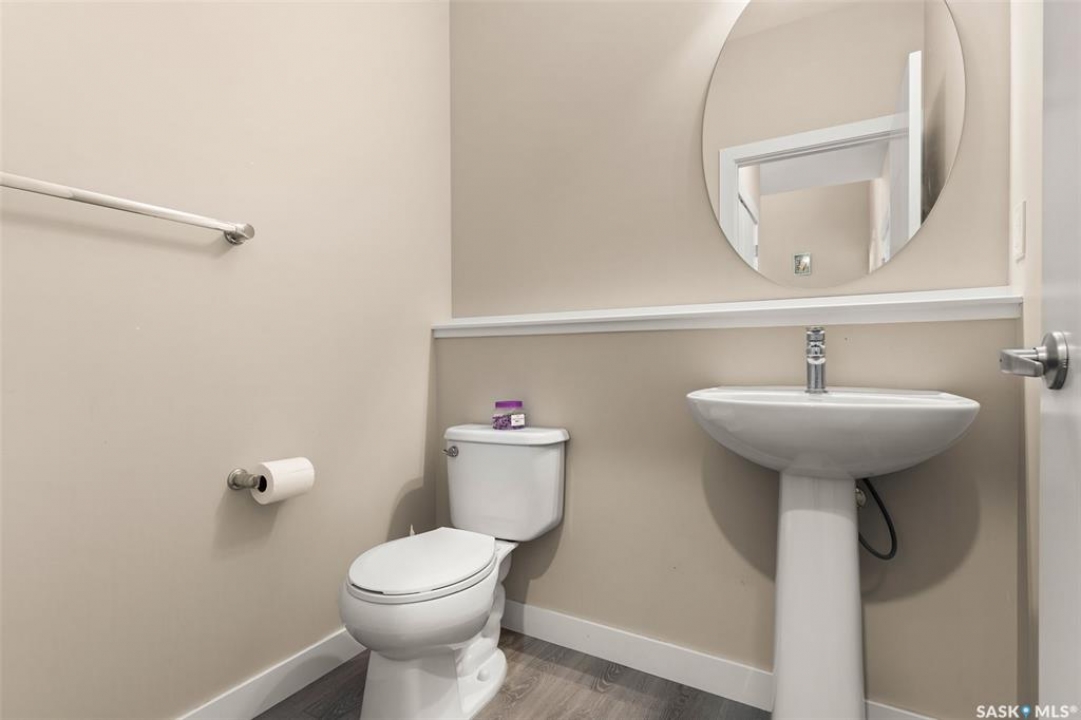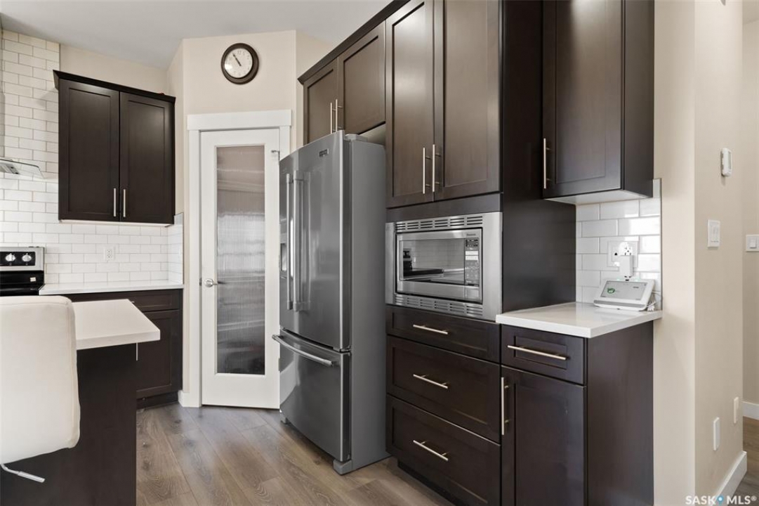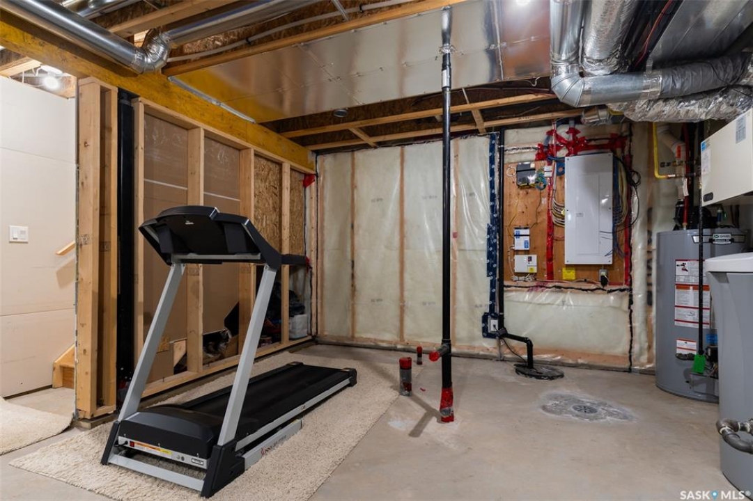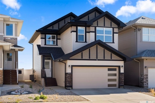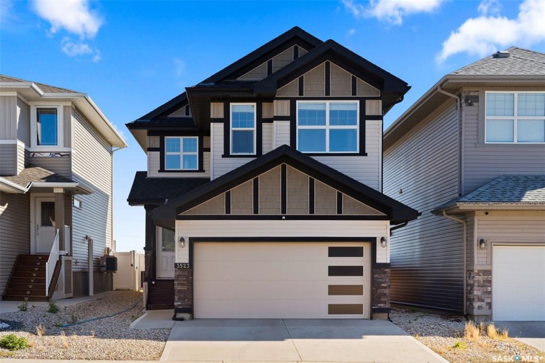 Welcome to this stunning 2-storey home in the highly sought-after Greens on Gardiner! Built in 2017, this well-maintained property offers 1,646 sq ft of thoughtfully designed living space, perfect for families or professionals alike. The bright, open-concept main floor showcases modern finishes throughout, including a stylish kitchen with dark cabinetry, tile backsplash, stainless steel appliances, and a large island with seating—ideal for entertaining. The adjoining dining area provides direct access to the fully fenced backyard, while the spacious living room is anchored by a sleek feature wall with a cozy gas fireplace. Upstairs, you'll find 3 generous bedrooms, including a primary retreat with a 4-piece ensuite, along with a second full bathroom and the convenience of second-floor laundry. The basement remains open for development, offering excellent future potential. Step outside to enjoy the large deck—perfect for summer gatherings—backing open space for added privacy and unobstructed views. Additional features include central A/C, natural gas heating, a double attached fully insulated garage, and a concrete driveway with ample parking. Ideally located close to parks, schools, and all east-end amenities, this move-in-ready home delivers the perfect combination of comfort, style, and location.