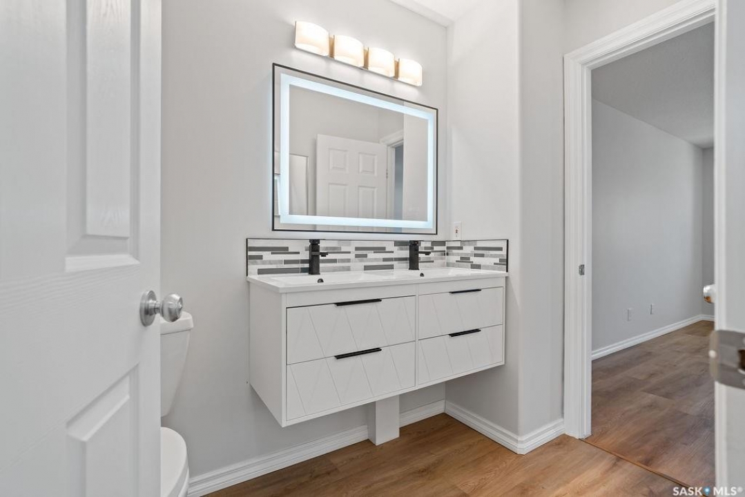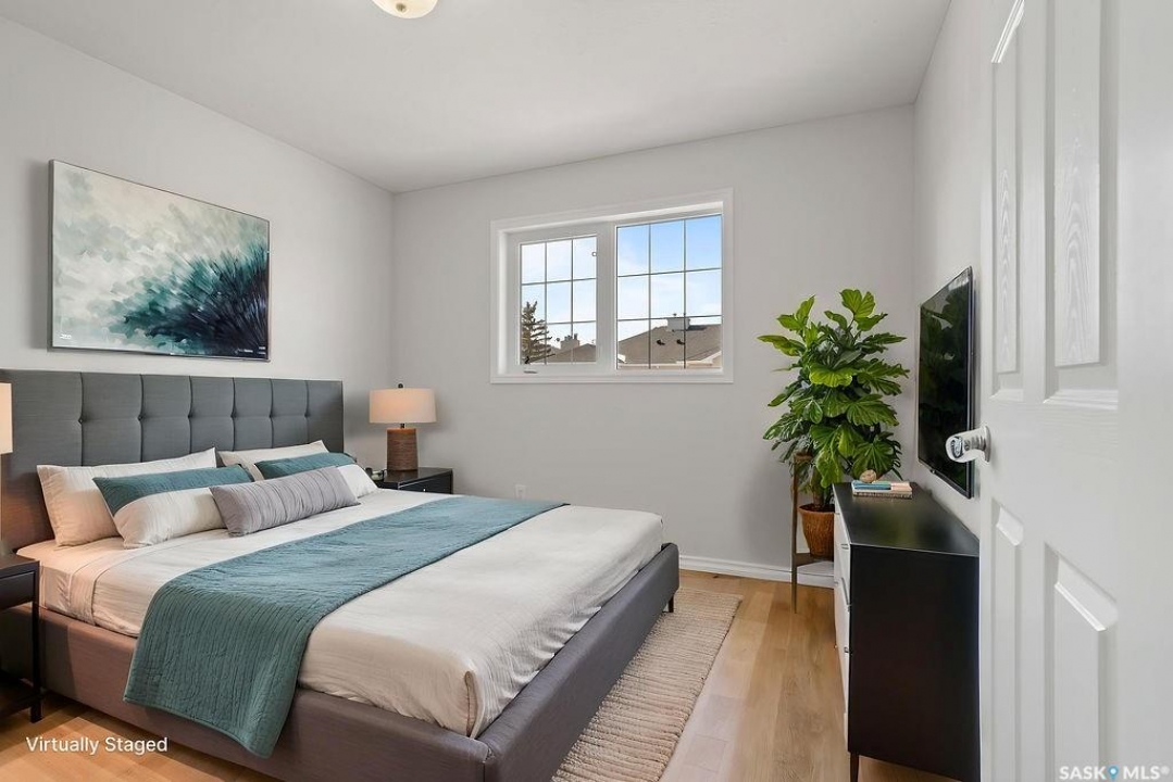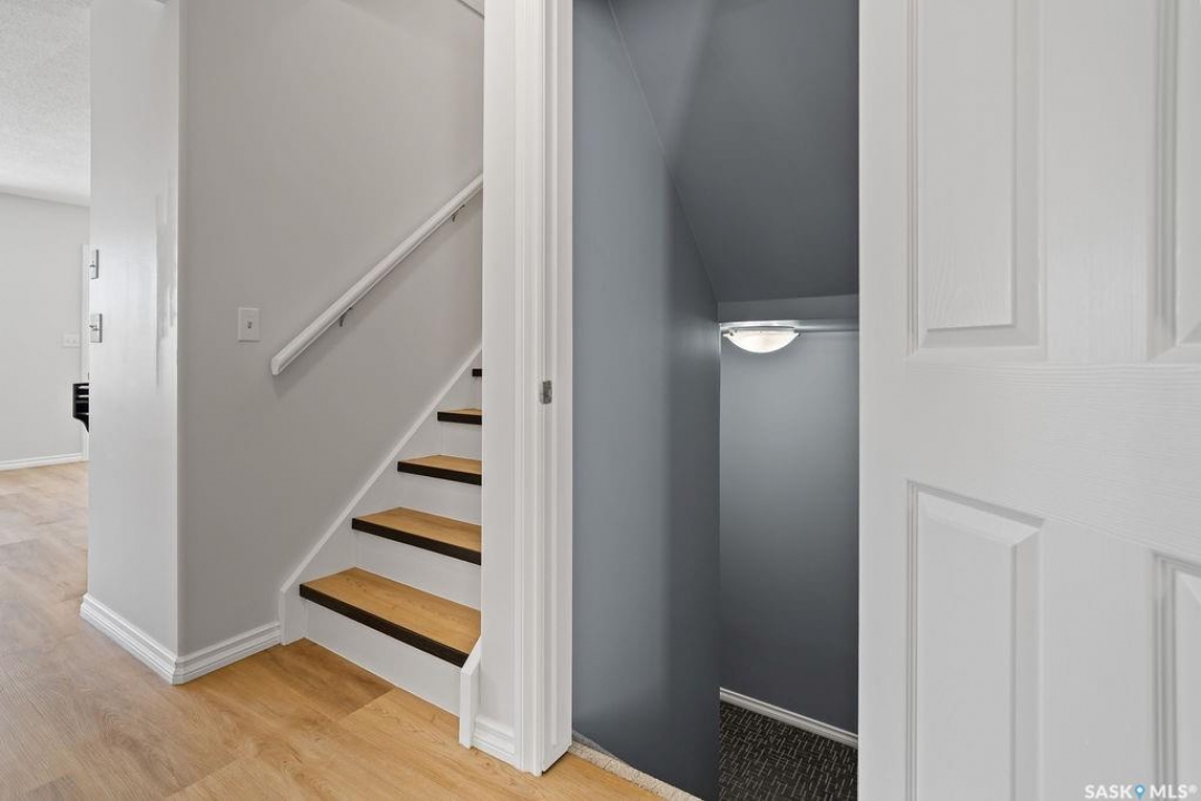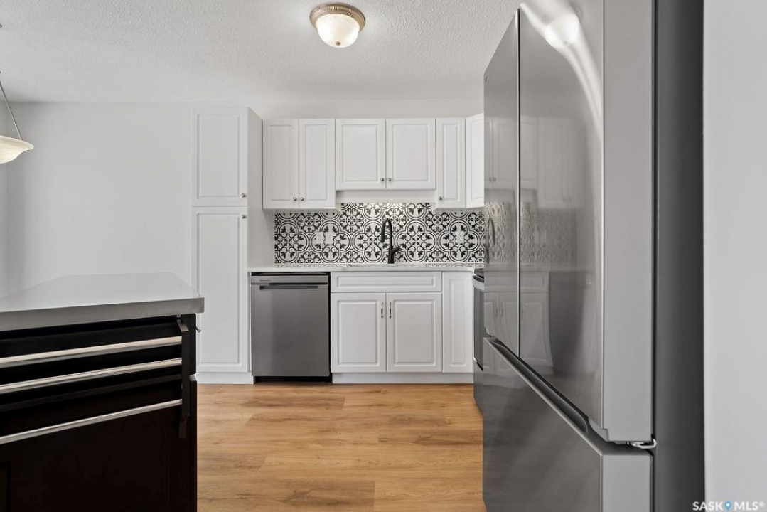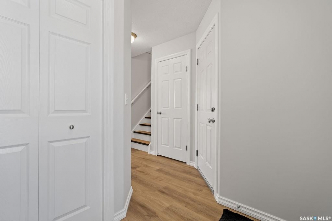 Have you been looking for a move-in ready townhouse condo in Regina's sought-after east end? Here it is! This condo has been fully refreshed and is ready for its new owner. Fresh paint and new luxury vinyl plank flooring runs throughout the entire main floor, where an open-concept layout provides a generous living area and a bright kitchen with white cabinetry, pantry, modern tiled backsplash, and gorgeous quartz countertops. A full stainless-steel appliance package and a stainless-topped portable island are included. The main floor is completed by an updated 2-piece powder room that looks like a little jewel box. The attached single garage is insulated, drywalled and freshly painted, and the entry includes a good-sized coat closet. Upstairs, the massive primary bedroom features a spacious walk-in closet and access to a stylish Jack-and-Jill bathroom with double sinks and a quality shower. A second well-sized bedroom finishes the upper level. The lower level offers fresh paint and new textured carpet in a large rec room with extensive built-ins. Ideal for storage and entertaining. The generous laundry/mechanical room includes more built-ins, a work sink, stackable washer and dryer, and rough-in for an additional toilet. This home is located in a quiet, well-run complex close to all east-end amenities. Don't miss it! Book your showing today!