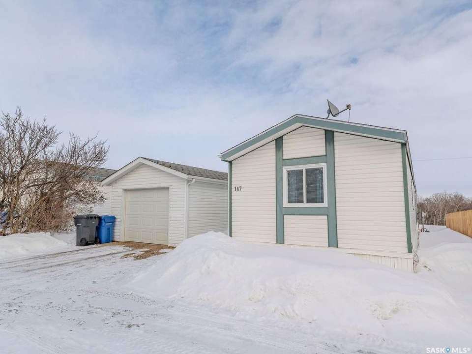 Welcome to 147 Cottonwood Drive, a well-maintained 1,216 sq ft mobile home located in the highly sought-after community of Sunset Estates, just 10 minutes east of Saskatoon. This affordable home near Saskatoon offers the perfect balance of quiet country-style living and quick city access via Highway 5, making it ideal for commuters, first-time buyers, or downsizers looking for space and value. Step inside and you'll immediately appreciate the functional, open-concept layout designed for everyday living and easy entertaining. The home features three spacious bedrooms and two full bathrooms, including a private primary suite complete with its own ensuite. Whether you're hosting guests or enjoying a quiet night in, this layout offers both comfort and privacy. One of the standout features of this Sunset Estates property is its peaceful setting. The home backs directly onto a wide open field, giving you added privacy, unobstructed views, and a true sense of space that's hard to find at this price point. Enjoy your morning coffee or evening unwind on the back deck while taking in the prairie skies and quiet surroundings. Outside, the property continues to impress with a 14 x 30 detached garage, providing ample room for parking, storage, or even a workshop setup. The lot offers practical outdoor space with low-maintenance appeal, perfect for busy lifestyles. Sunset Estates is known for its welcoming community atmosphere and convenient amenities nearby, including a gas station, convenience store, and easy highway access. Families and professionals alike appreciate the short commute to Saskatoon while enjoying a more relaxed pace of living. If you've been searching for an affordable 3-bedroom home near Saskatoon with a garage, privacy, and move-in-ready potential, 147 Cottonwood Drive checks all the boxes. This is a rare opportunity to own a well-located property in Sunset Estates with open field views and functional living space.