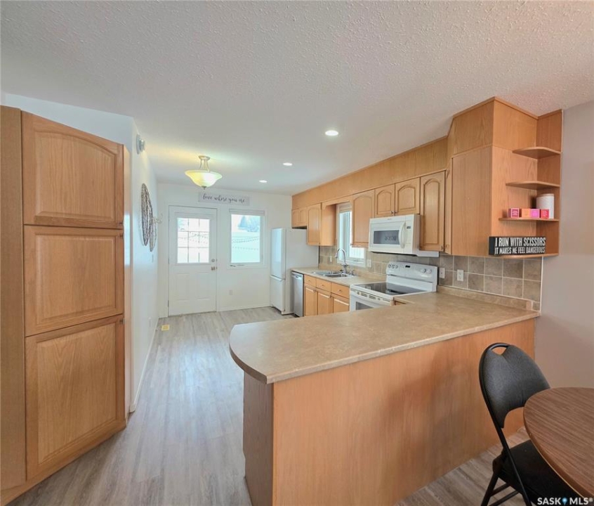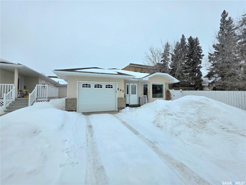 Welcome to 603 Main Street, Melville. This beautifully updated 1,104 sq. ft. detached condo is all about easy, comfortable living. You'll love the bright, open-concept layout with spacious living room, handy nook or office space, and a bright kitchen with tons of storage. There's also a separate dining area - perfect for everyday living or entertaining. This bungalow offers 2 great-sized bedrooms, an updated 3-pc bathroom with a walk-in shower, and a convenient laundry/storage room. Step right outside from your kitchen into your fully fenced backyard complete with a deck and patio - perfect for relaxing, firing up the BBQ, or entertaining. And the best part? Lawn care and snow removal are taken care of for just $100/month. Over the years, this home has been nicely updated with fresh paint, new flooring, fence, deck, renovated bathroom and shingles (2020), along with custom blinds - giving it a true move-in ready feel. It's a solid, well-cared-for home that's easy to love and definitely worth a look!