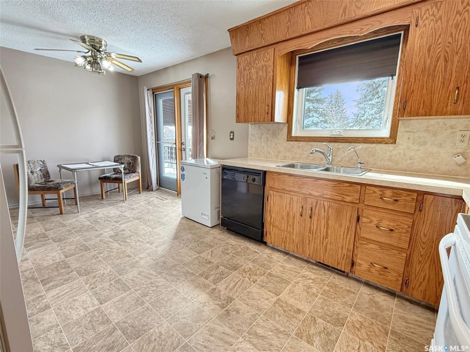 470 Cowan Drive presents a well-maintained family home in one of Trail's most desirable neighbourhoods, directly opposite Saulteaux Park with playgrounds, a waterpark and interconnected walking paths. Owned and cared for by the same family since 1984, the property sits on an above-average lot with RV parking, driveway parking, a mature backyard with in-ground sprinklers, storage shed and an extra-large partially covered deck overlooking the luscious backyard. Inside, a private front porch leads to a bright and airy formal living room. The spacious, eat-in kitchen offers abundant cabinetry, generous countertops and a eat-in dining area with patio doors to the deck. The second level includes three bedrooms, highlighted by an oversized primary, and a four-piece bathroom. A few steps down from the kitchen, the lower level features a large recreation room suitable for a second family space, plus a three-piece bathroom and laundry. The lowest level is partially finished, full-height storage and a utility room measuring approximately 9'7" x 18', housing an updated, energy-efficient furnace (2020), central air (2021) and water heater (2023). Move-in ready with opportunities for cosmetic updates to suit your style. Located in a family-oriented area with school busing to Centennial, École and All Saints. For more information or to book your personal viewing contact today!