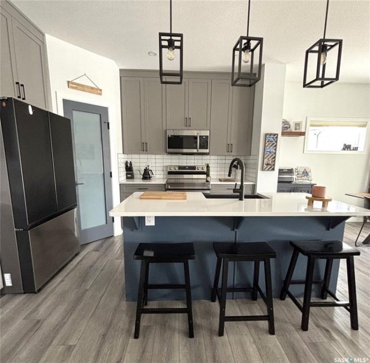Beautiful family home in Kensington! 4 bedrooms, 4 bathrooms, double attached garage! Completely finished including back yard landscaping, fully fenced yard, air conditioning, basement development complete, updated finishings throughout! Built in 2023, shows like new! Conveniently located close to the Blairmore Suburban Centre with shopping and restaurants, the Shaw Centre, Bethlehem and Tommy Douglas High Schools. Plenty of green space nearby! Book your movers!