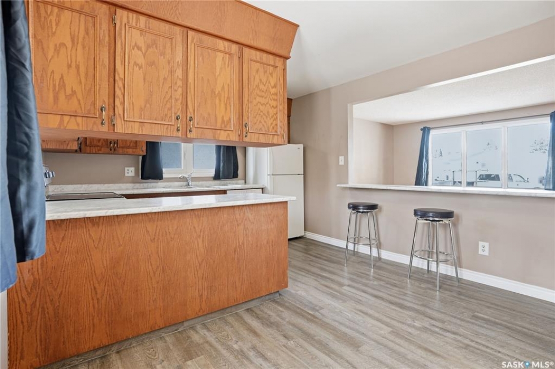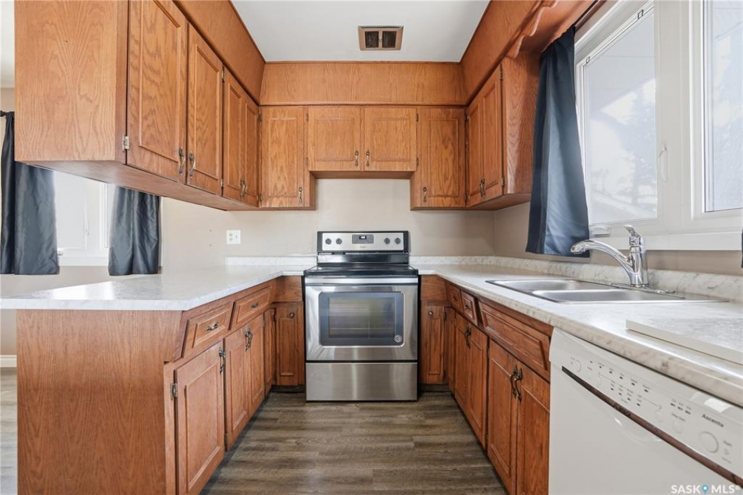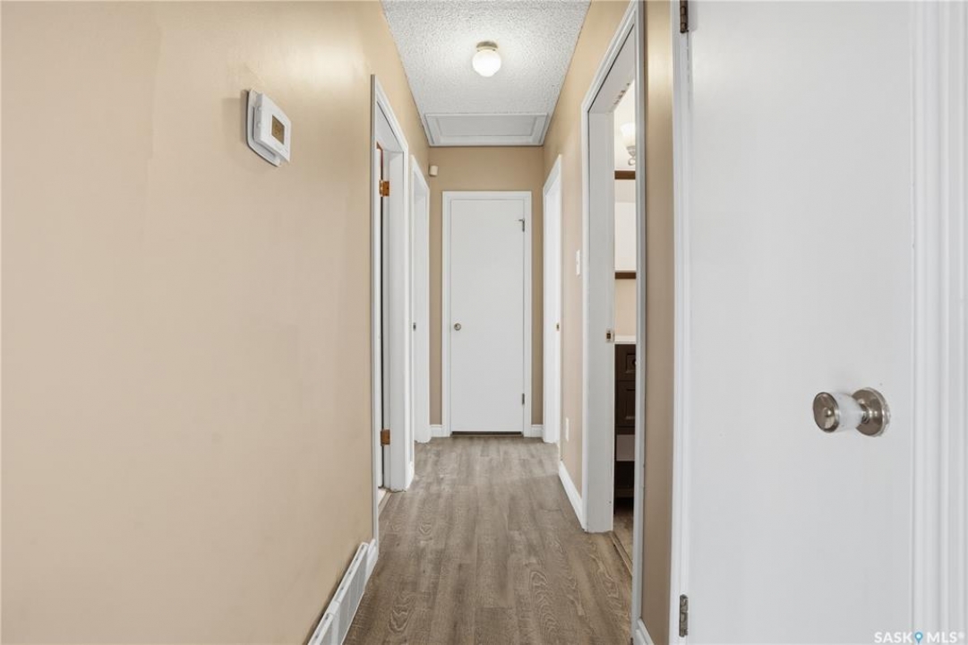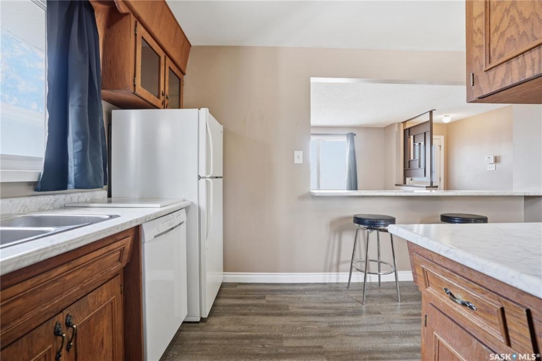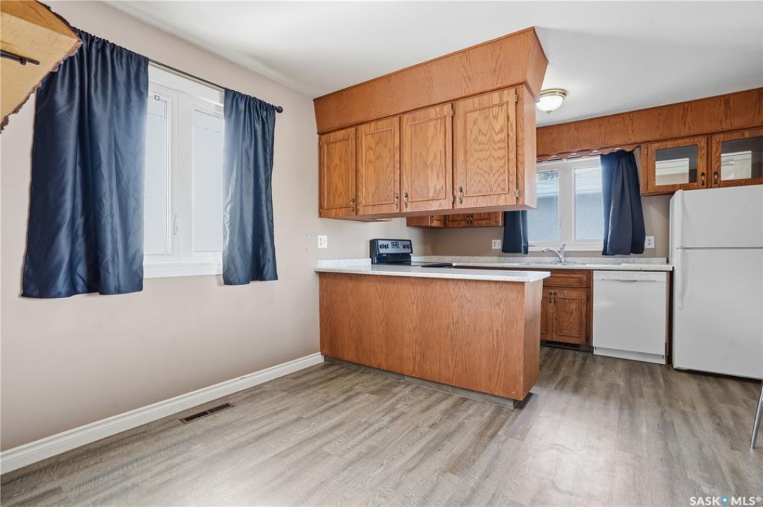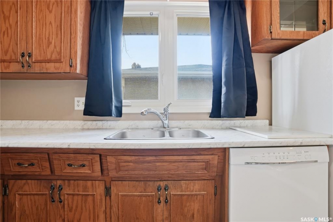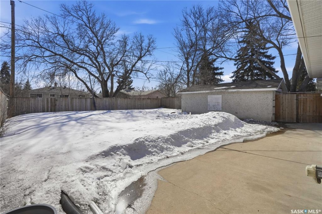 Welcome to this immaculate 990 sq ft bungalow, perfectly situated on a quiet, established crescent in Regina's Coronation Park neighborhood. This solid home features 3 bedrooms and 2 bathrooms, making it an ideal choice for first-time buyers or growing families. The main floor boasts beautifully refinished hardwood floors (2026), a bright living area, a functional kitchen with an open view, and an updated 4-piece bathroom. All windows on the main level were replaced in 2022, providing energy efficiency and natural light. The lower level is fully developed, offering a spacious recreation room, an additional three-piece bathroom, ample storage, and utility space. Significant big-ticket updates provide peace of mind for future owners: a new sewer line with a backflow prevention valve (2026), a new electrical panel (2016), shingles (2015), and a furnace and AC unit (2007). Outside, you'll find a fully fenced yard and a single detached garage. This charming bungalow is move-in ready and waiting for its next owners. Don't miss out on this fantastic opportunity! Schedule your viewing today.
