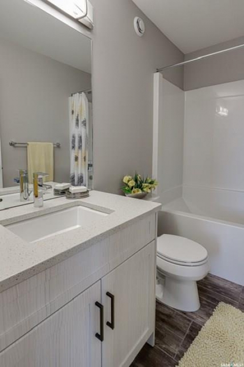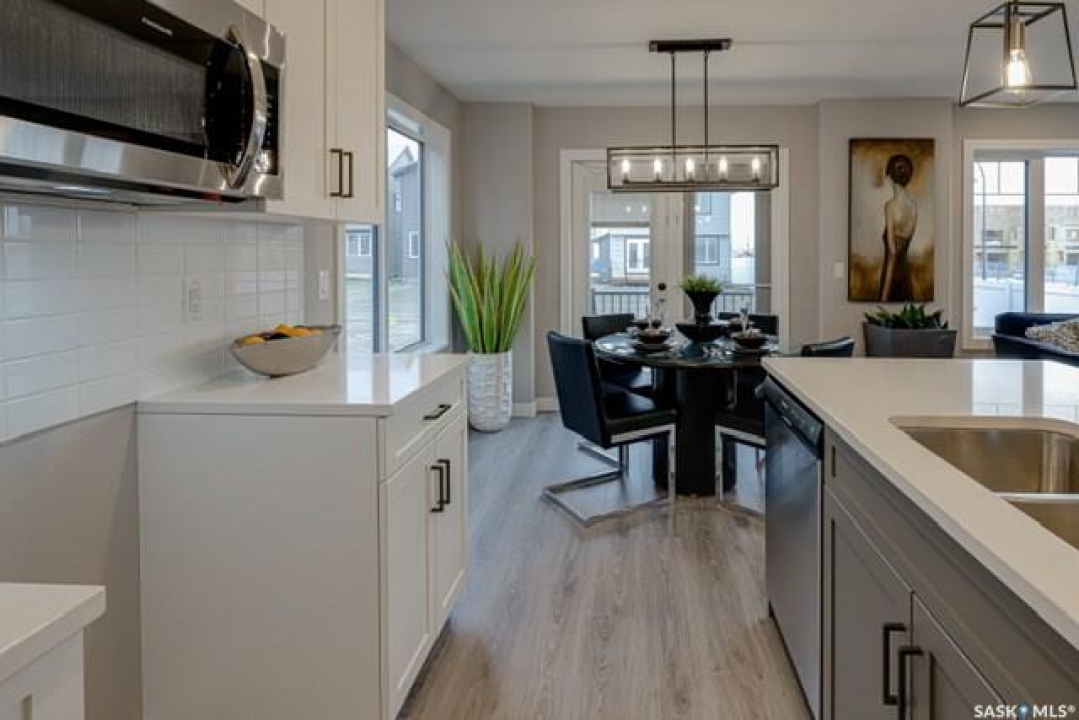 Welcome to the Linconberg — a thoughtful designed 1,472 sq/ft two-storey by Builder of the Year, Ehrenburg Homes. This family-friendly home features an open-concept main floor with laminate flooring, a modern kitchen with quartz countertops, tile backsplash, eat-up island, pantry, and ample cabinetry. Upstairs offers 3 spacious bedrooms, convenient second-floor laundry, and a primary suite with walk-in closet and ensuite. Additional features include triple-pane windows, HRV system, high-efficiency furnace, and central vacuum rough-in. Double attached garage with concrete driveway and front landscaping included. The basement is open for future development with a LEGAL SUITE OPTION. Photos are from a previous build of the same model; finishes and colours may vary. PST & GST included in purchase price with rebates back to the builder.