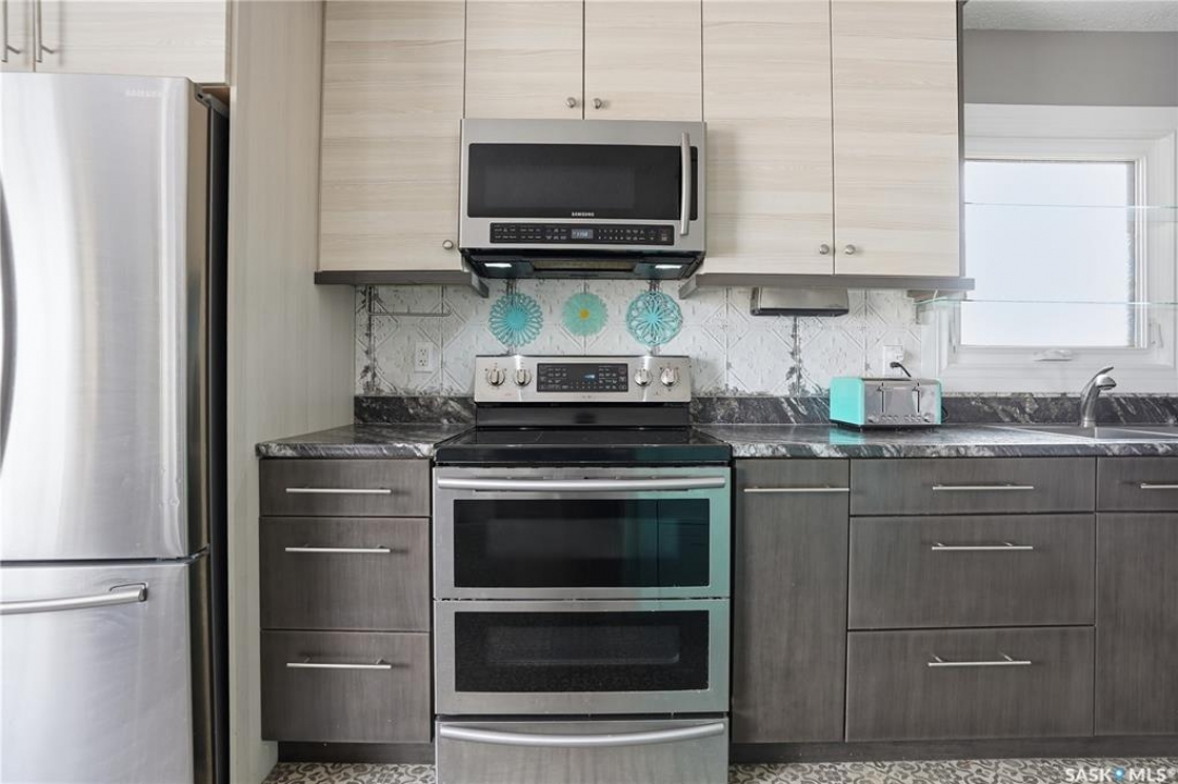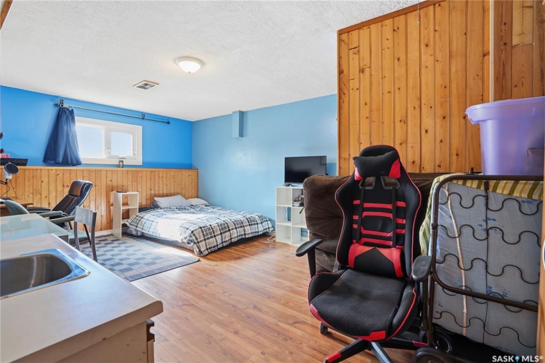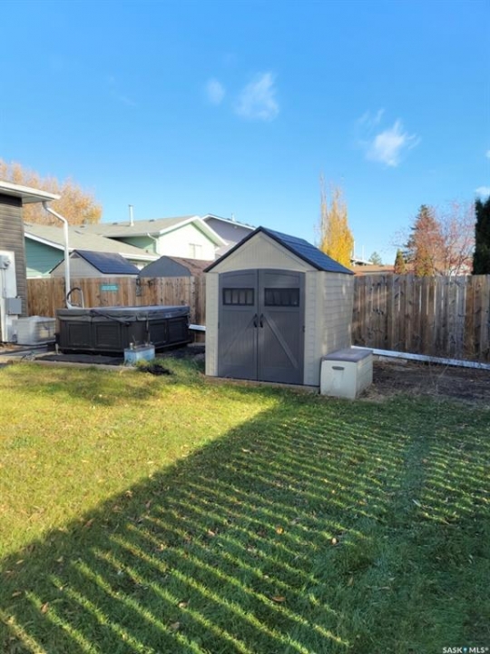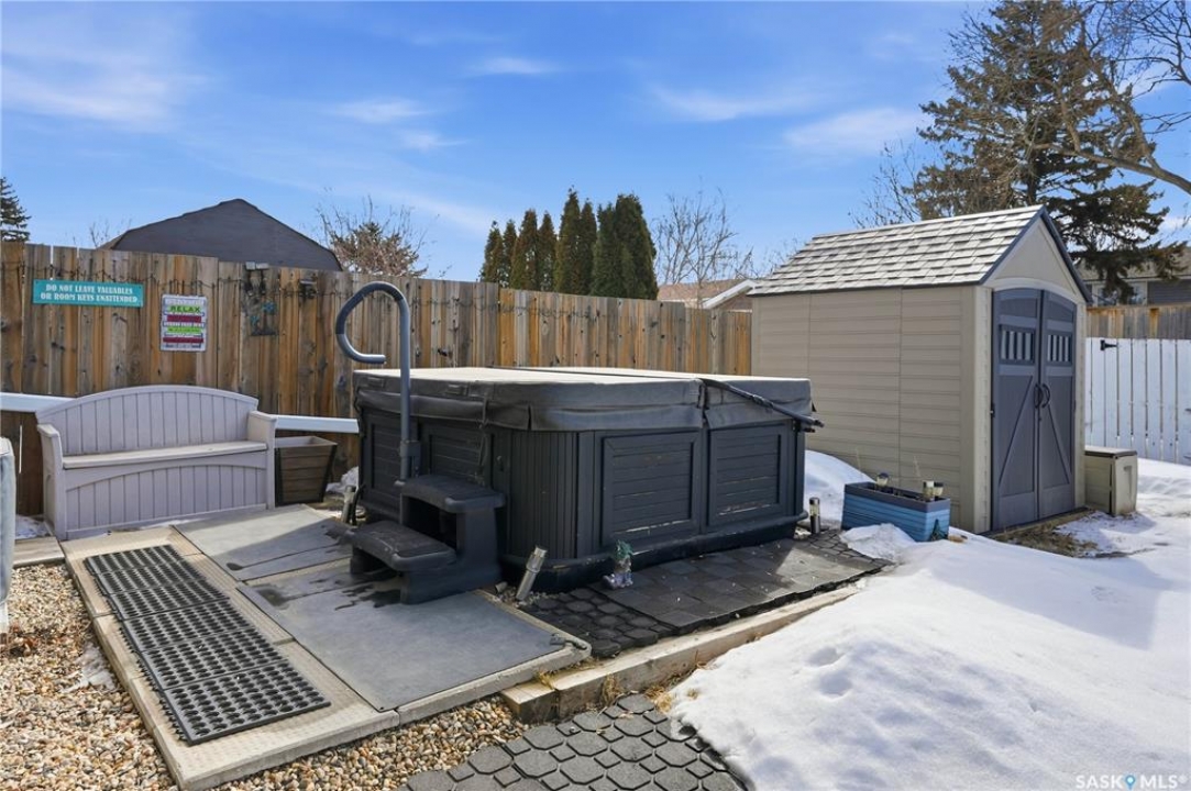 Move-in ready and perfectly located near elementary schools, this upgraded bungalow checks all the boxes. Step inside to an inviting open-concept main floor, where a beautifully renovated kitchen takes center stage—complete with a large quartz-topped island, stainless steel appliances, and a walk-in pantry you'll quickly wonder how you lived without. The bright living and dining areas feature oversized picture windows that flood the space with natural light. The main level offers three bedrooms, a stylish 4-piece bathroom, and a convenient 2-piece ensuite off the primary bedroom. Downstairs, the fully developed basement features large bi-level windows and plenty of space for both a family room and a games area. Movie nights are next level with the included projector, motorized screen, and 3D glasses—something the kids (and adults) will love. A versatile bedroom with a small kitchenette makes the perfect teen retreat, guest space, or creative studio. You'll also find a four-piece bathroom, and the laundry is in the utility room. Outside, enjoy a low-maintenance xeriscaped front yard and a fully fenced backyard with lush grass—ideal for relaxing or entertaining. Two storage sheds and the hot tub are included, along with a carport and double driveway for added convenience. Notable updates include the kitchen (2017), PVC windows, siding (2023), AC (2024),shingles, gutter guards, downspouts, and more.