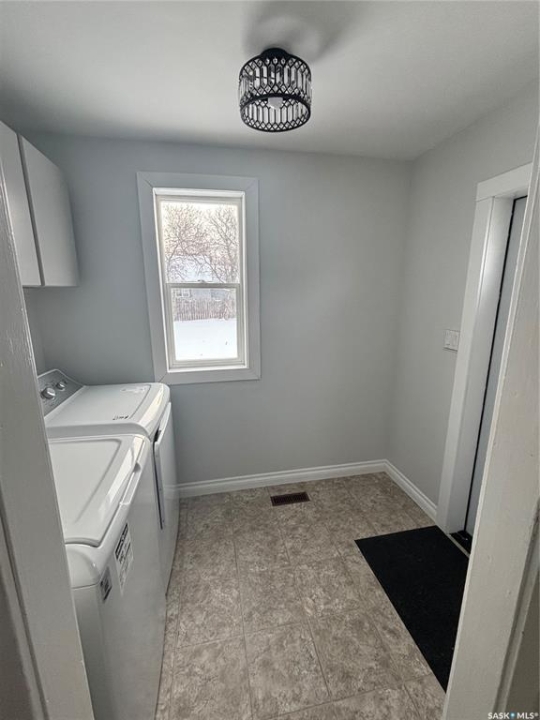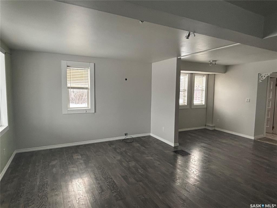 Situated in the Town of Assiniboia, this residence skillfully blends classic character with modern enhancements. The property is located on a spacious, fully fenced, and landscaped lot, with a deck at the rear for outdoor enjoyment. Interior upgrades include new flooring throughout and contemporary repainting, creating a fresh and elegant ambiance. The home offers convenient main floor laundry equipped with a new washer and dryer, as well as a two-piece bathroom off the kitchen featuring updated fixtures. The recent installation of an engineered beam has resulted in an open, functional layout on the main floor. Upstairs, there are three bedrooms and a renovated bathroom. (bedrooms do not have closets) Additional improvements include upgraded PVC windows, a mid-efficient furnace with central air, and some updated electrical wiring. Prospective buyers are encouraged to view this exceptional property.