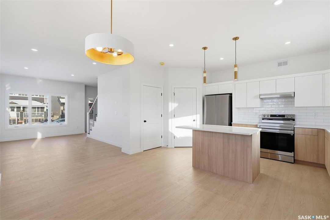 Brand New Two-Storey in Lake Vista, Martensville! Ready for possession in May. Welcome to modern living in Lake Vista—Martensville's newest and most sought-after community! This brand new 1,451 sq. ft. two-storey home blends fresh, airy design with smart functionality, all just steps from scenic ponds, parks, and schools. Enjoy peace of mind with a New Home Warranty and move-in readiness in just 7-8 weeks! Features You'll Love: Bright, open-concept main floor with modern finishes Large kitchen with quartz countertops, tiled backsplash, stainless steel appliance package, oversized island & walk-in pantry 3 bedrooms upstairs, including a spacious primary suite with 3-piece ensuite and walk-in closet Convenient 2nd-floor laundry (washer & dryer included!) Stylish tile flooring in all bathrooms 3 bathrooms total throughout the home Exterior & Lot Perks: Striking curb appeal with upgraded siding, trim, and stonework Double concrete parking pad at the back with paved alley access Mudroom entry from the backyard, prepped for a future double detached garage Corner lot for extra space and light This home offers unmatched value in a prime location—perfect for families or first-time buyers looking for quality, convenience, and style. Don't miss your chance to own in Lake Vista—contact your REALTOR � today to book a private tour!